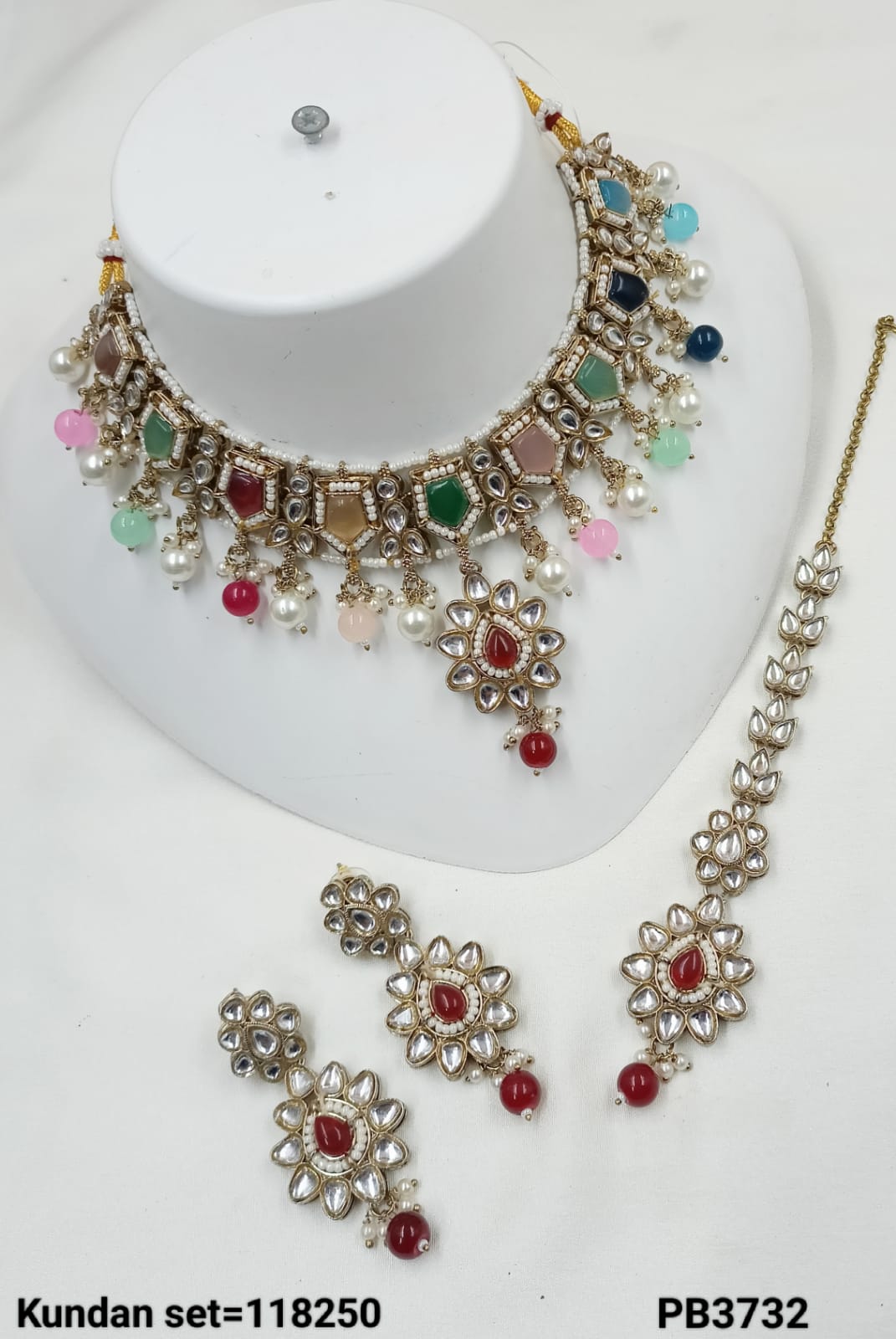 Exquisitely crafted, this necklace set features traditional gold plating combined with intricate Kundan work, embodying timeless elegance and expert craftsmanship. It Has A Pack Of :-1...