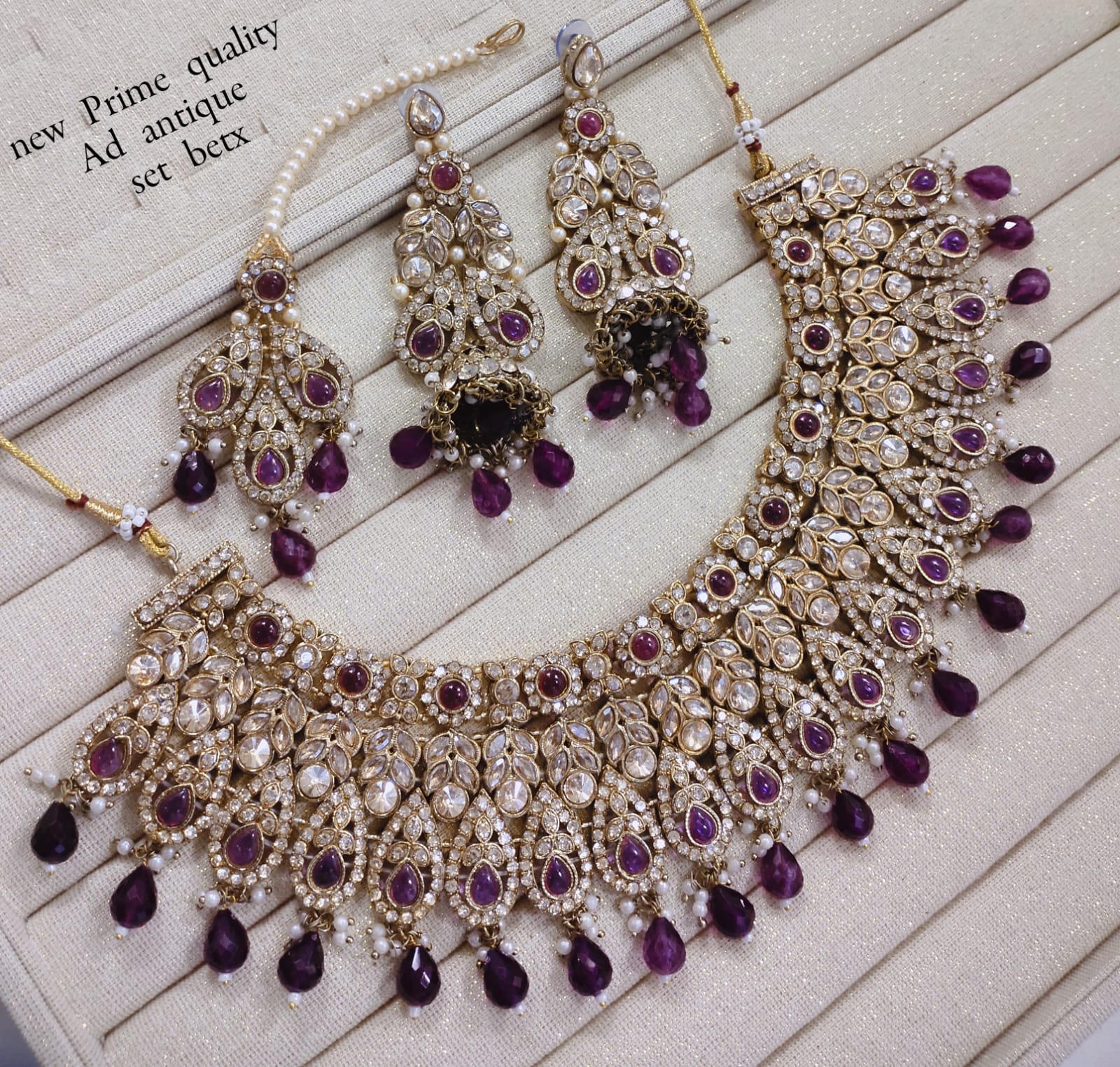 This exquisite necklace set features an antique gold plating combined with traditional Kundan craftsmanship, offering a timeless and elegant accessory for special occasions. It Has A...