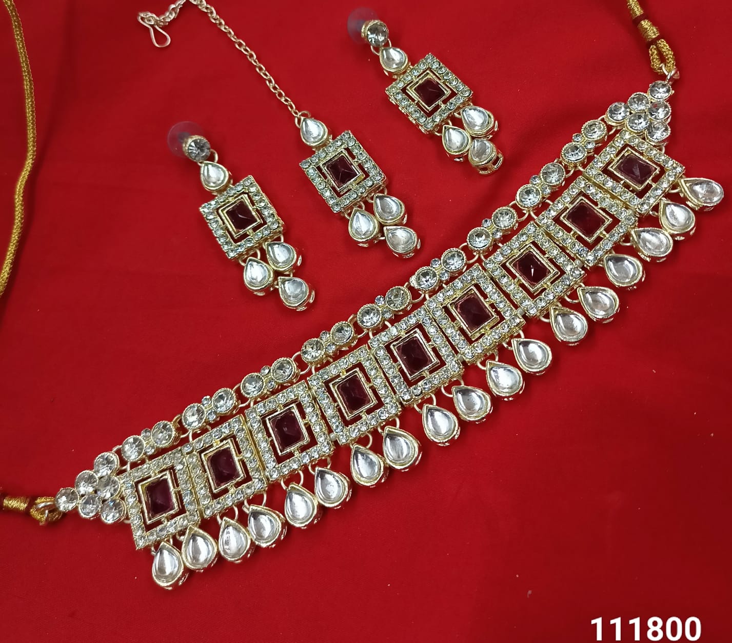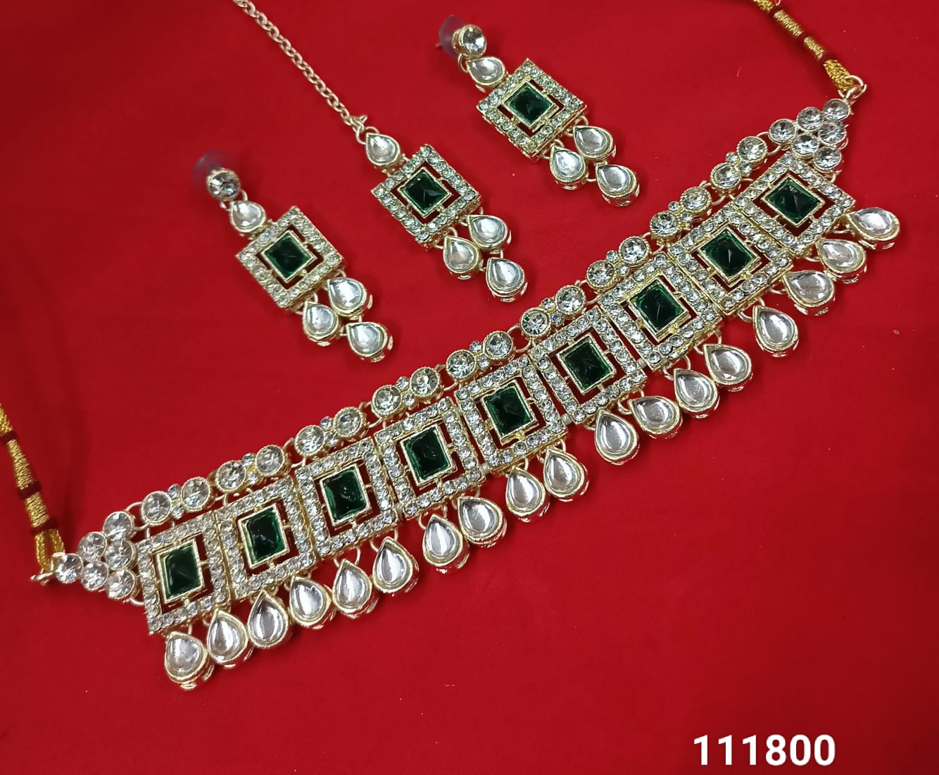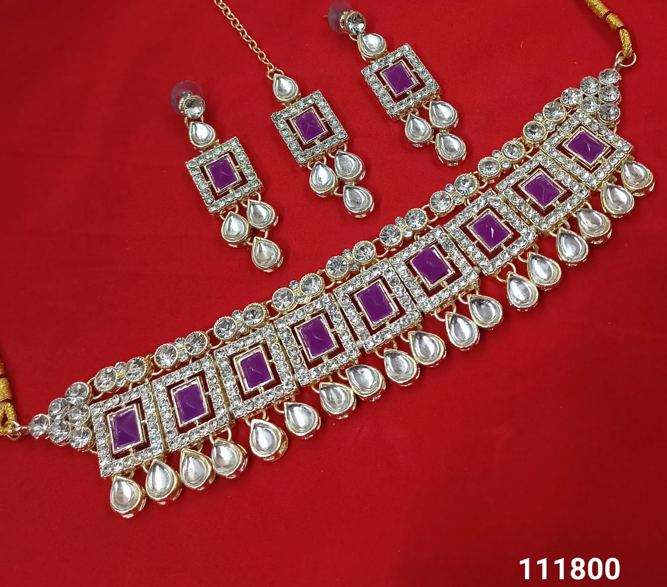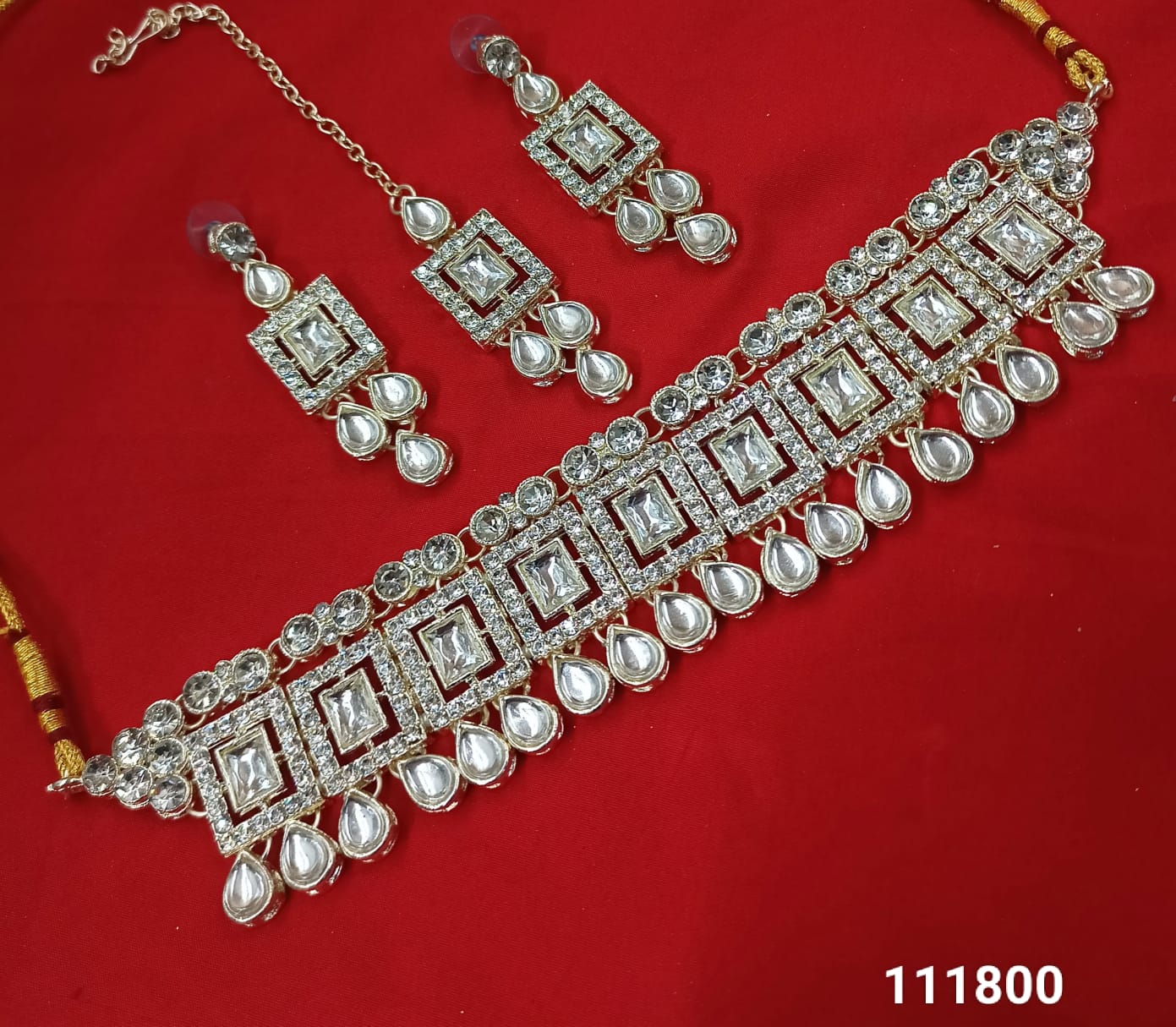 This exquisite choker necklace set features intricate Kundan work, elegantly finished with a gold-plated coating for a luxurious and timeless appeal. It Has A Pack Of...