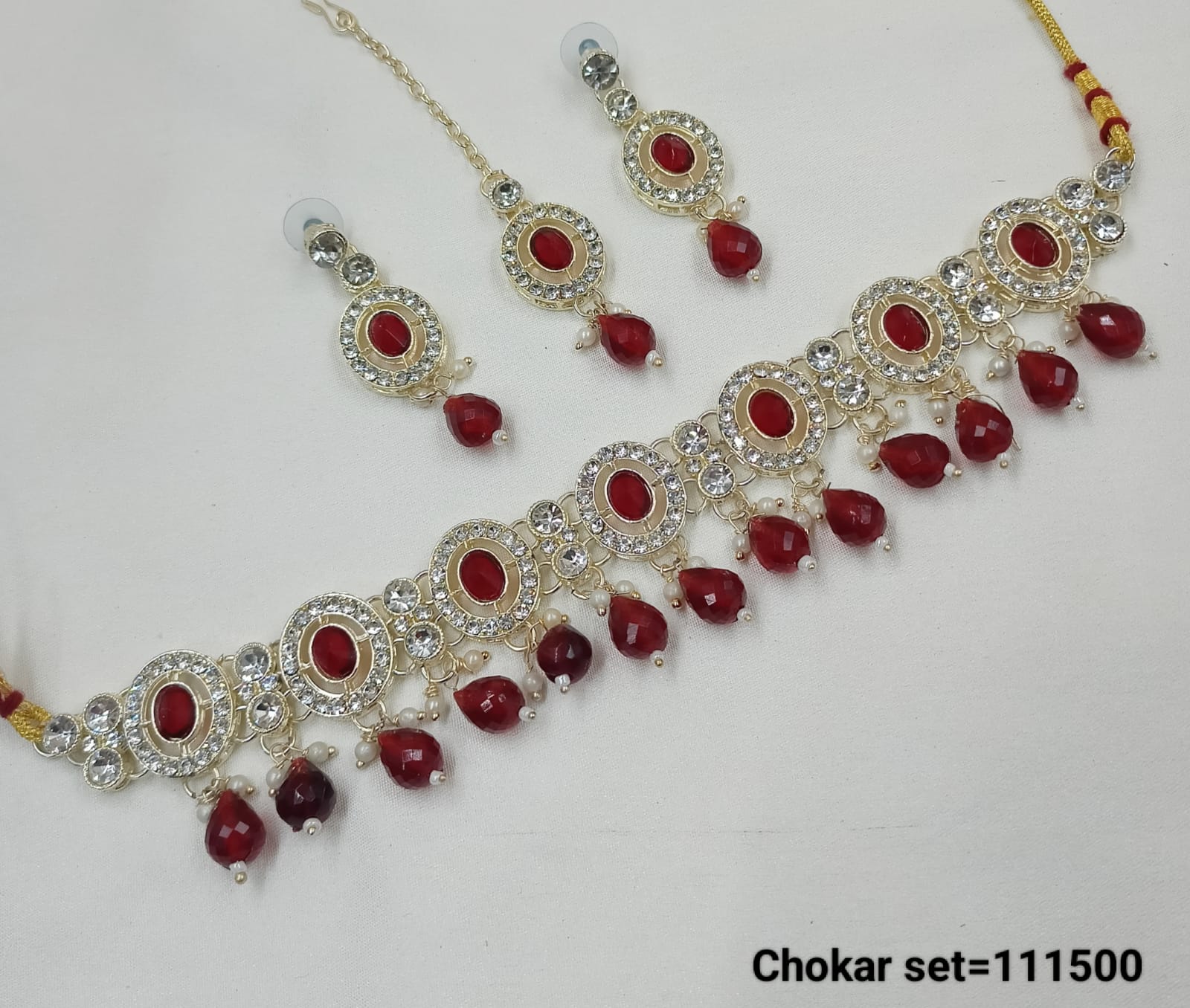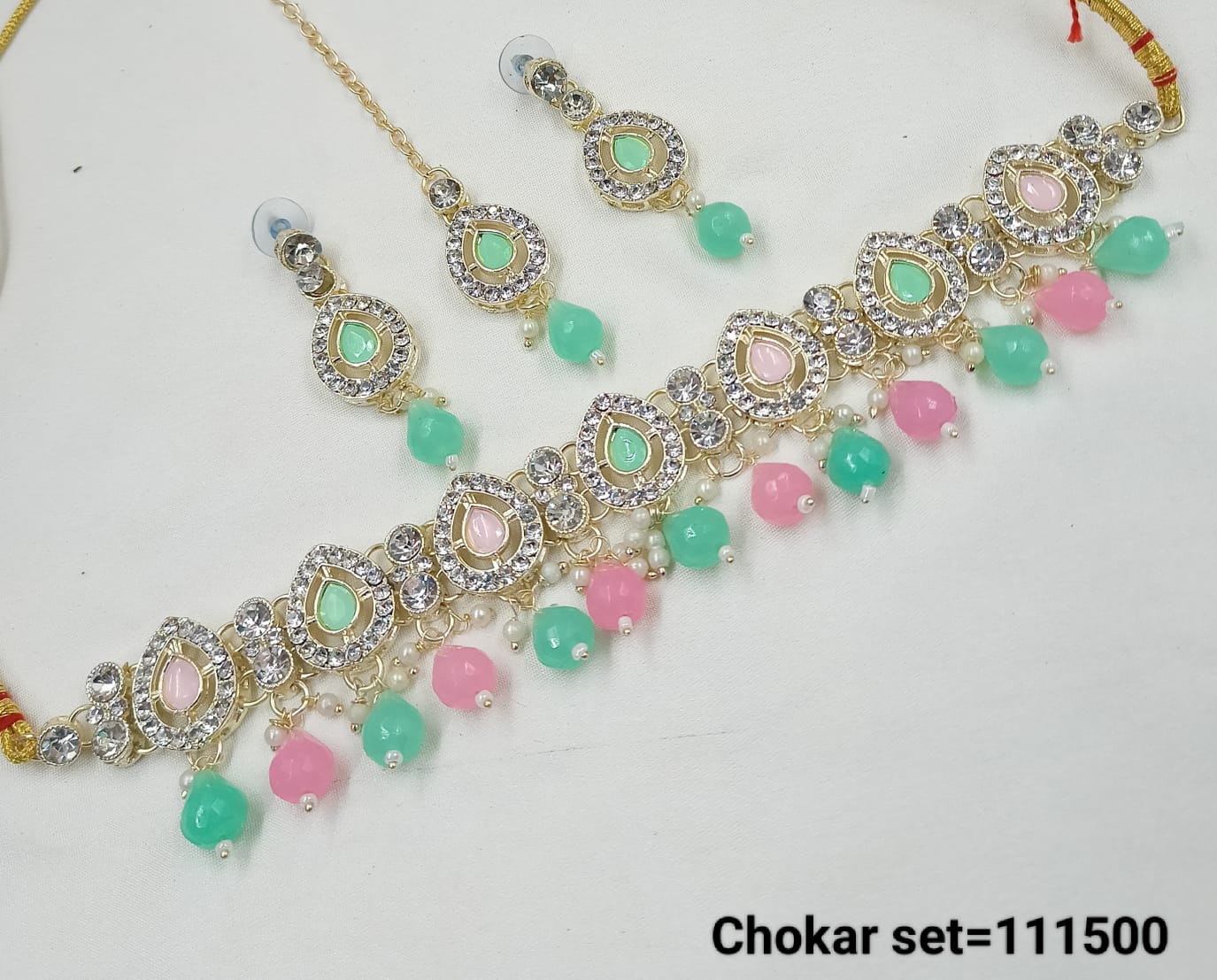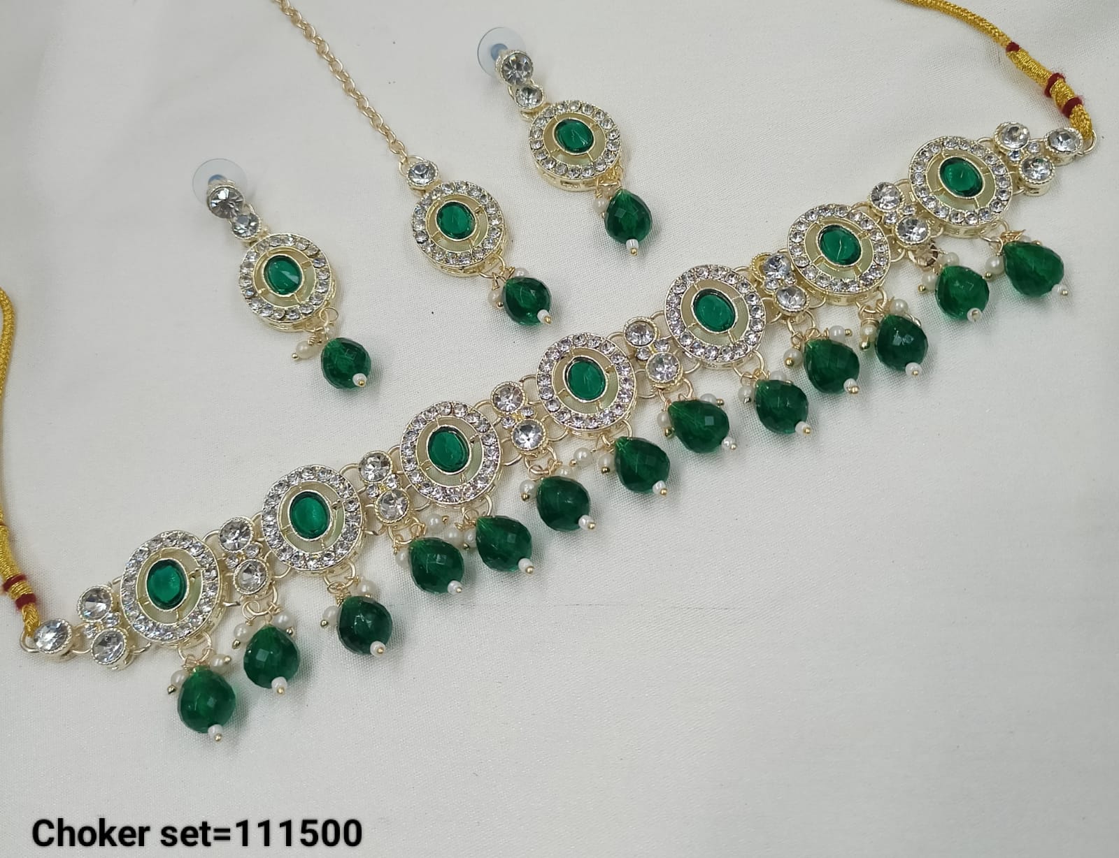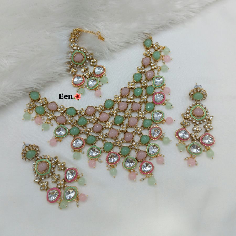 This finely crafted choker necklace set is elegantly finished with a rich gold plating, offering a sophisticated and timeless accessory for any occasion. It Has A...
