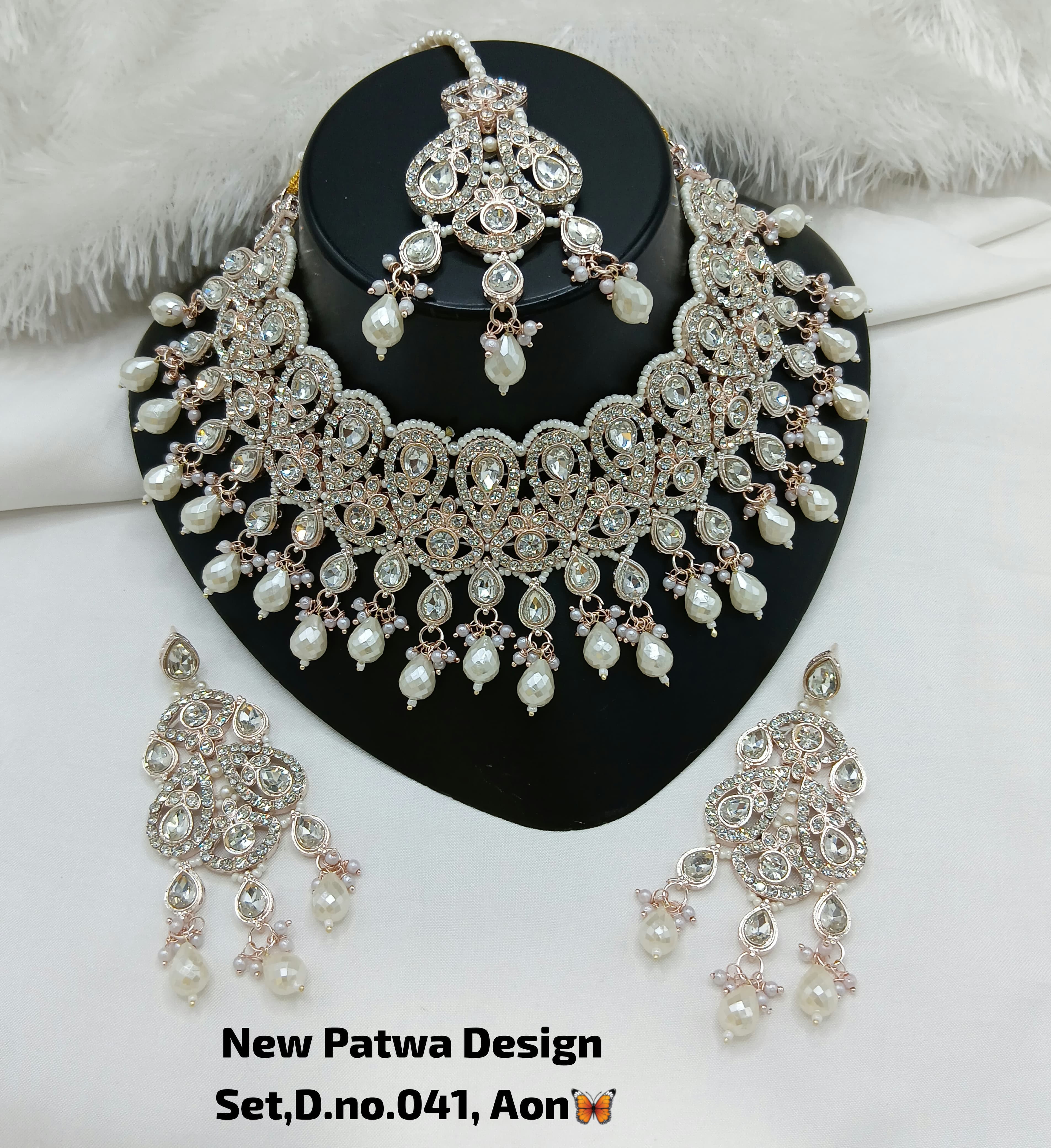 This exquisite jewellery set features American diamonds elegantly set on a silver-plated base, combining timeless sparkle with refined craftsmanship. Ideal for enhancing any ensemble with a...