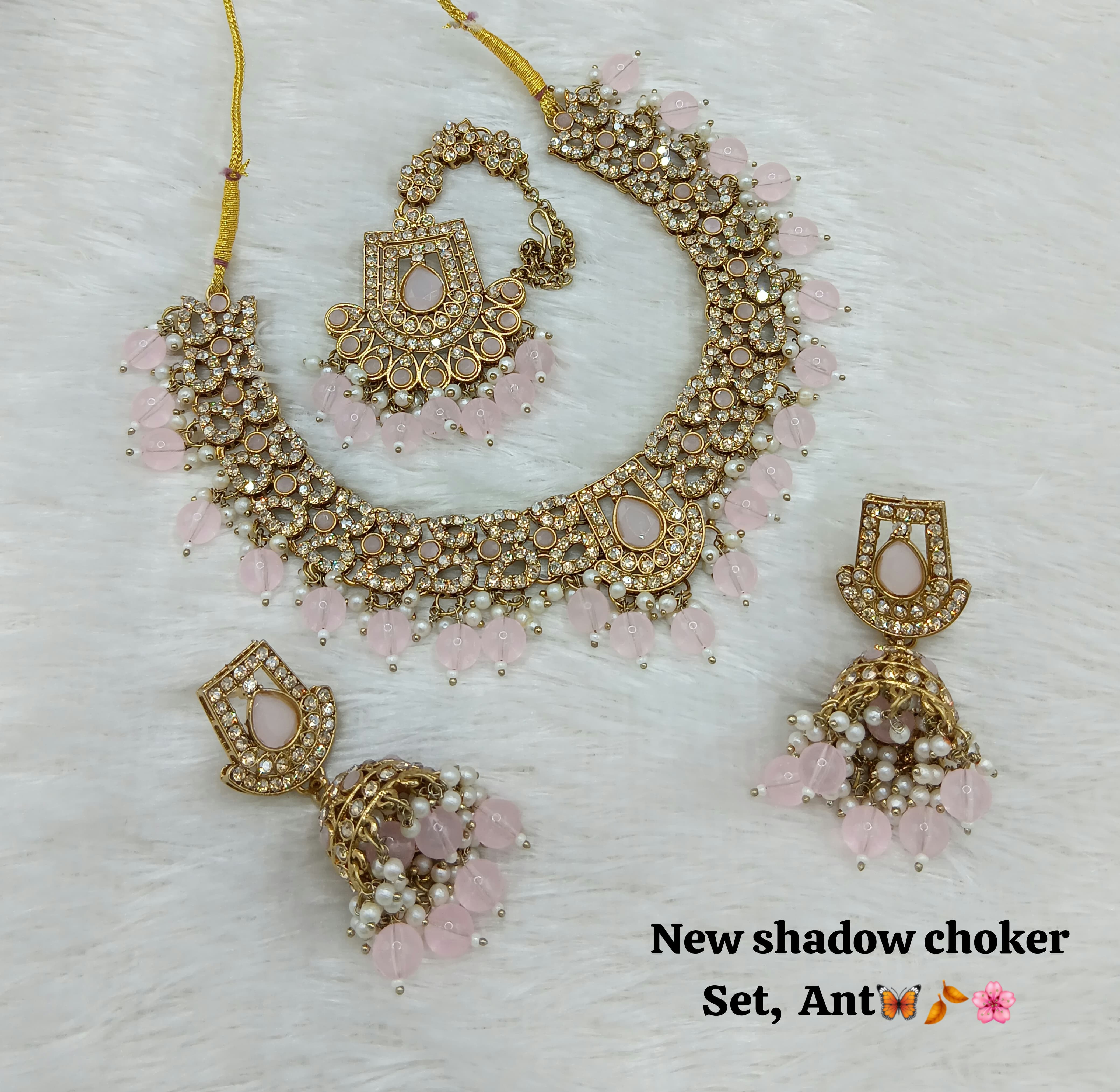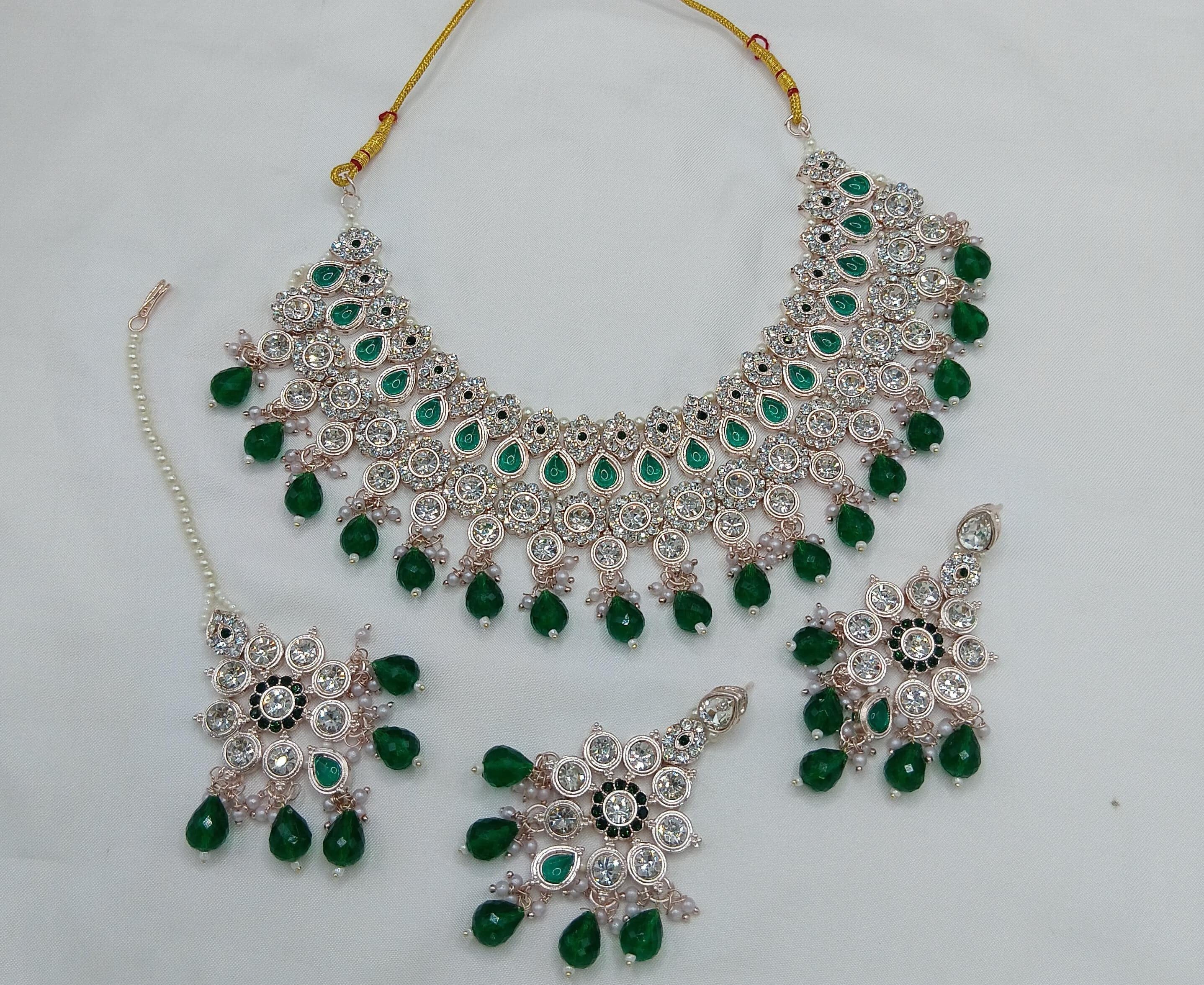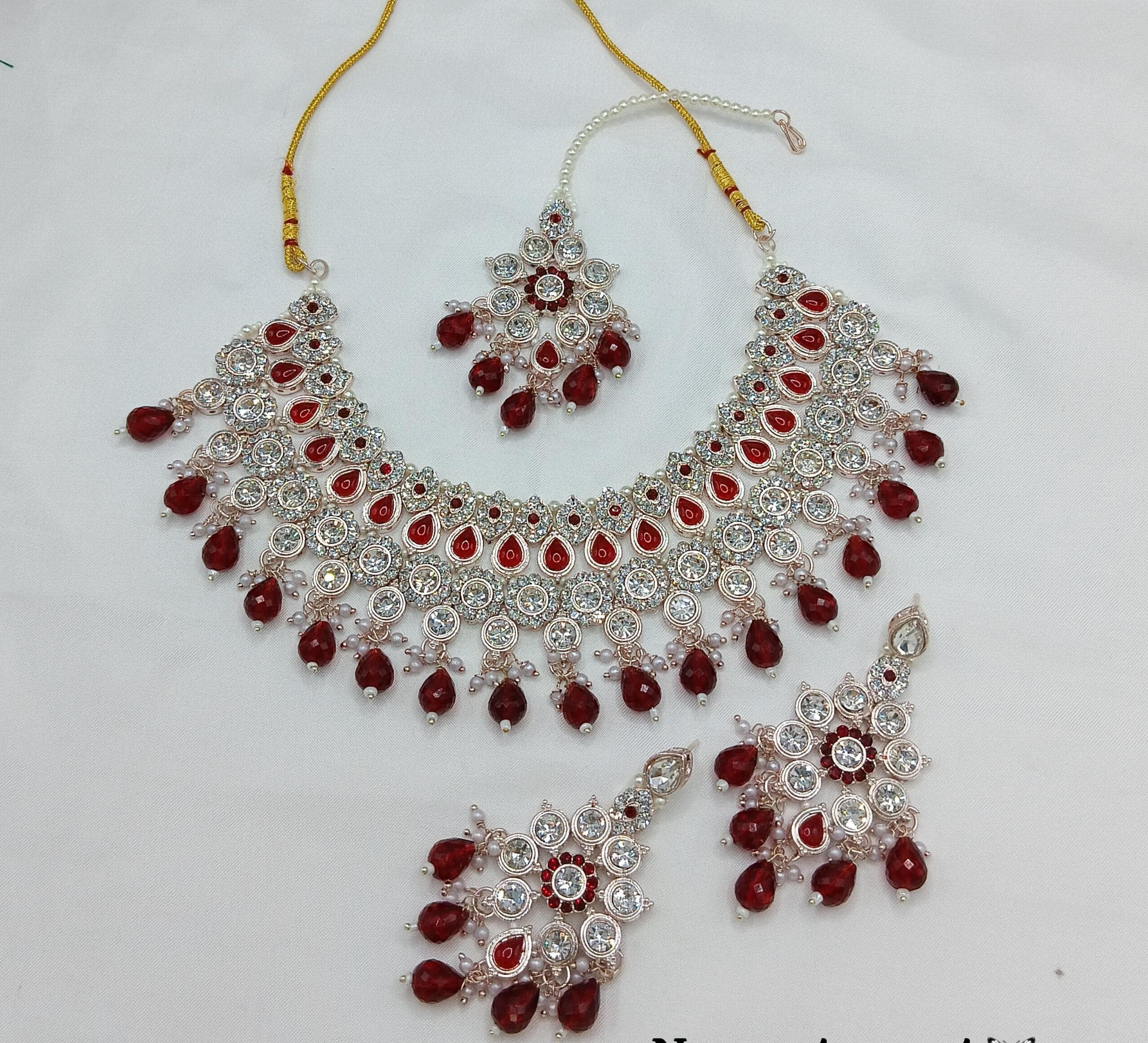 Choker Rose Gold Plated CZ Stone Jewellery Set