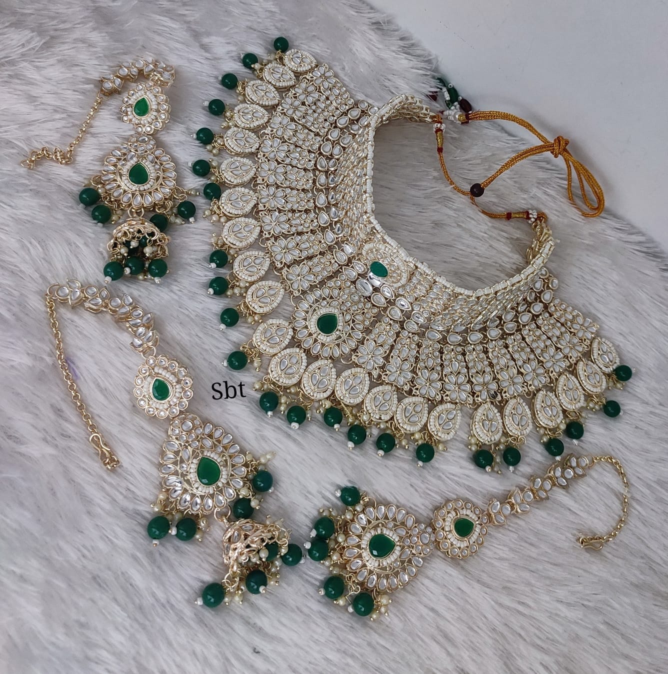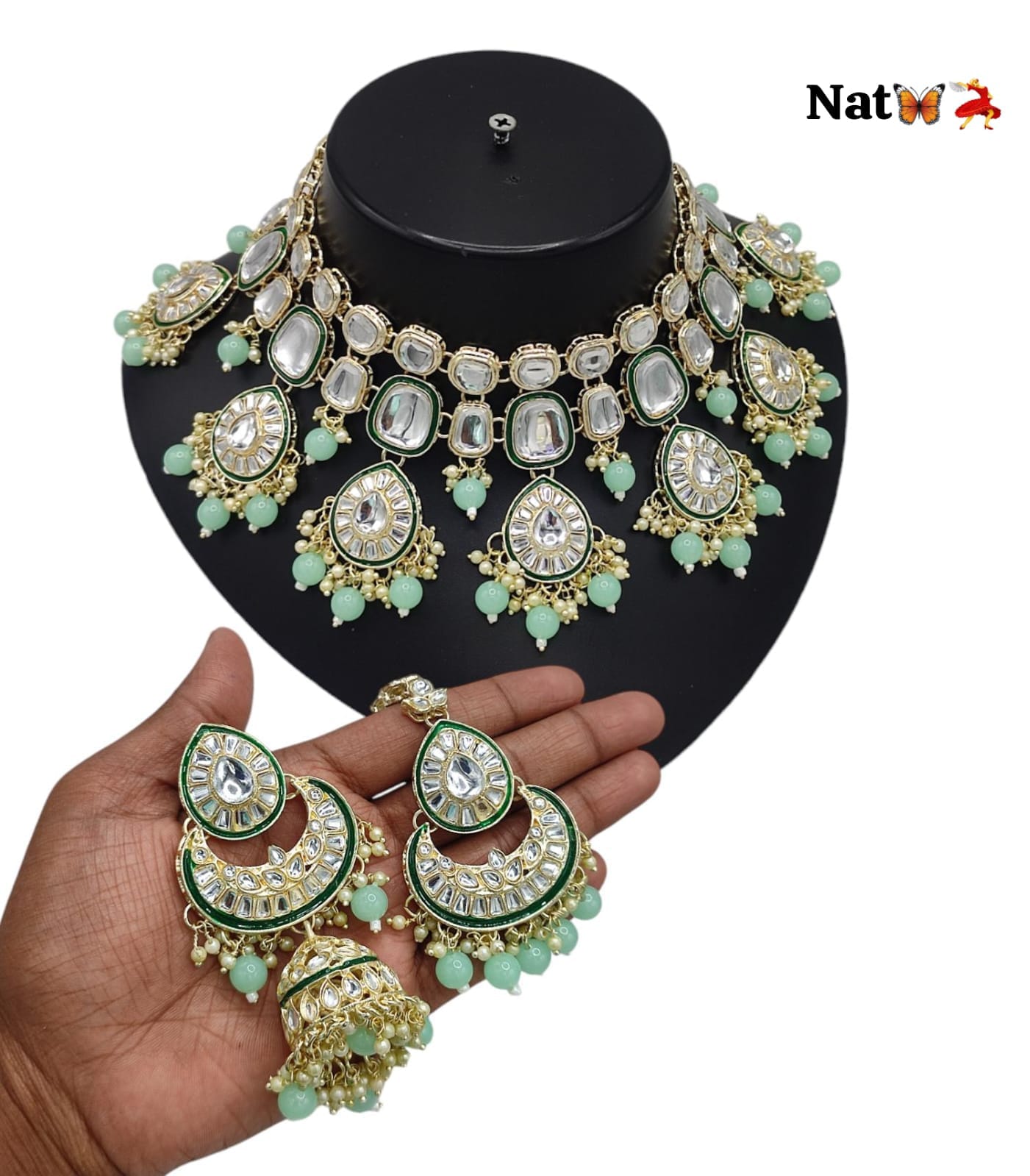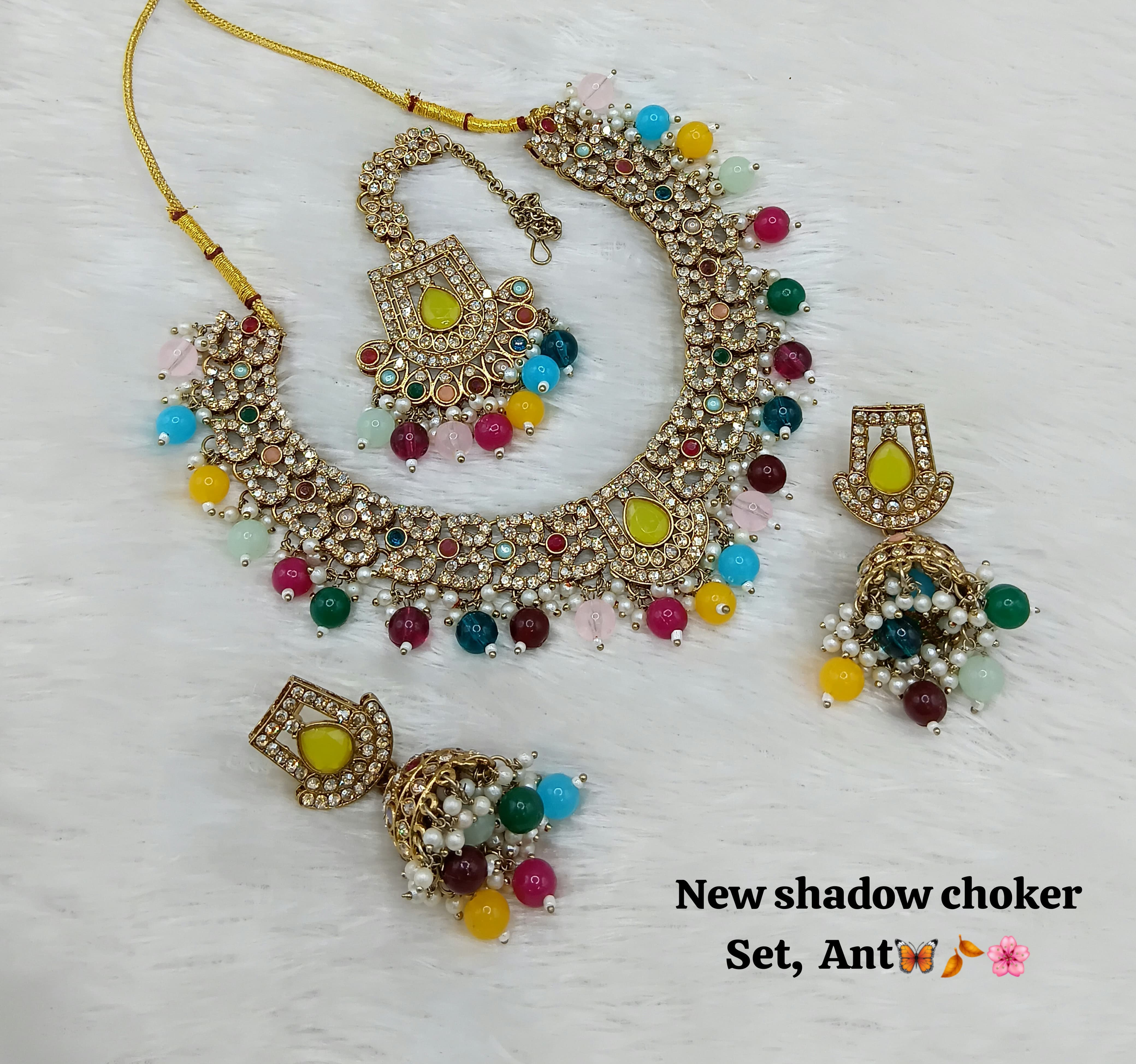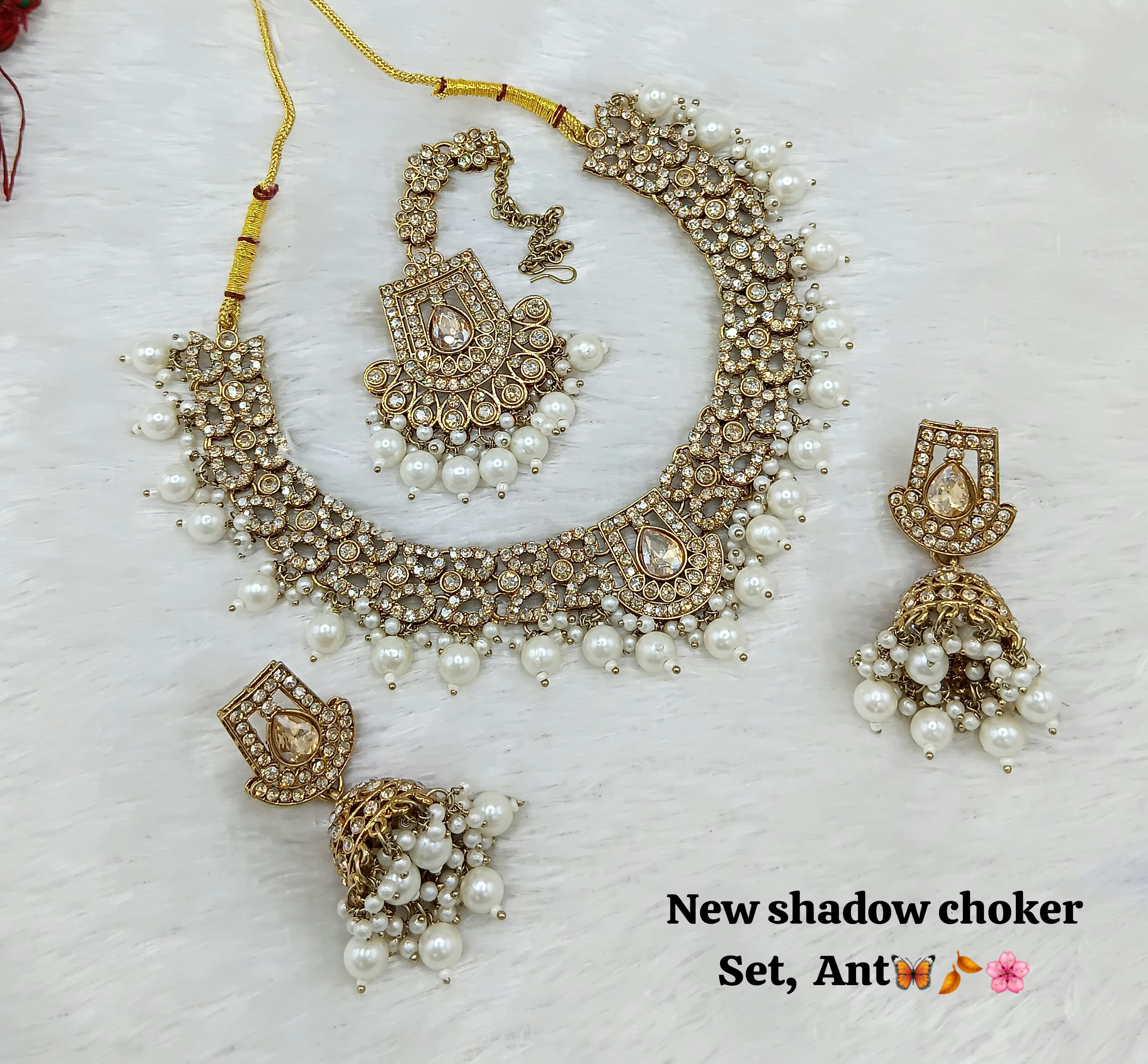 Elevate your style with our Choker Kundan Stone Antique Gold Plated Jewellery Set. Made with the finest materials, this set features intricate Kundan stone designs and...