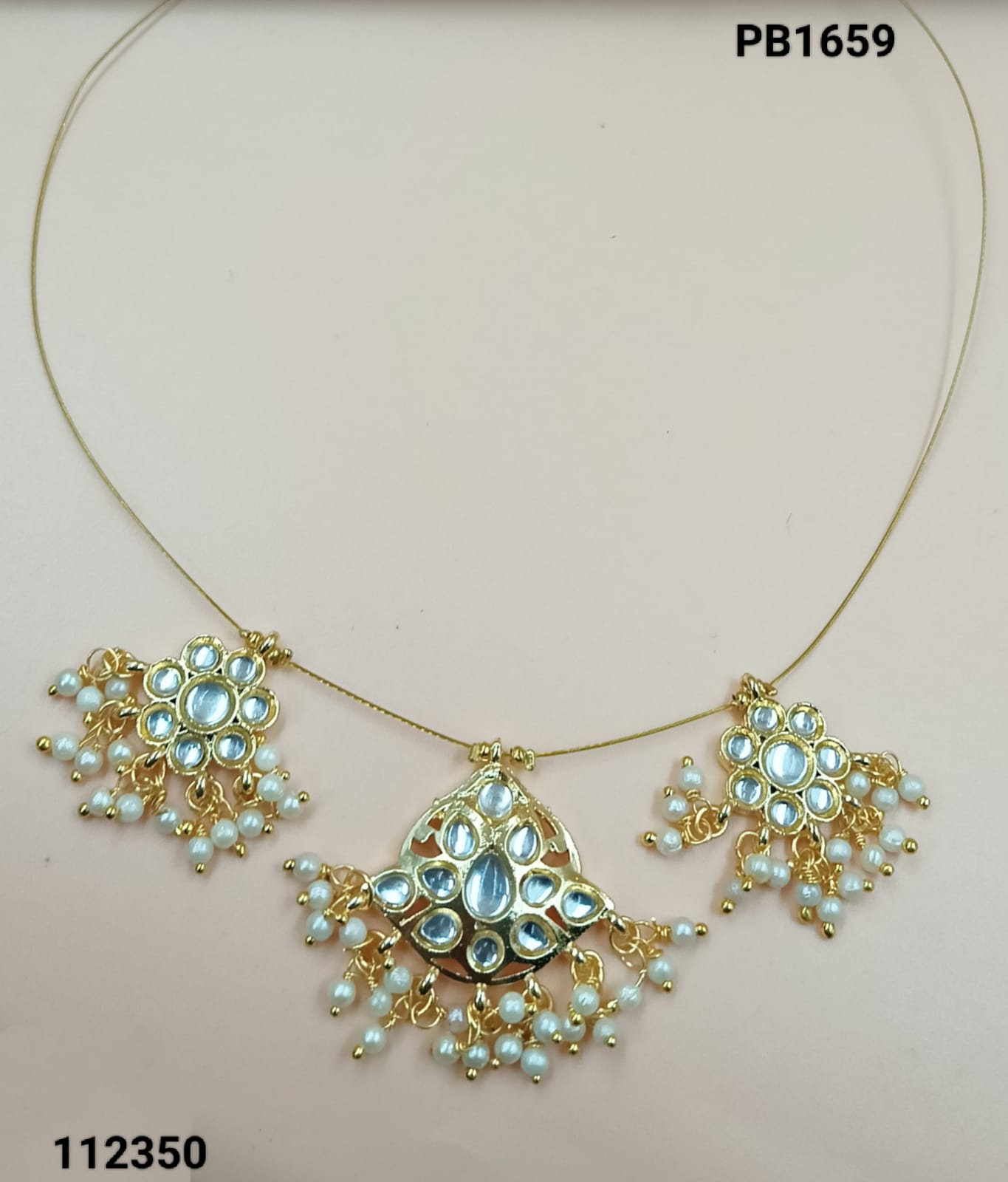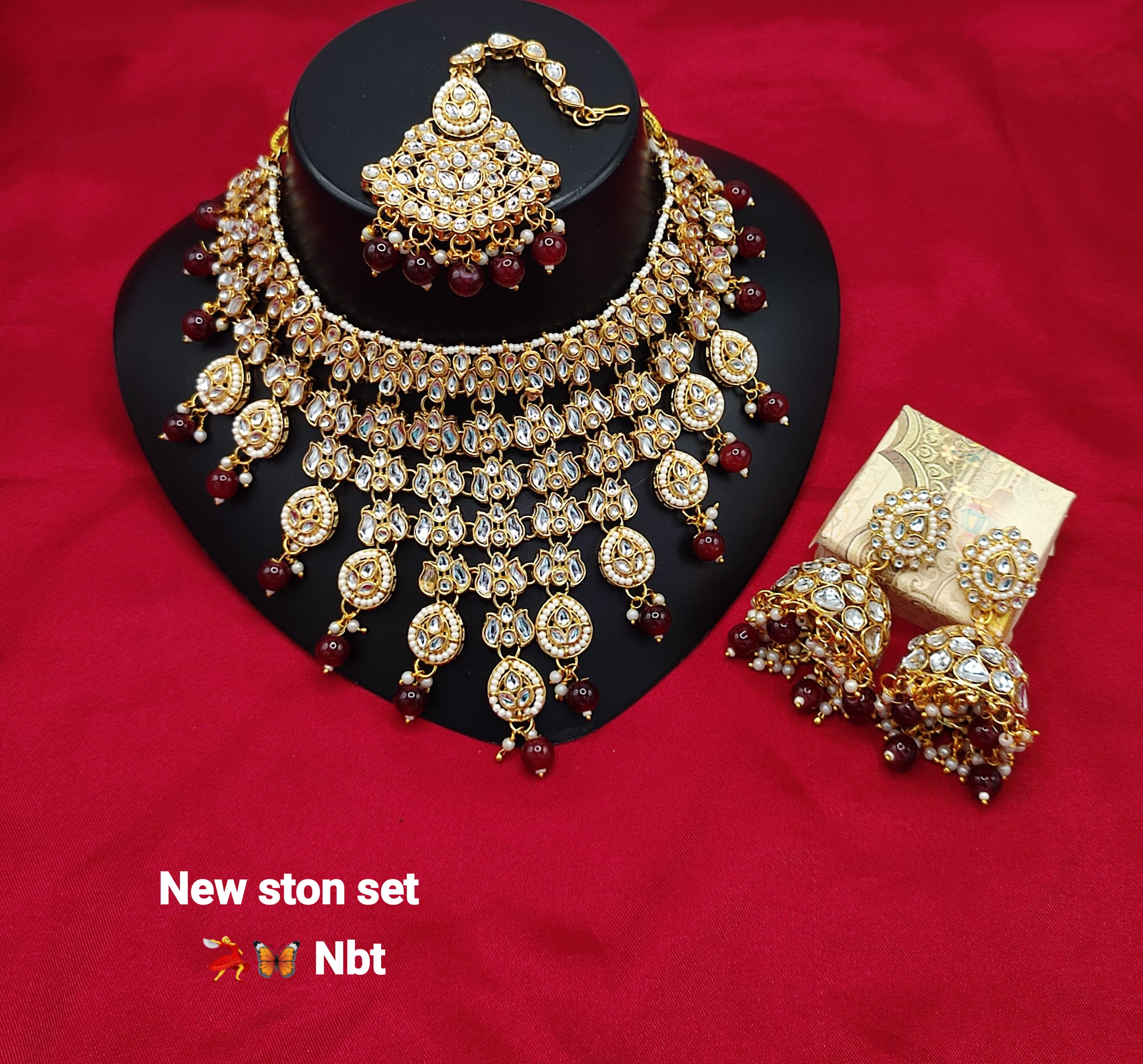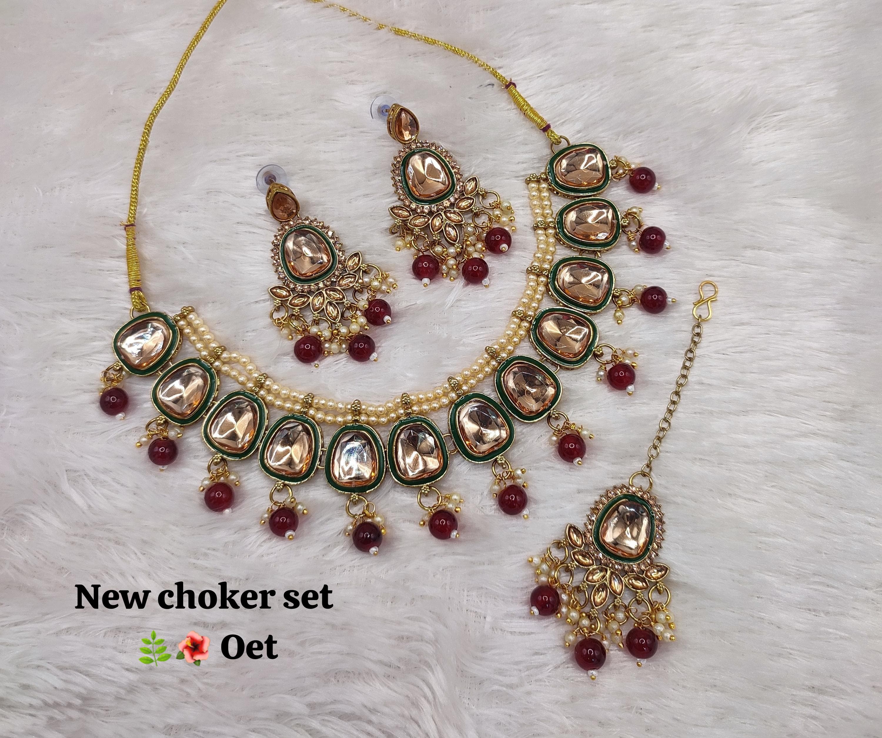 Crafted with exquisite detail, our Gold Polish Kundan Stone Choker Jewellery Set is a stunning statement piece. The intricate design and use of high-quality Kundan stones...