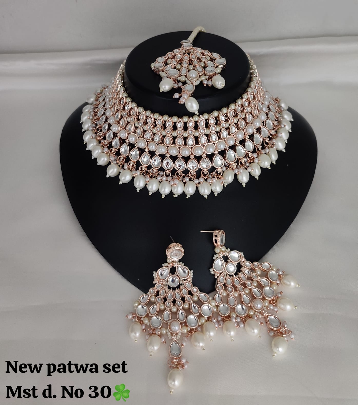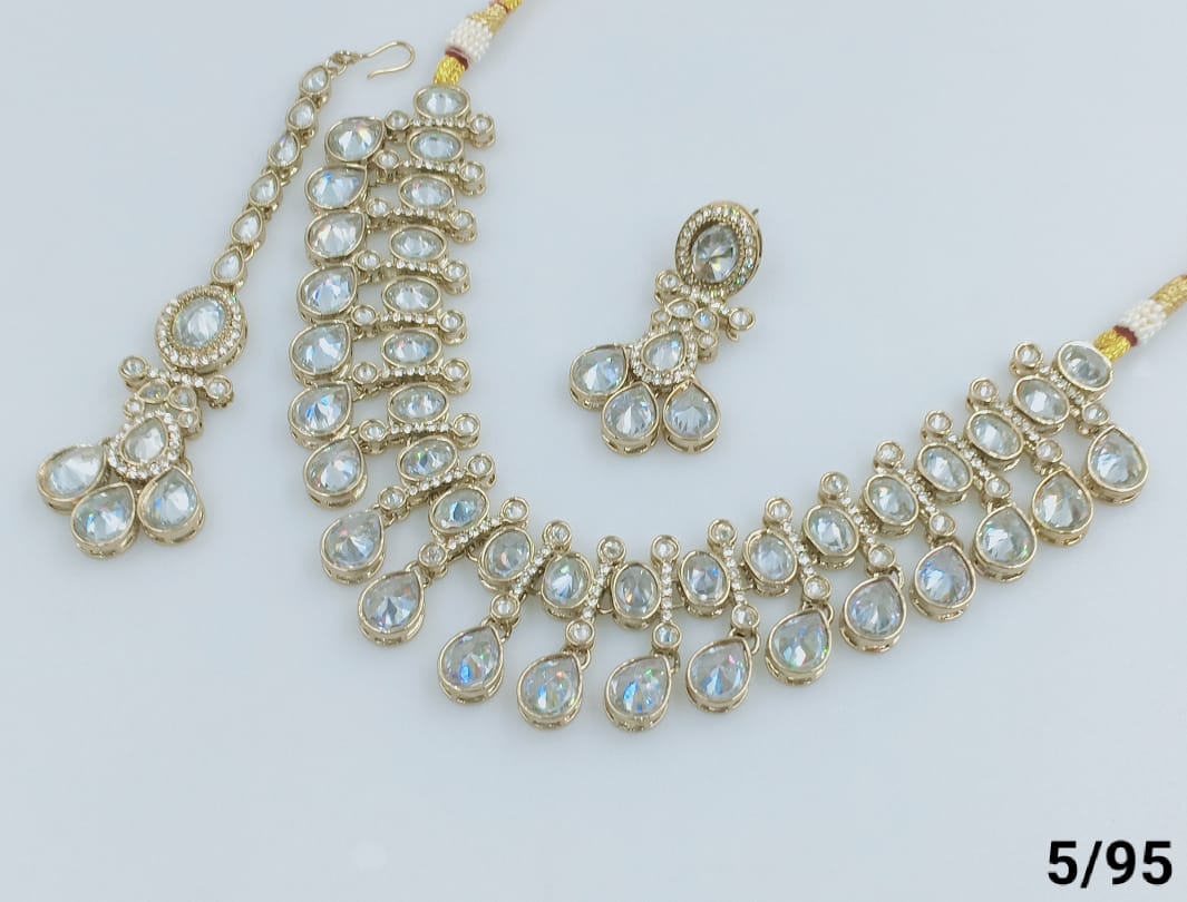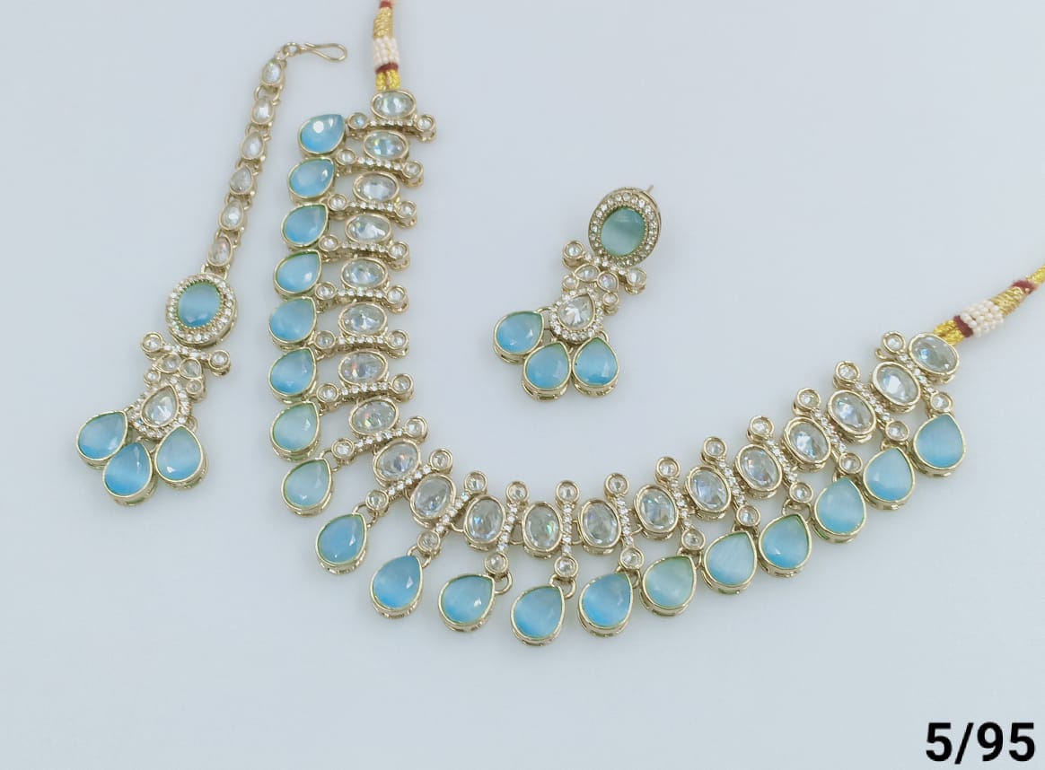 Crafted with exquisite detail, our Gold Polish Kundan Stone Choker Jewellery Set is a stunning statement piece. The intricate design and use of high-quality Kundan stones...