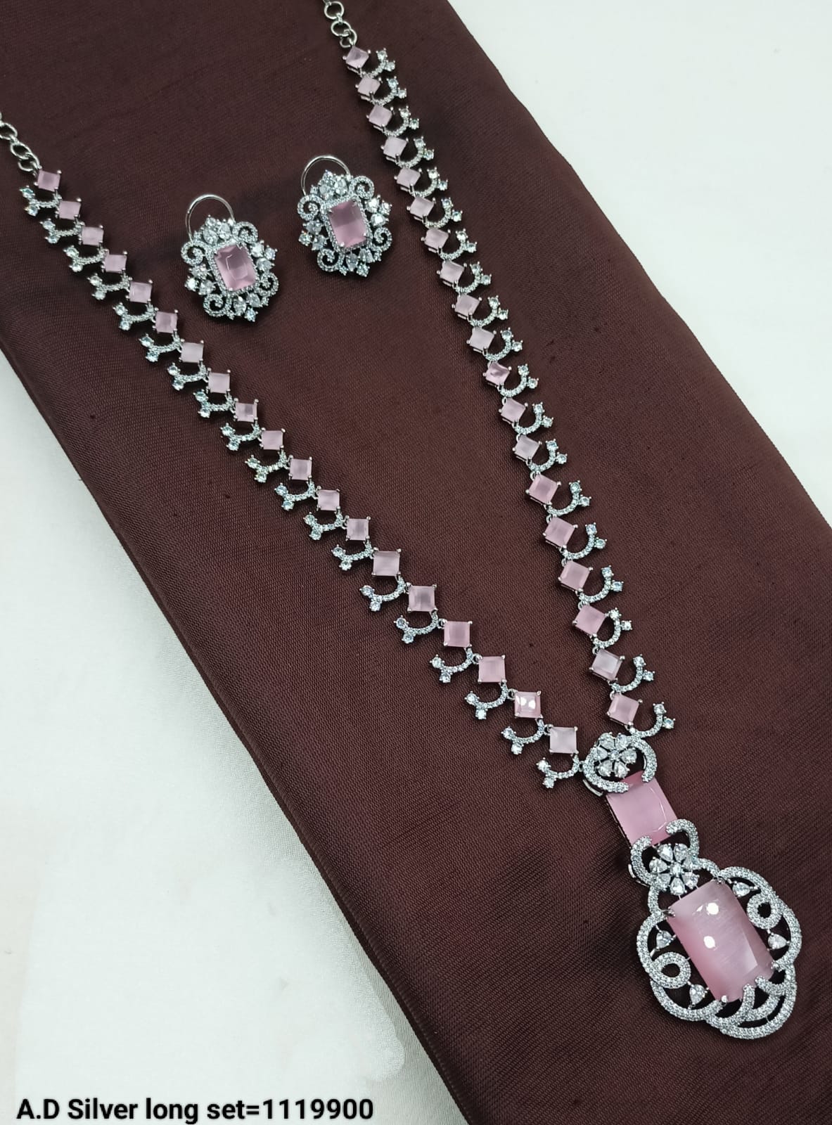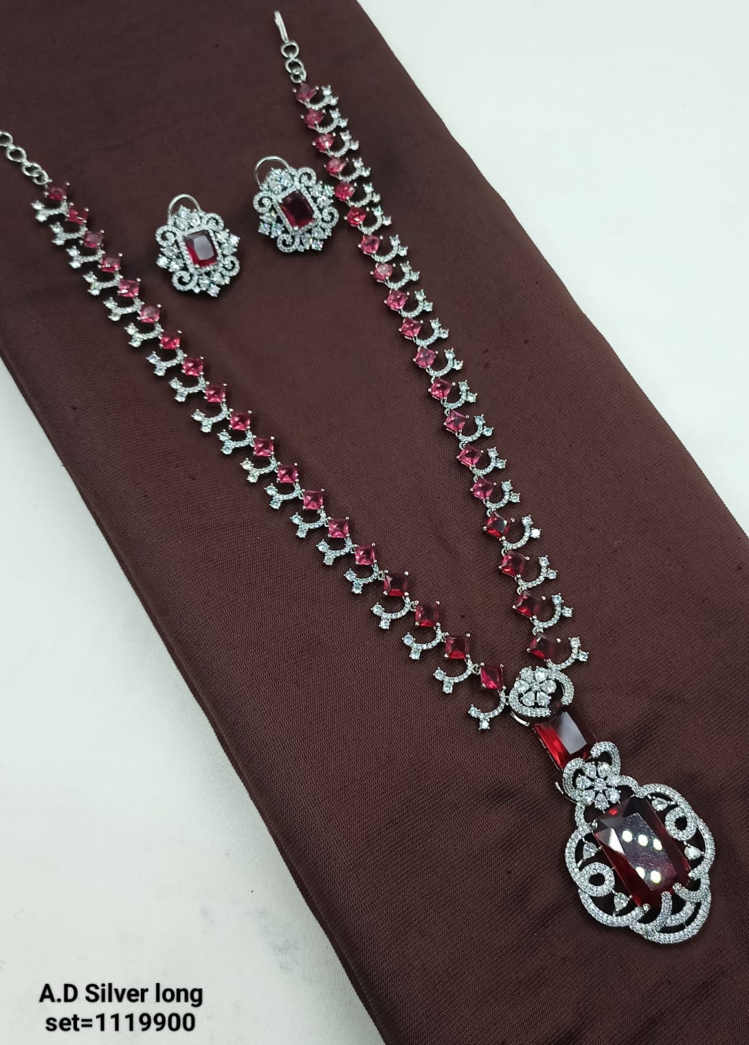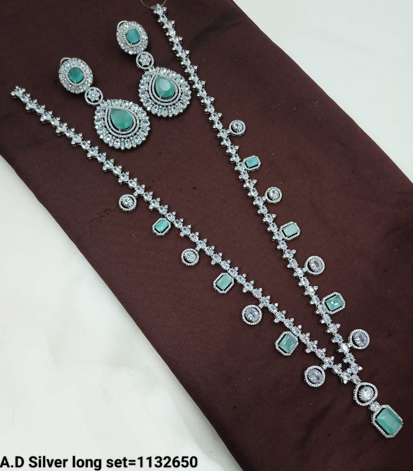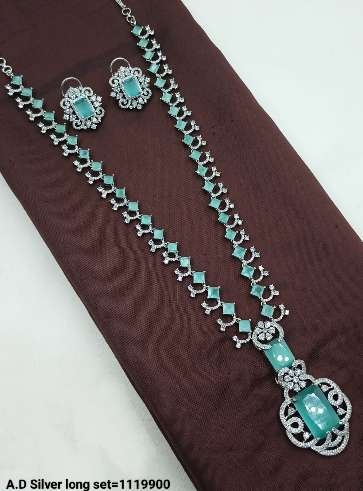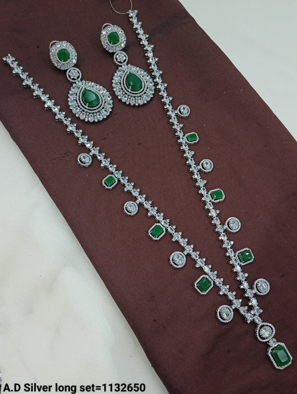 AD Silver Long Necklace and Earring Set with Stone Detailing - Lucentemarket