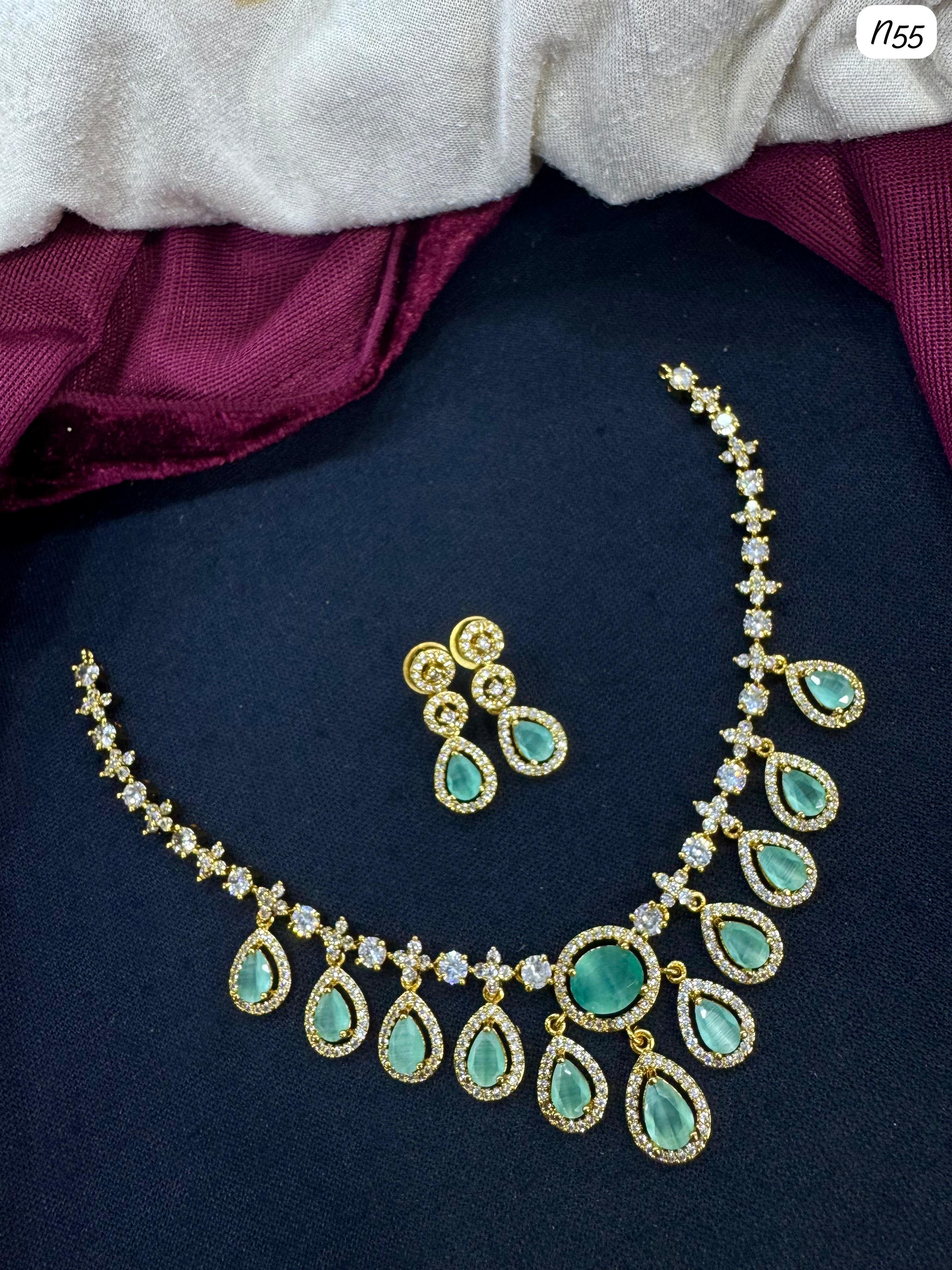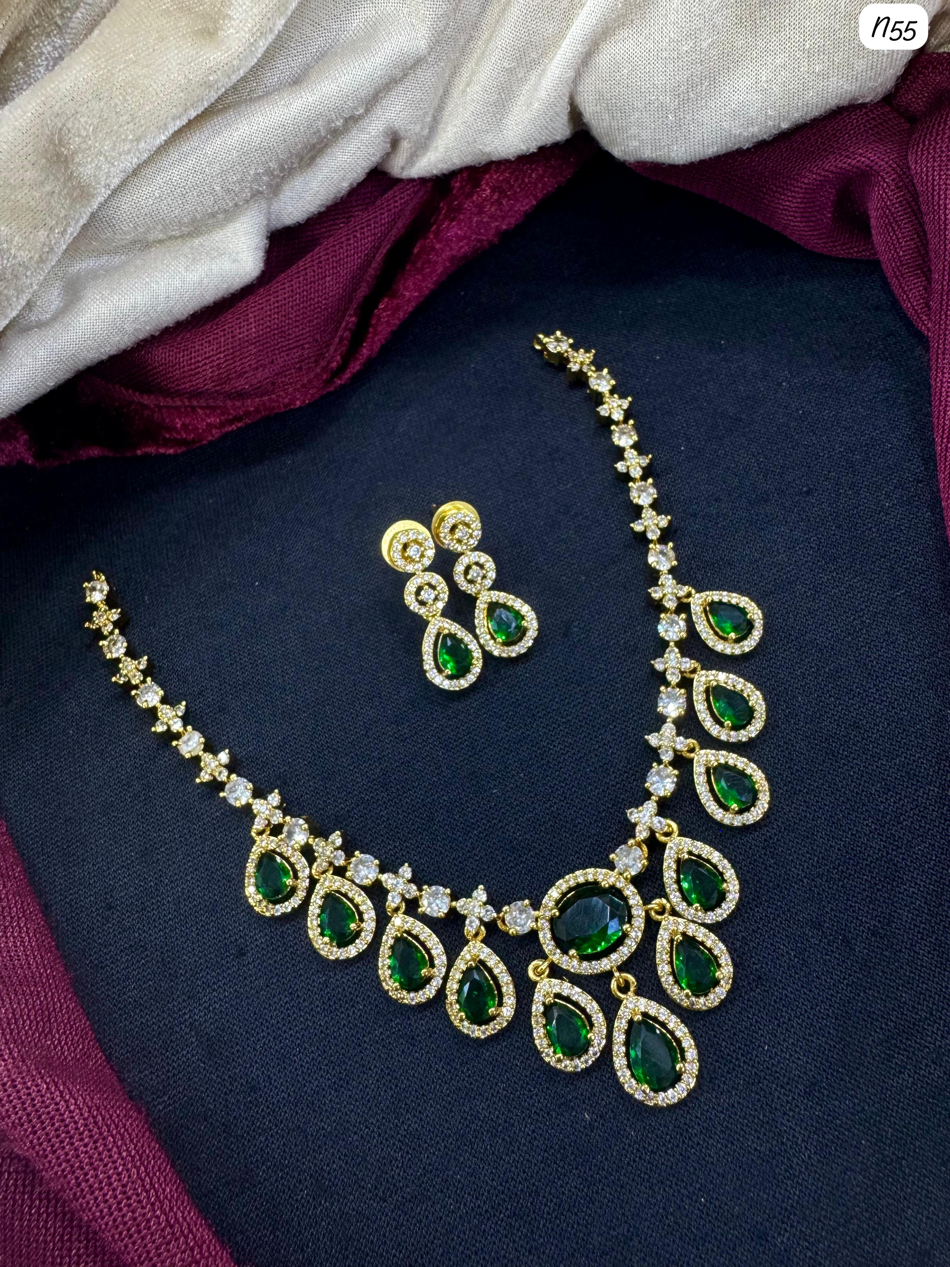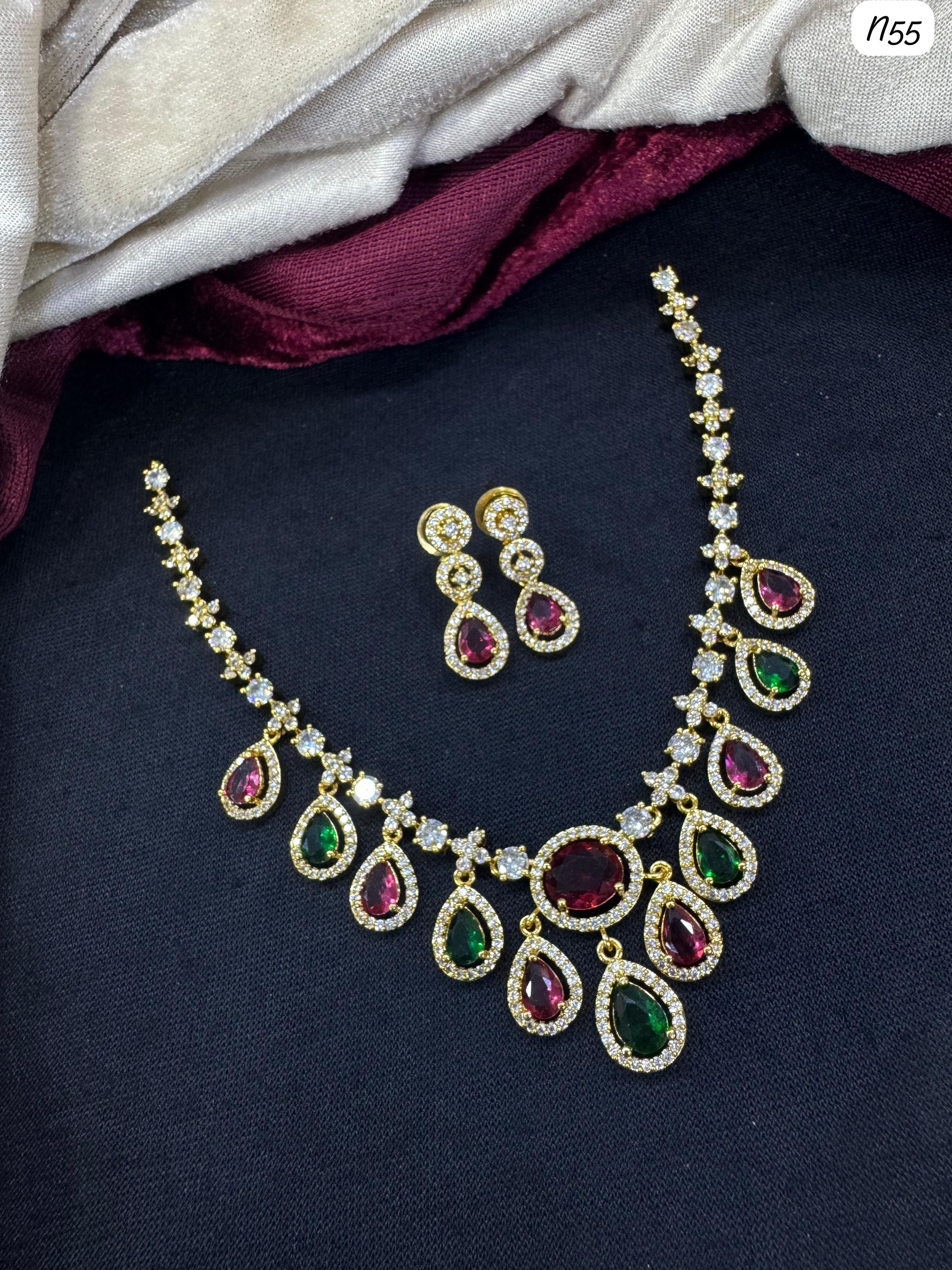 Add a touch of elegance to your ensemble with this beautifully crafted AD Necklace and Earring Set featuring a classic teardrop stone design. Each teardrop is...