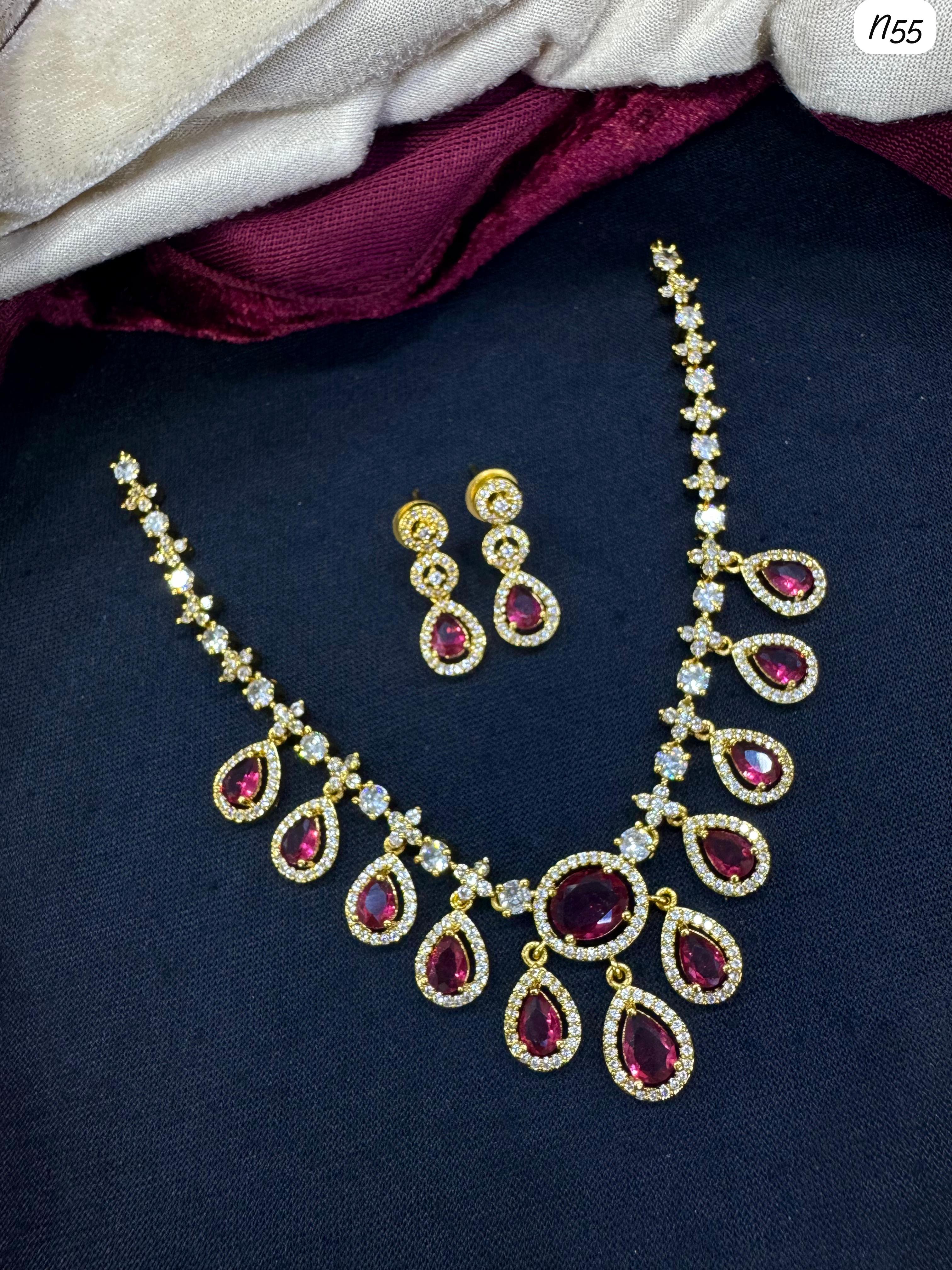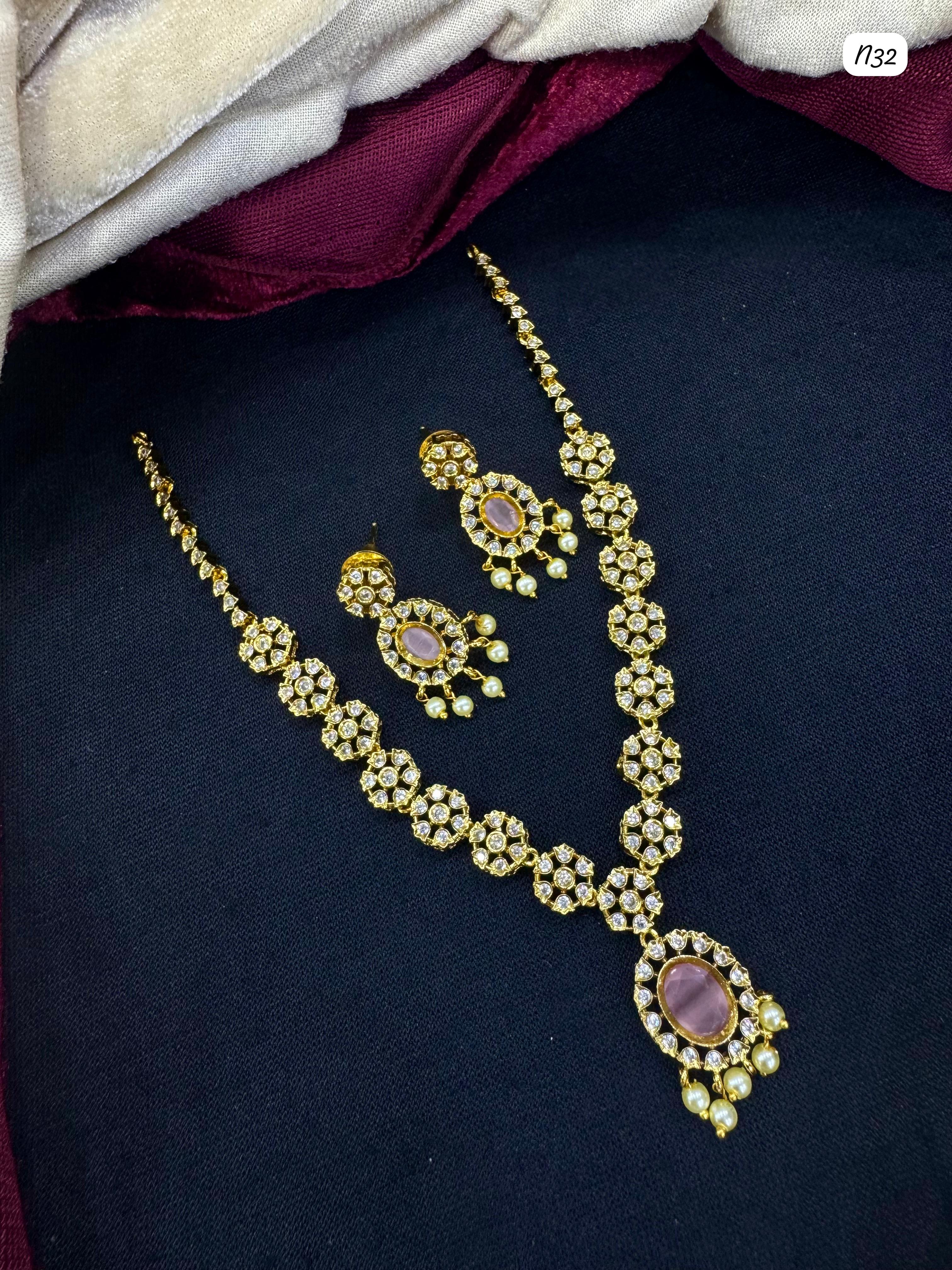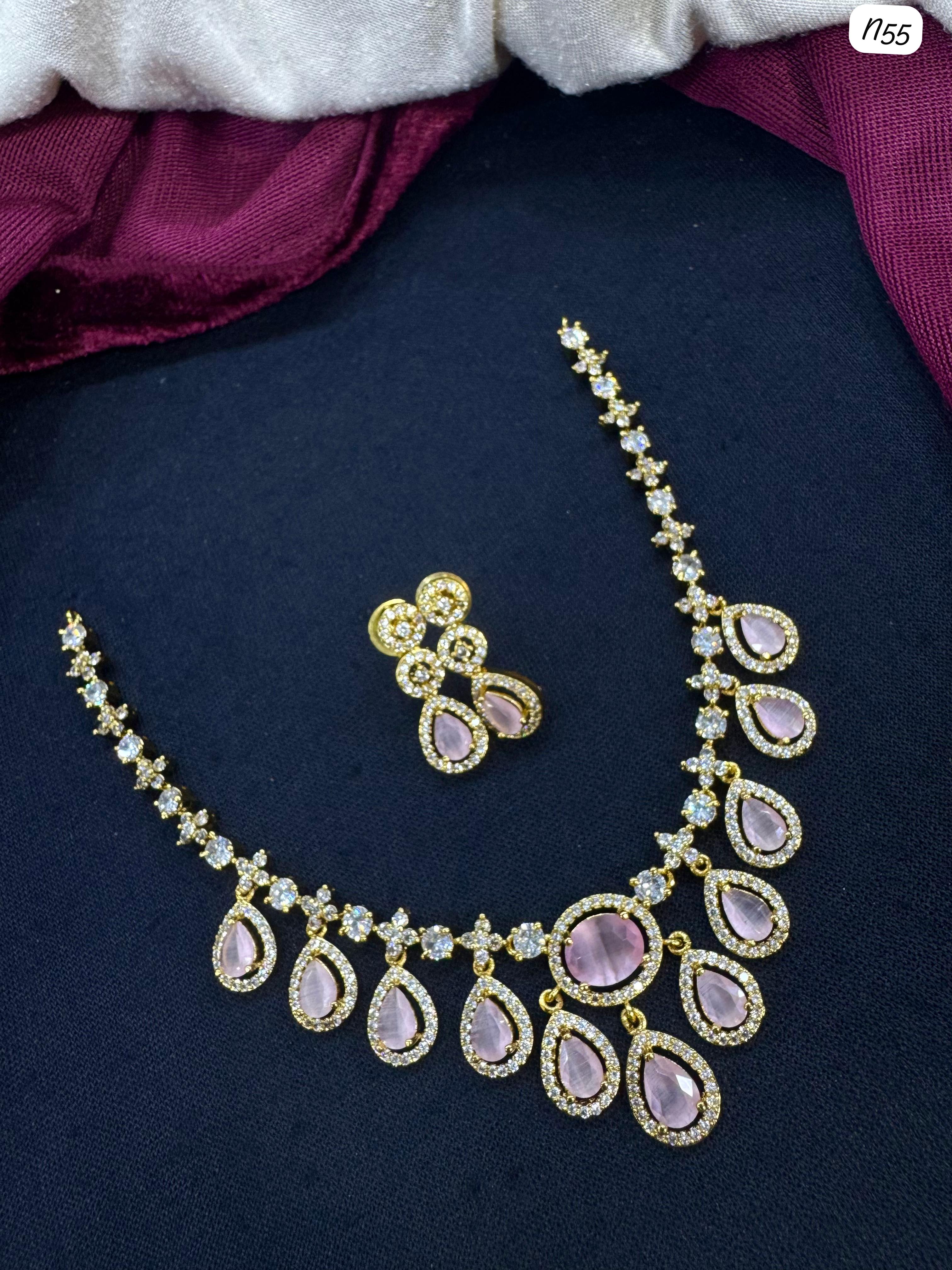 Add a touch of elegance to your ensemble with this beautifully crafted AD Necklace and Earring Set featuring a classic teardrop stone design. Each teardrop is...