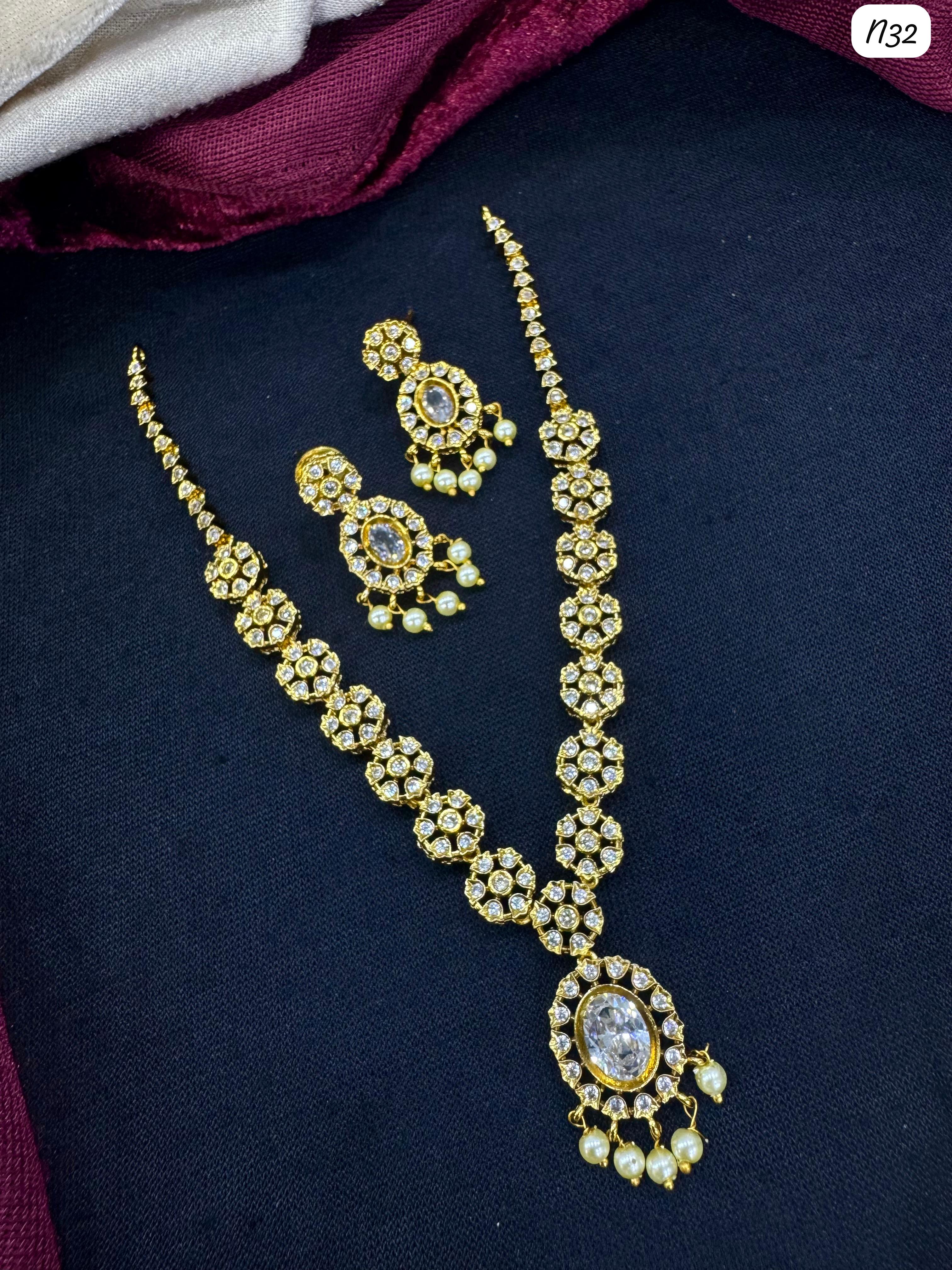 Premium AD Gold Necklace & Earrings Set with Pearl Drops – Lucentemarket