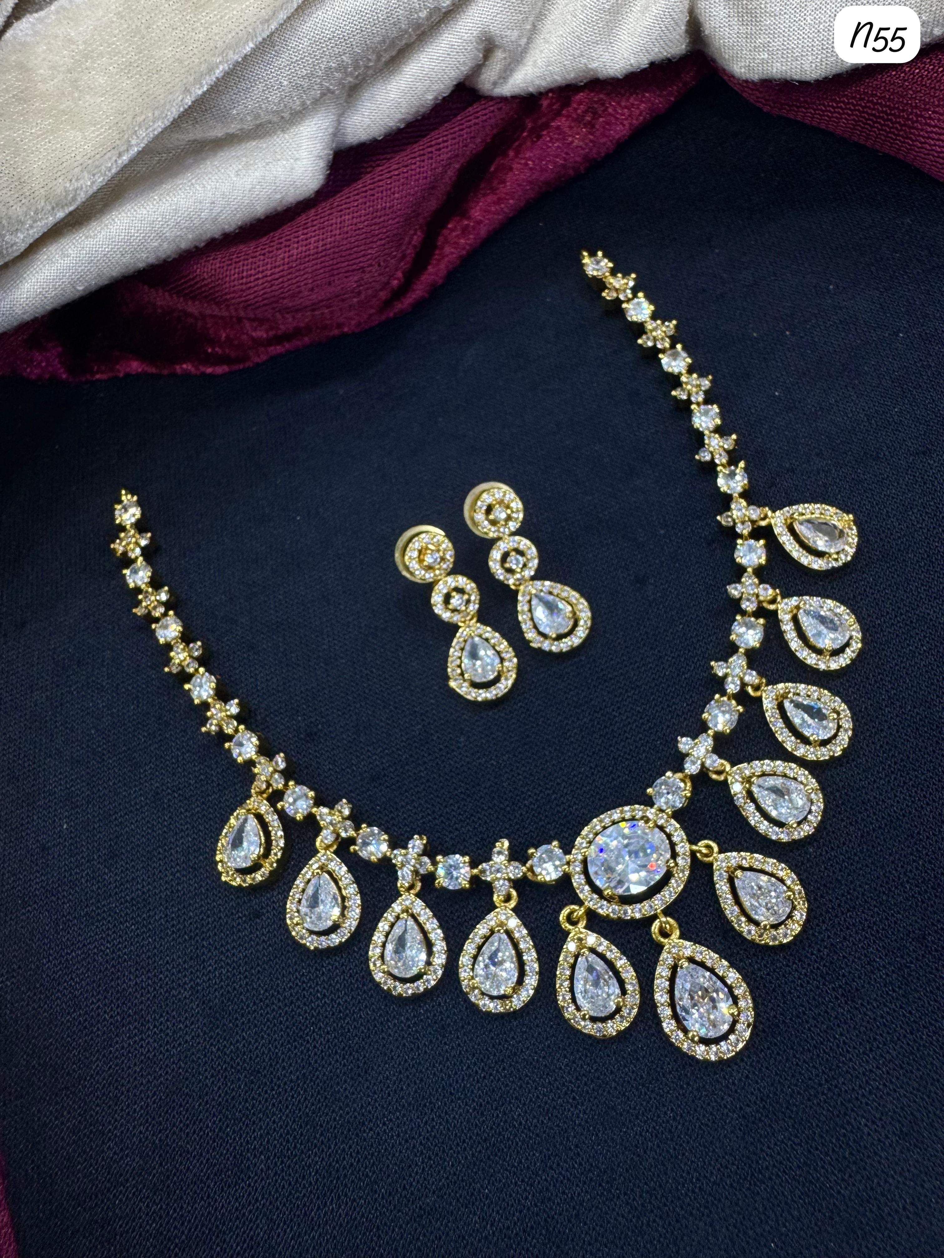 CZ Gold Plated Choker Necklace Jewellery Set With Earrings - Lucentemarket