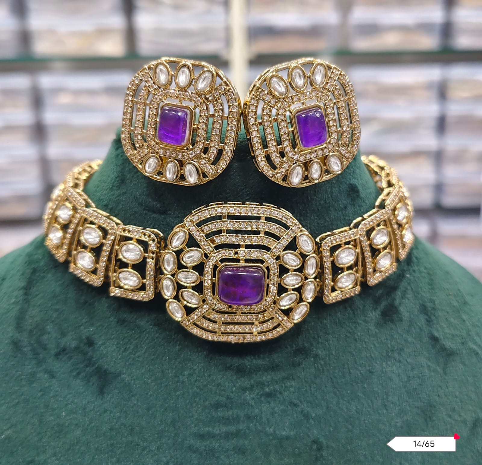 Multicolor Kundan Stone Choker Necklace Set with Matching Earrings