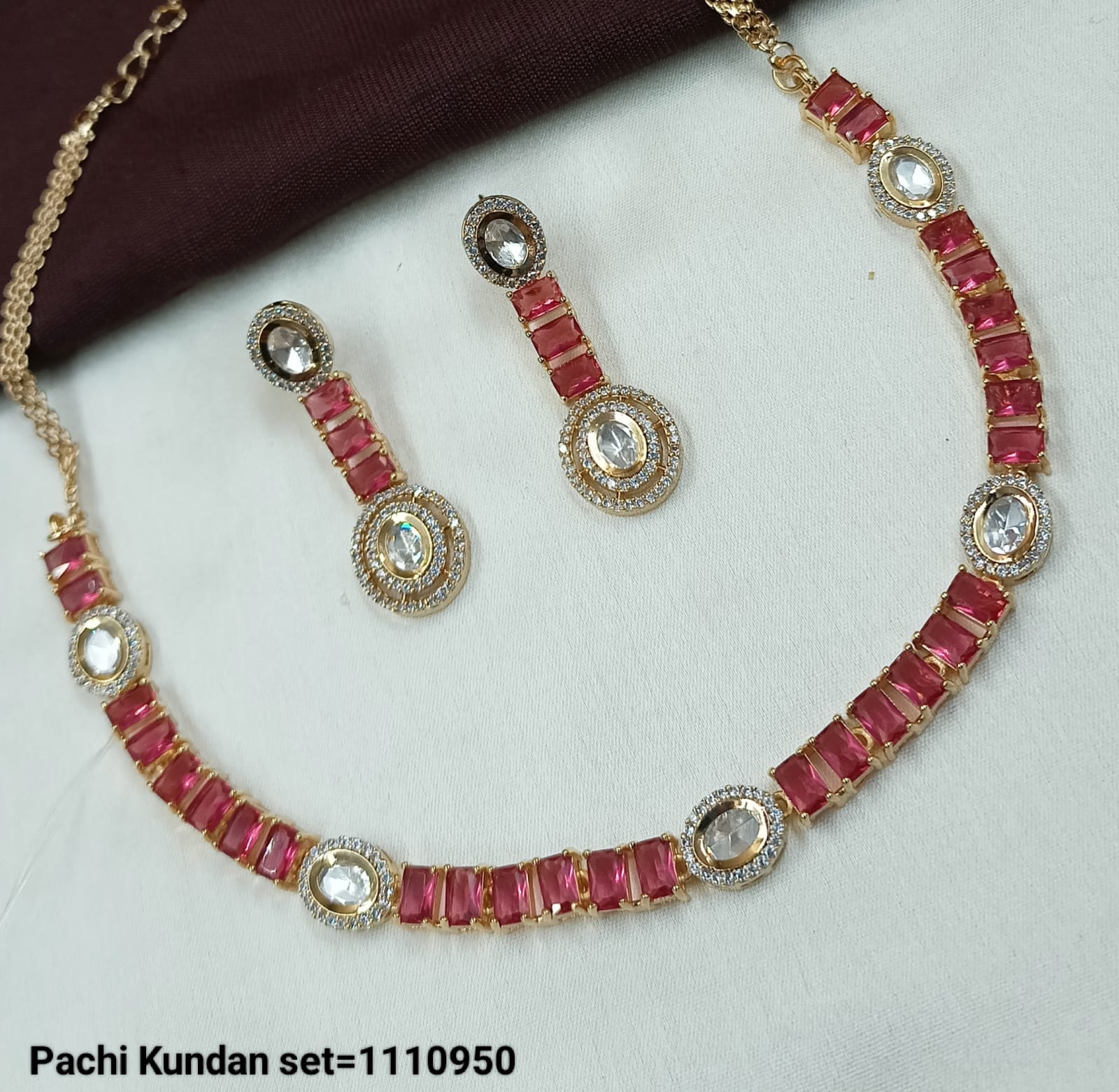 Lucentemarket Pachi Kundan Rani Pink Necklace Set – Elegant Bridal & Festive Jewelry
