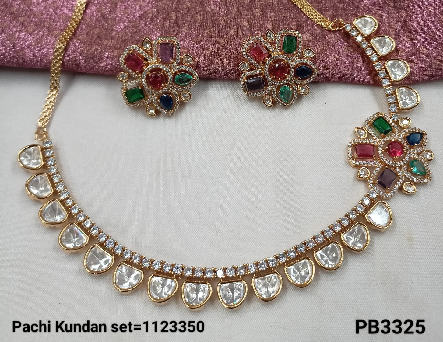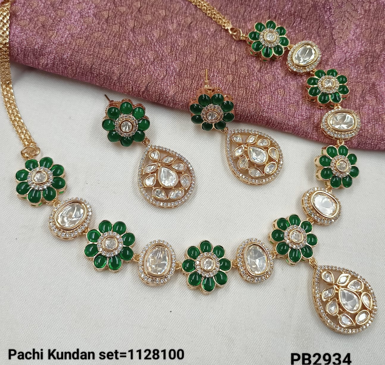 Fashionable Floral Pachi Kundan Gold Plated Necklace Set