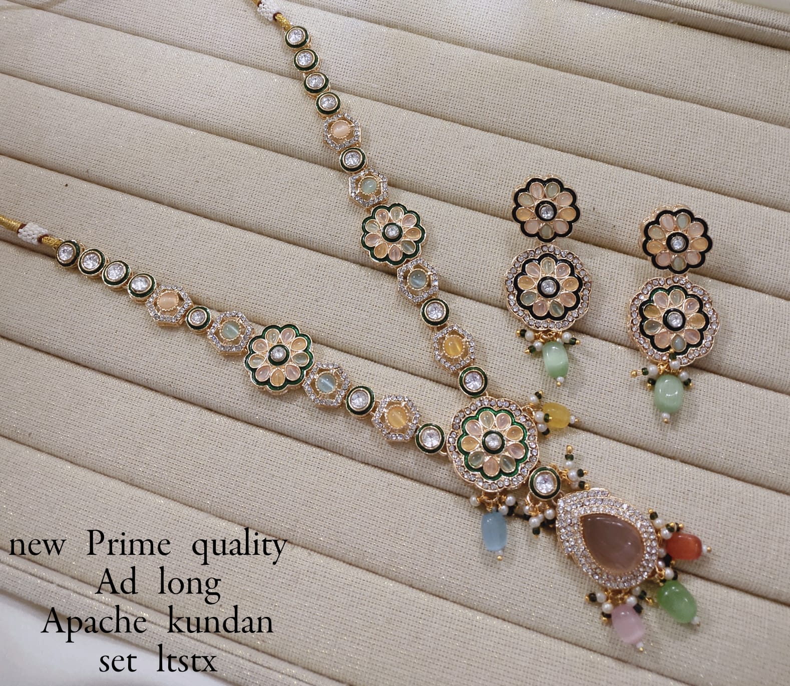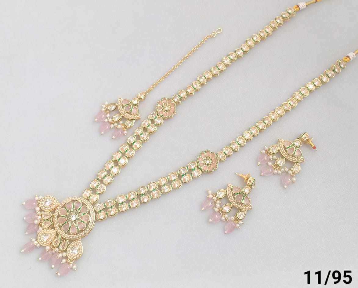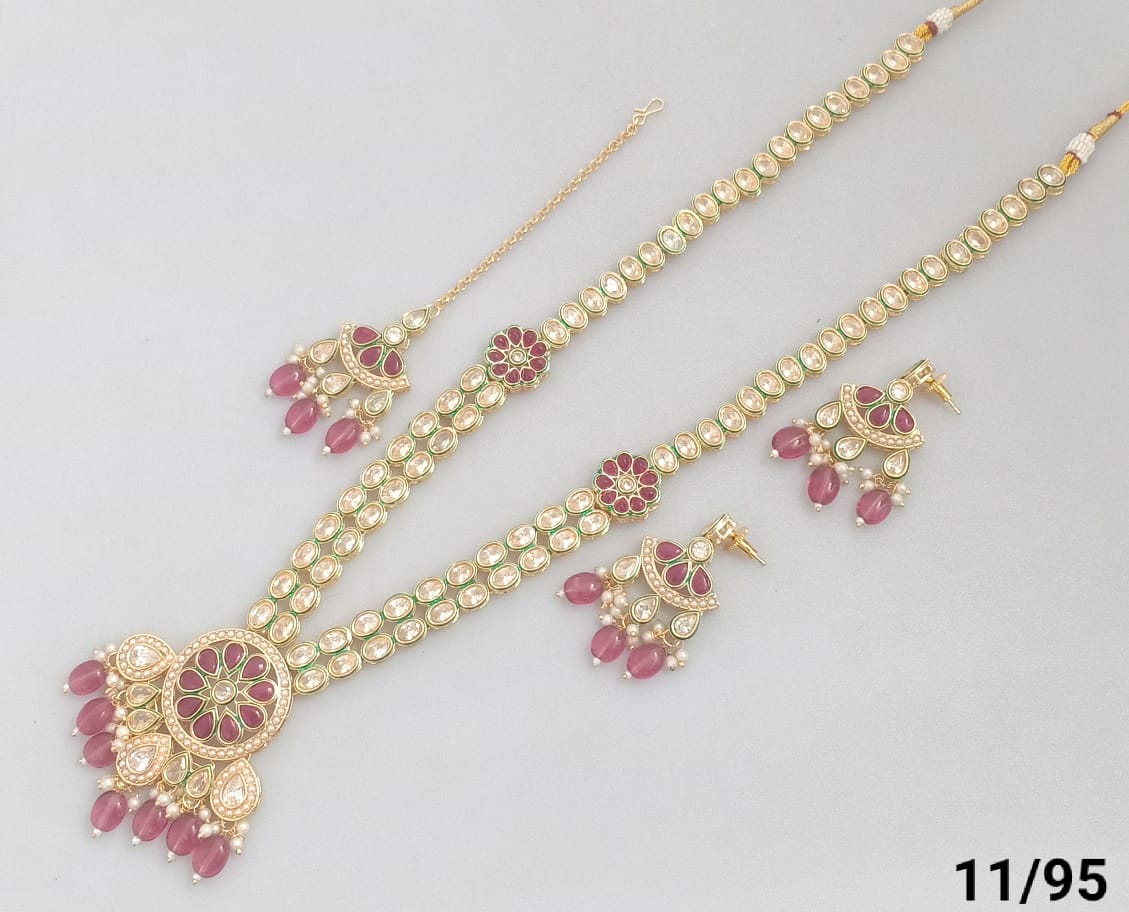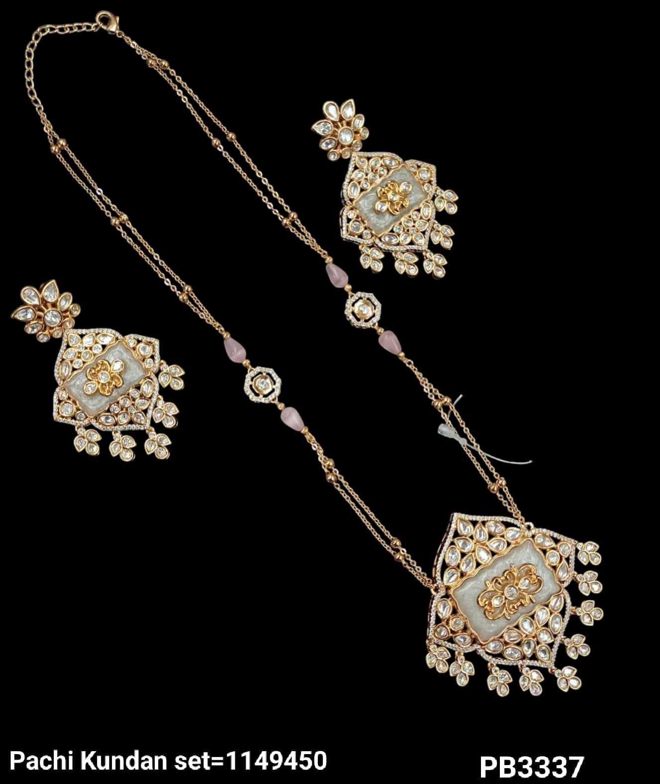 Elegant Prime Quality Long Kundan Necklace Set with Matching Earrings