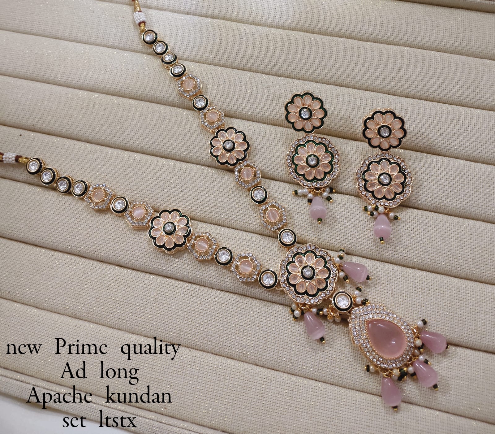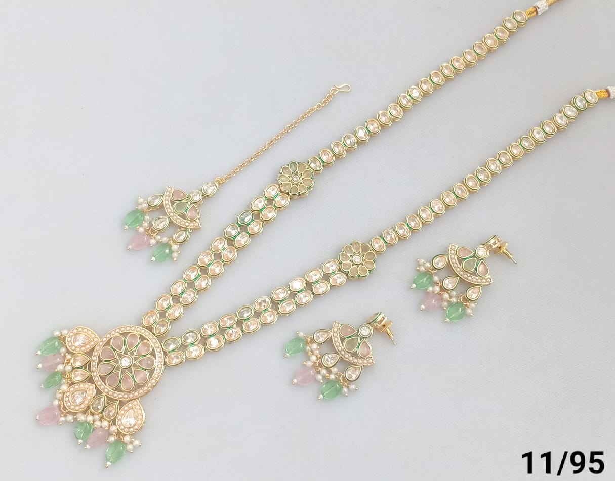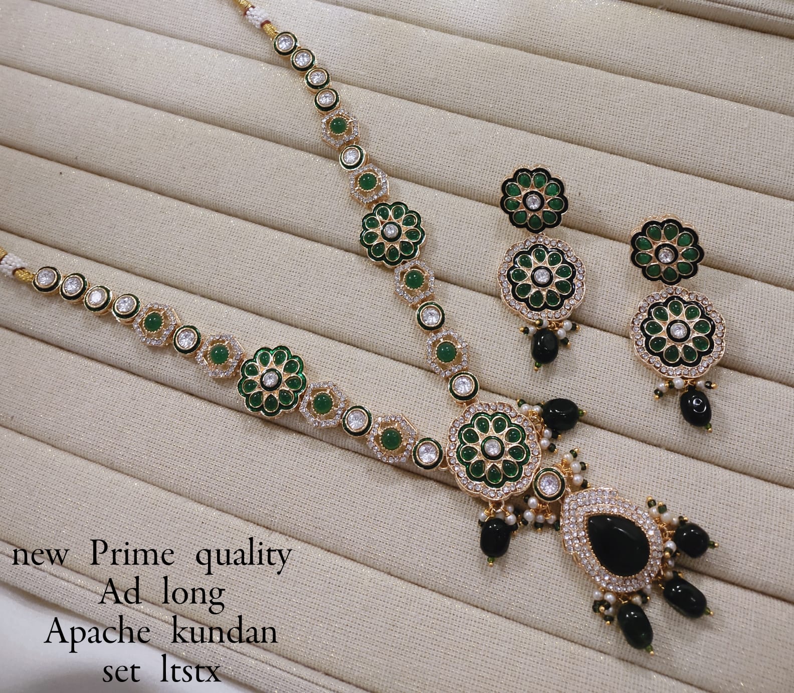 Elegant Prime Quality Long Kundan Necklace Set with Matching Earrings