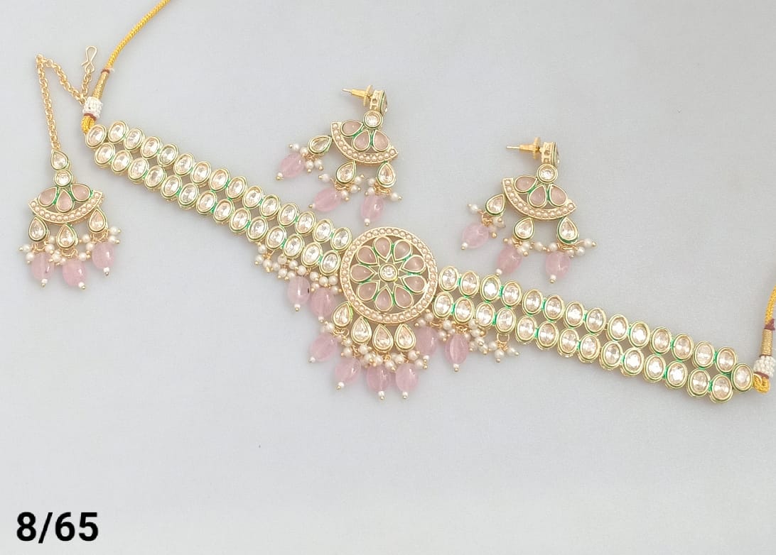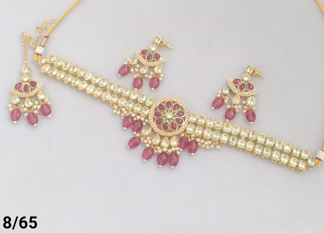 Floral Kundan Choker Necklace Set with Earrings and Maang Tikka