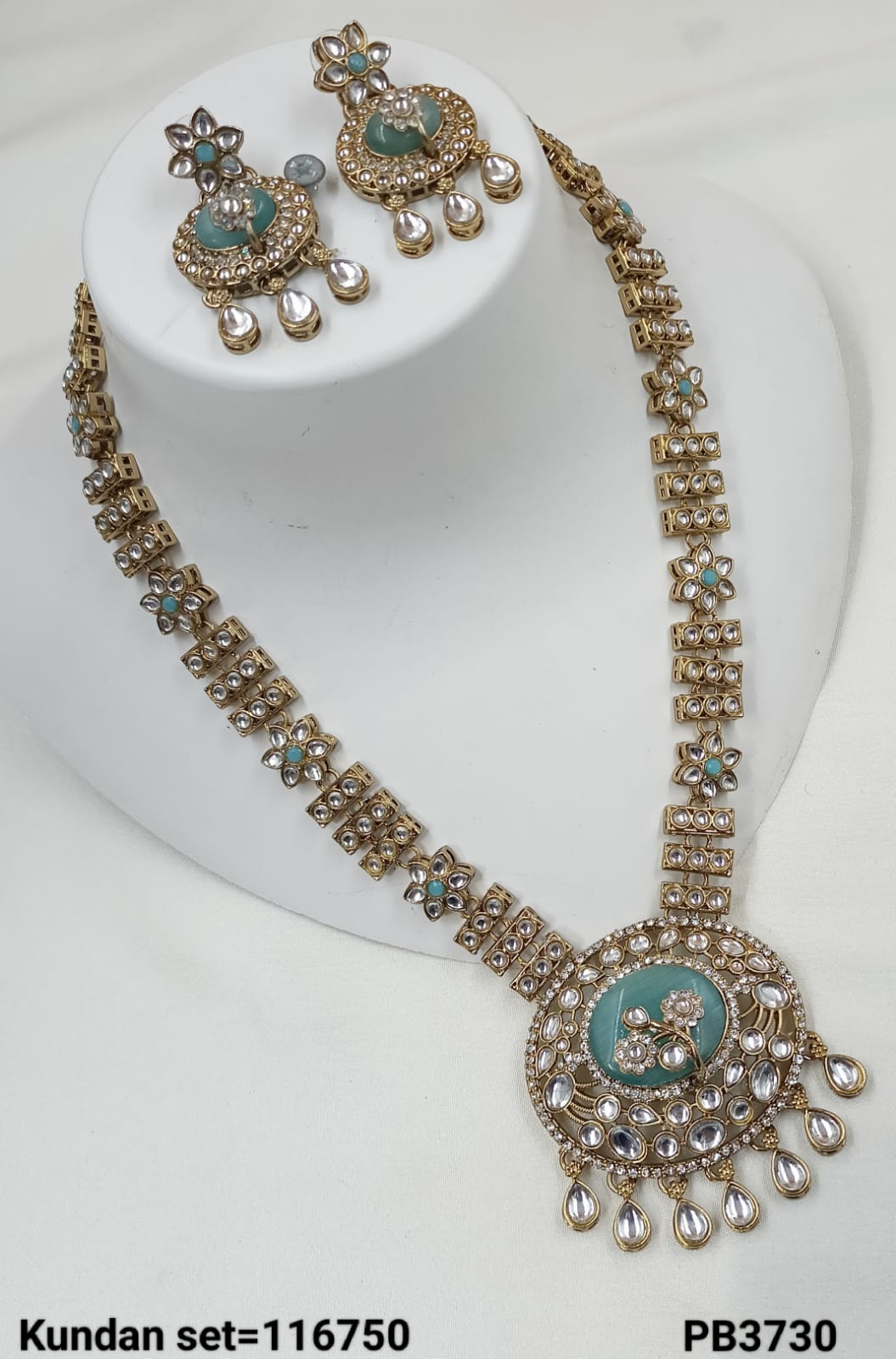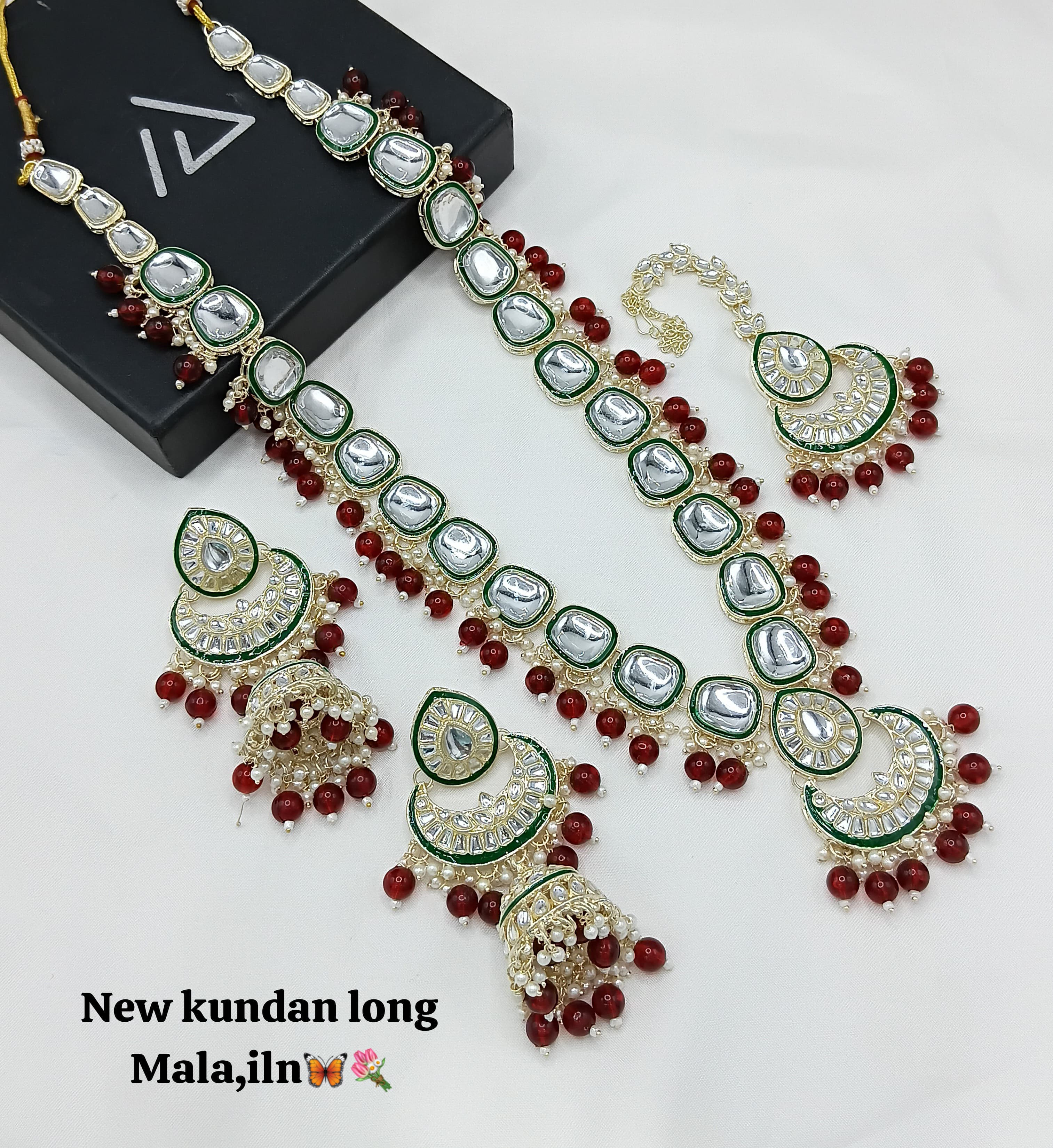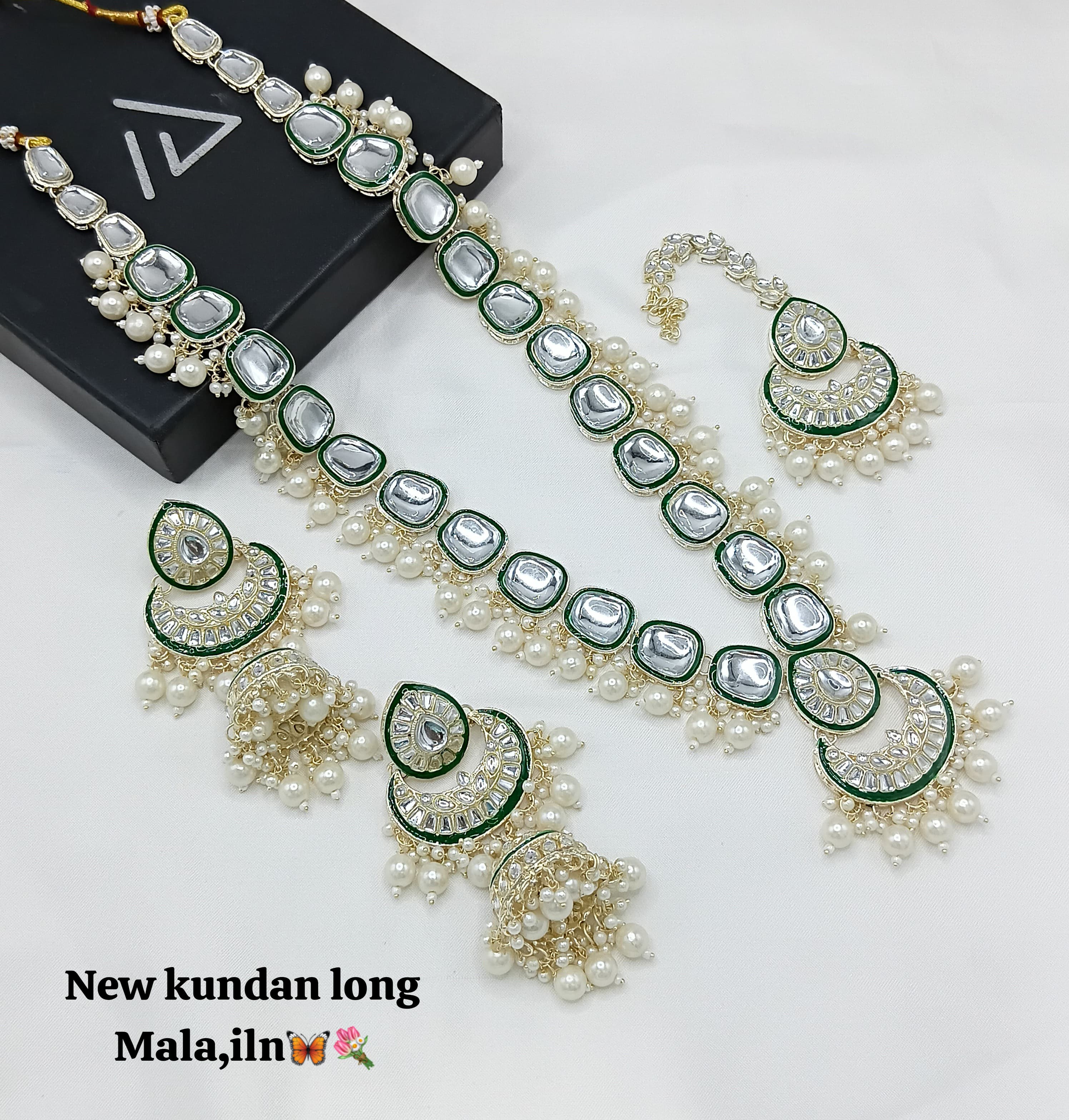 Discover the timeless beauty of this long Kundan jewellery set, expertly crafted and finished with a luxurious gold plating for a distinguished traditional look. It Has...