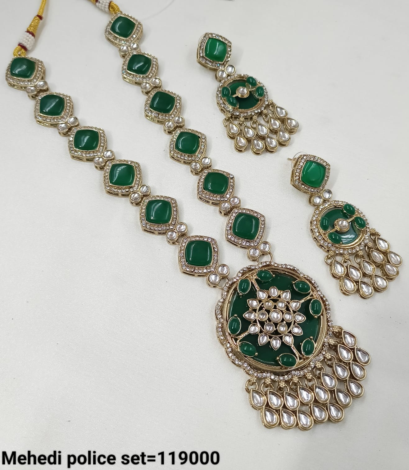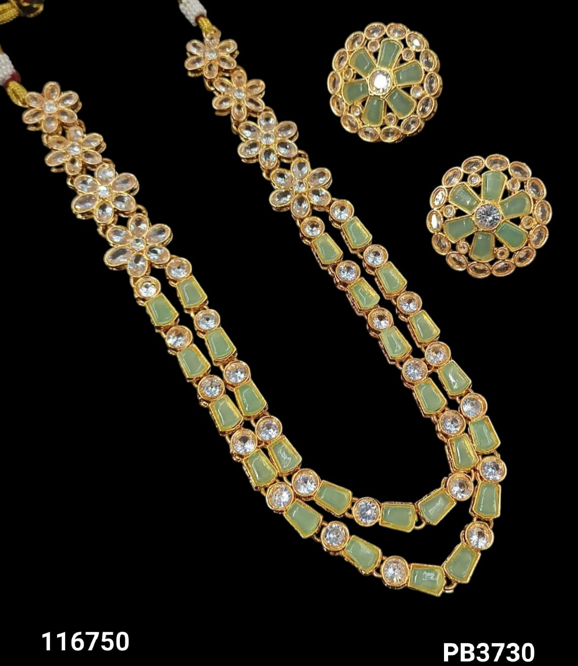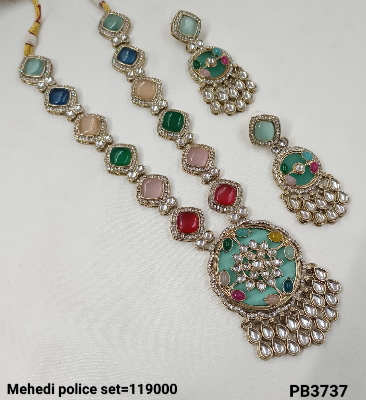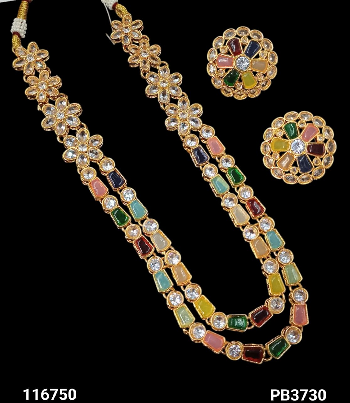 Discover the timeless beauty of this long Kundan jewellery set, expertly crafted and finished with a luxurious gold plating for a distinguished traditional look. It Has...