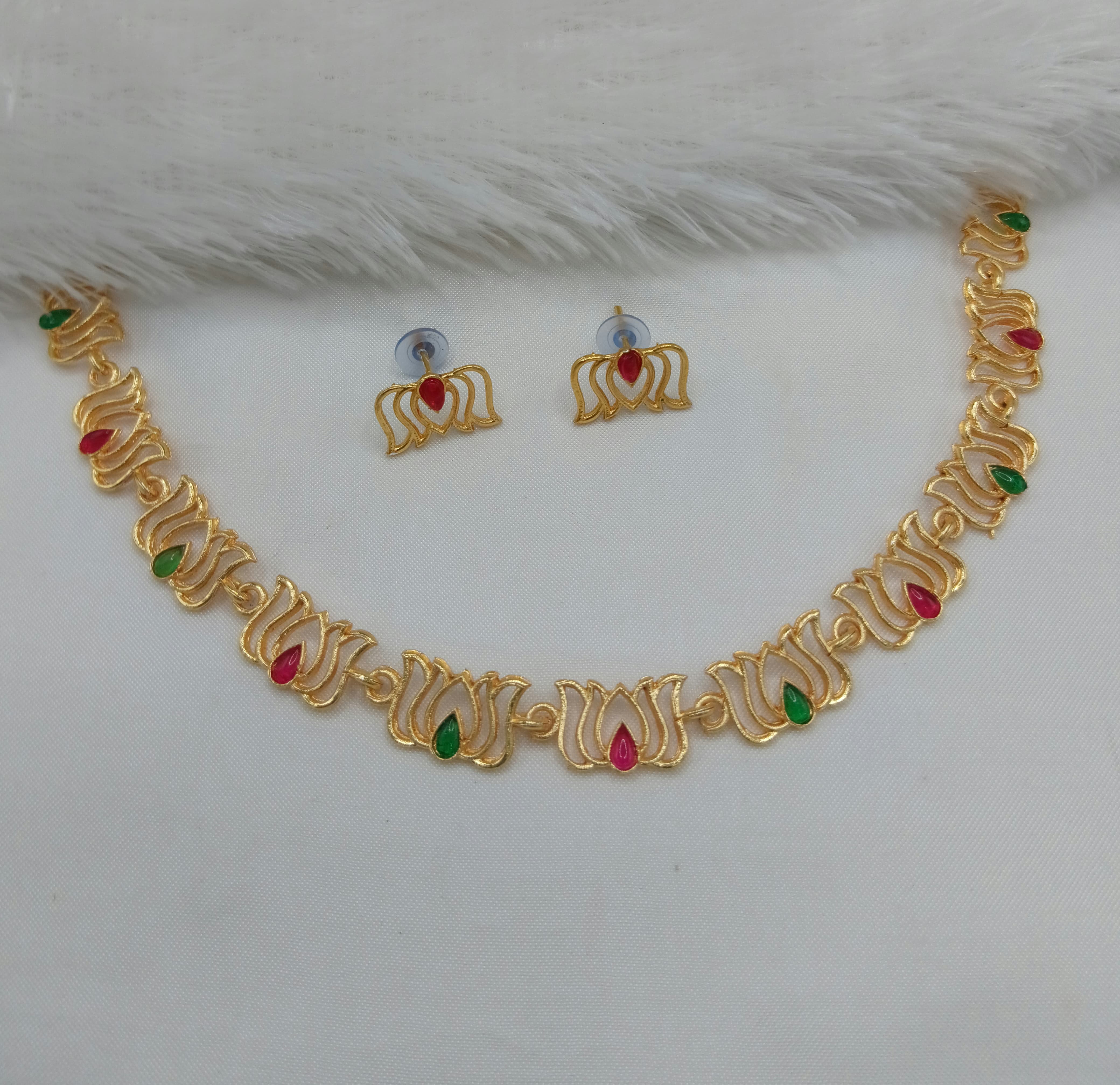 Elegant Traditional Copper Necklace Set with Red & Green Stones - Lucentemarket