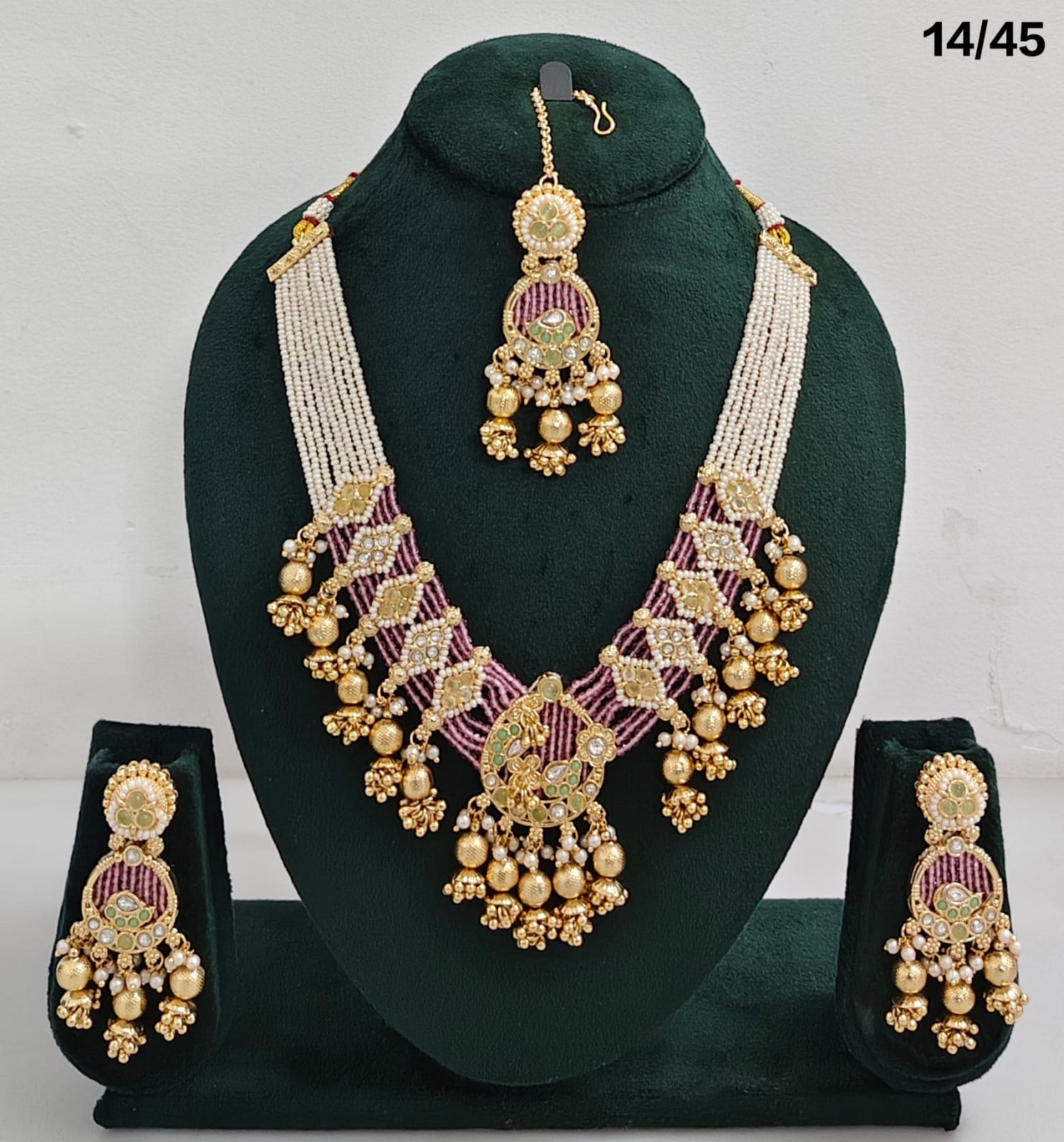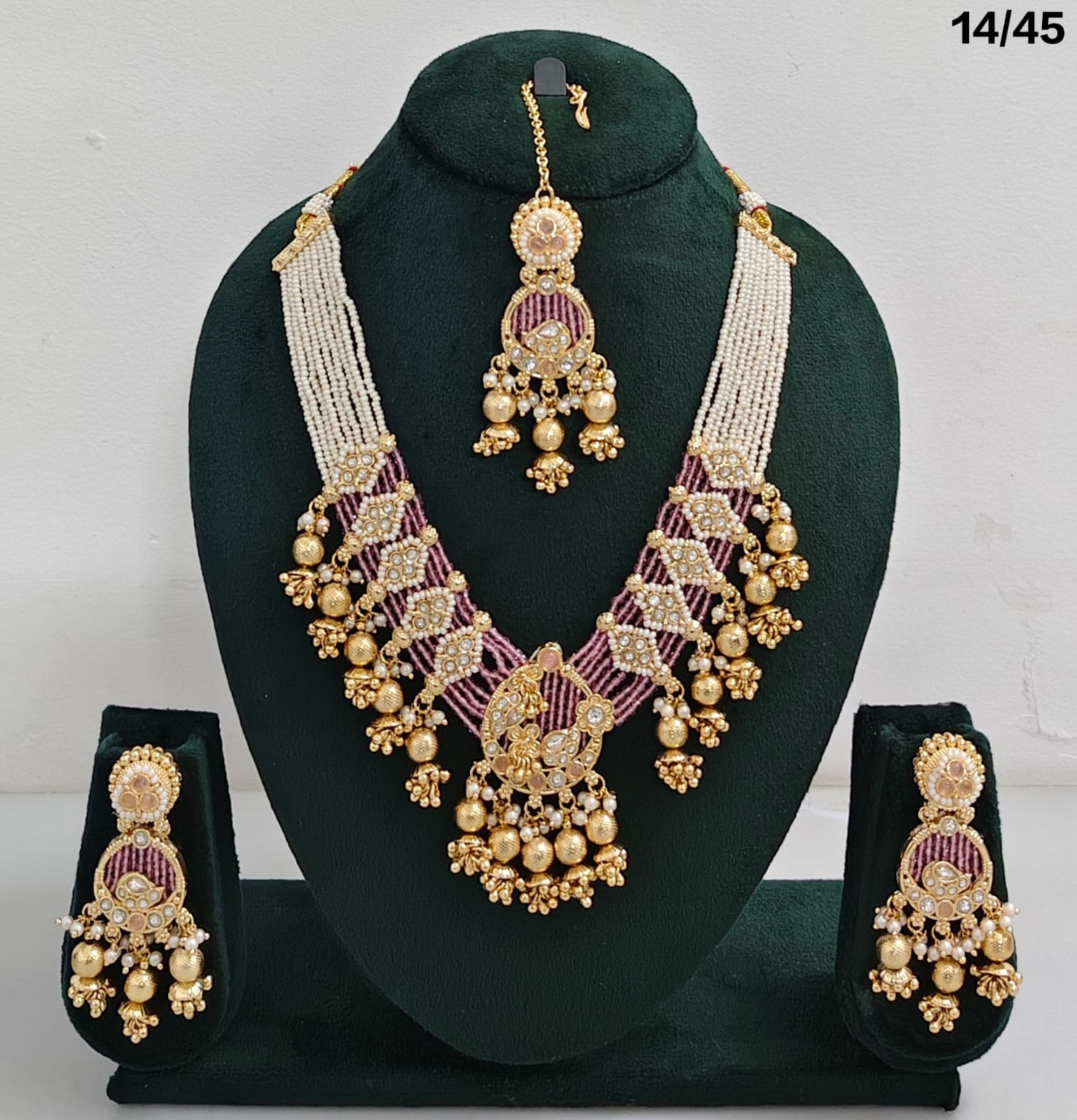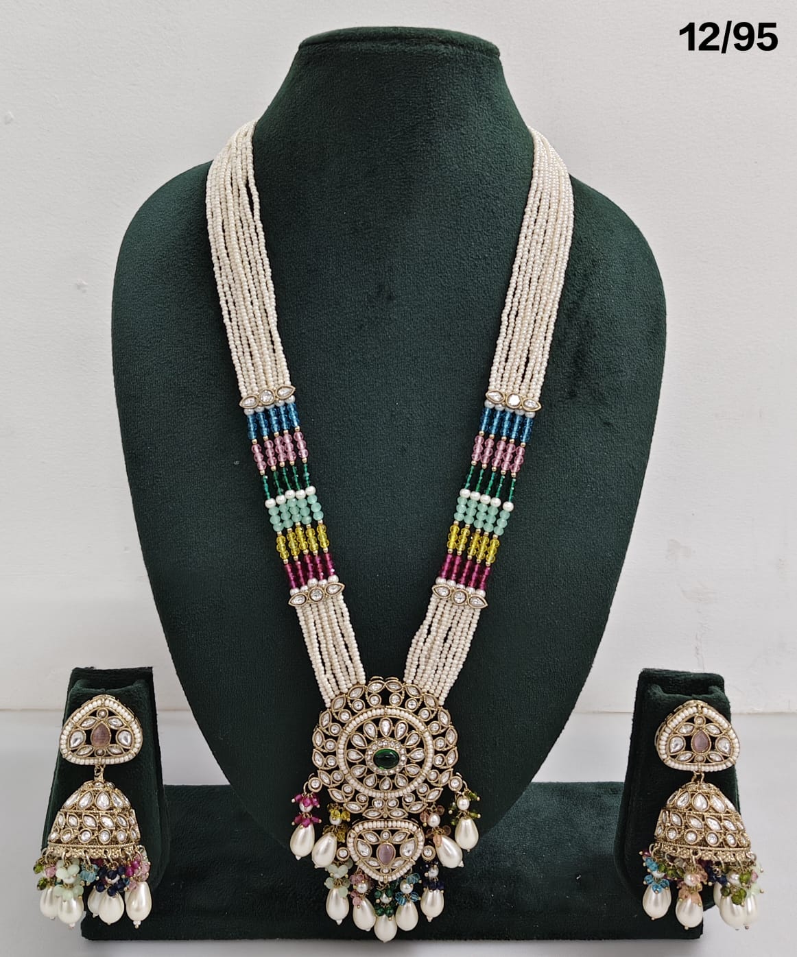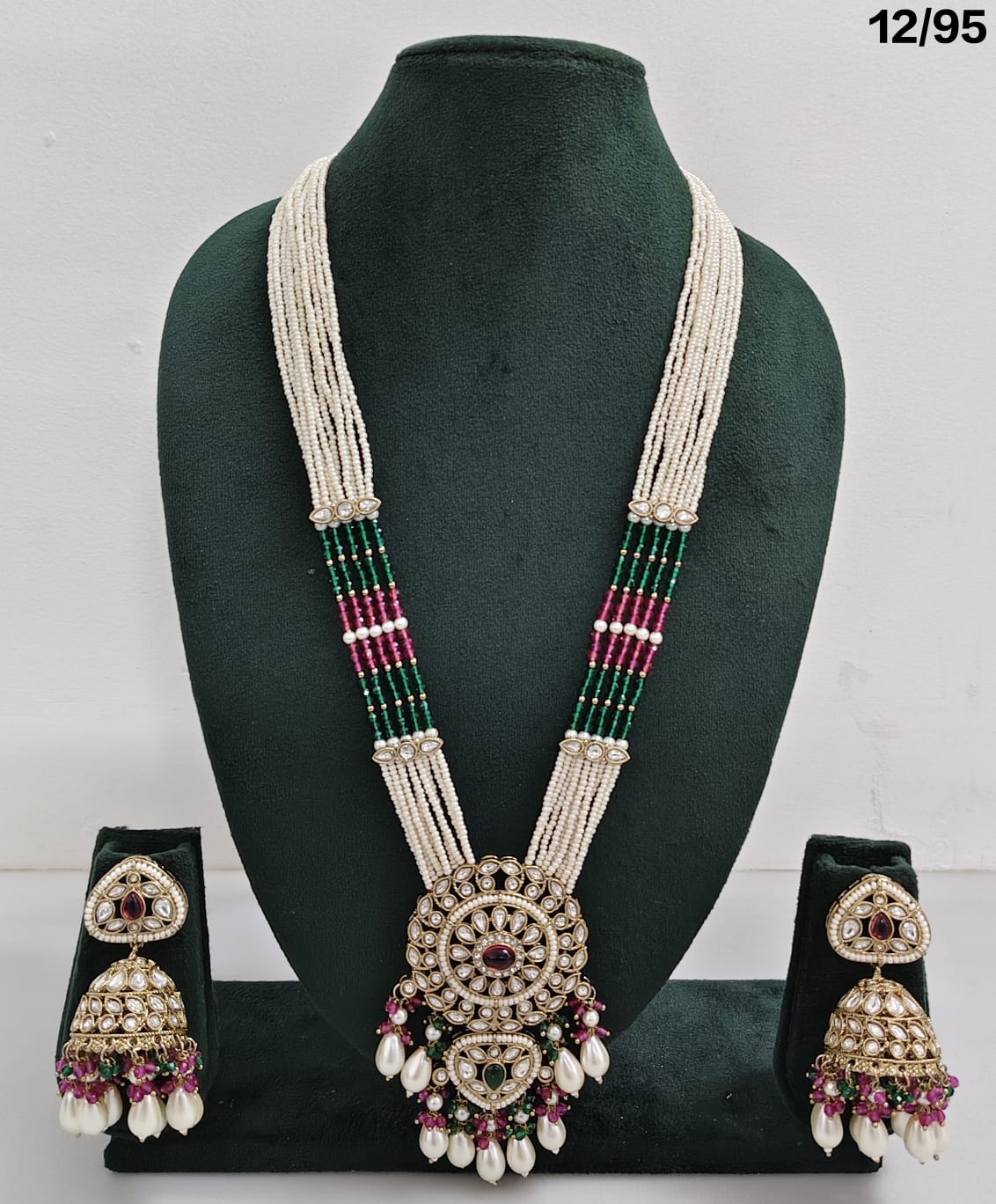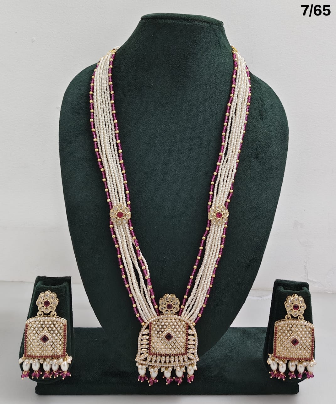 Enhance your bridal or festive look with this exquisite multi-strand beaded necklace set, featuring a stunning combination of beads, lustrous pearls, and sparkling CZ stones. The...