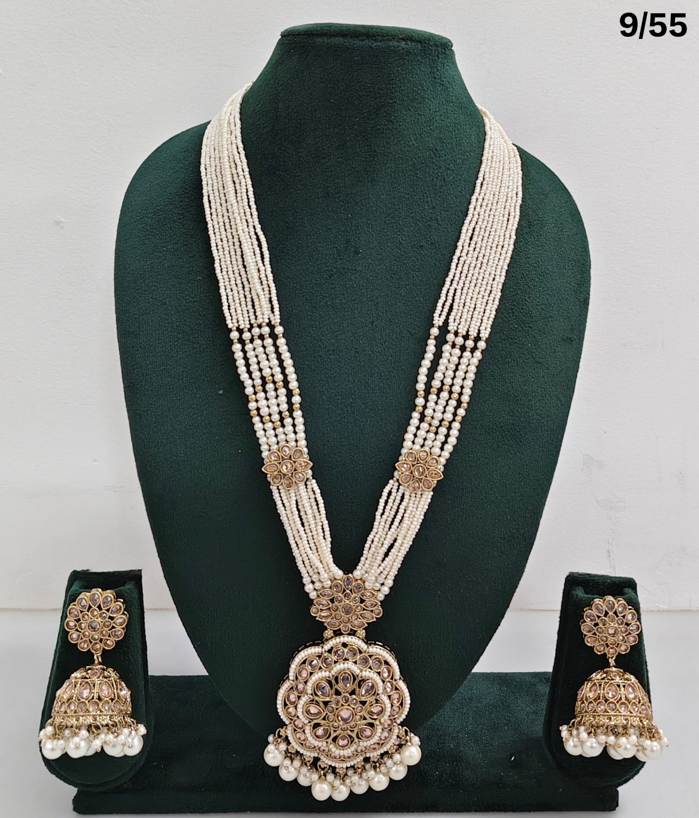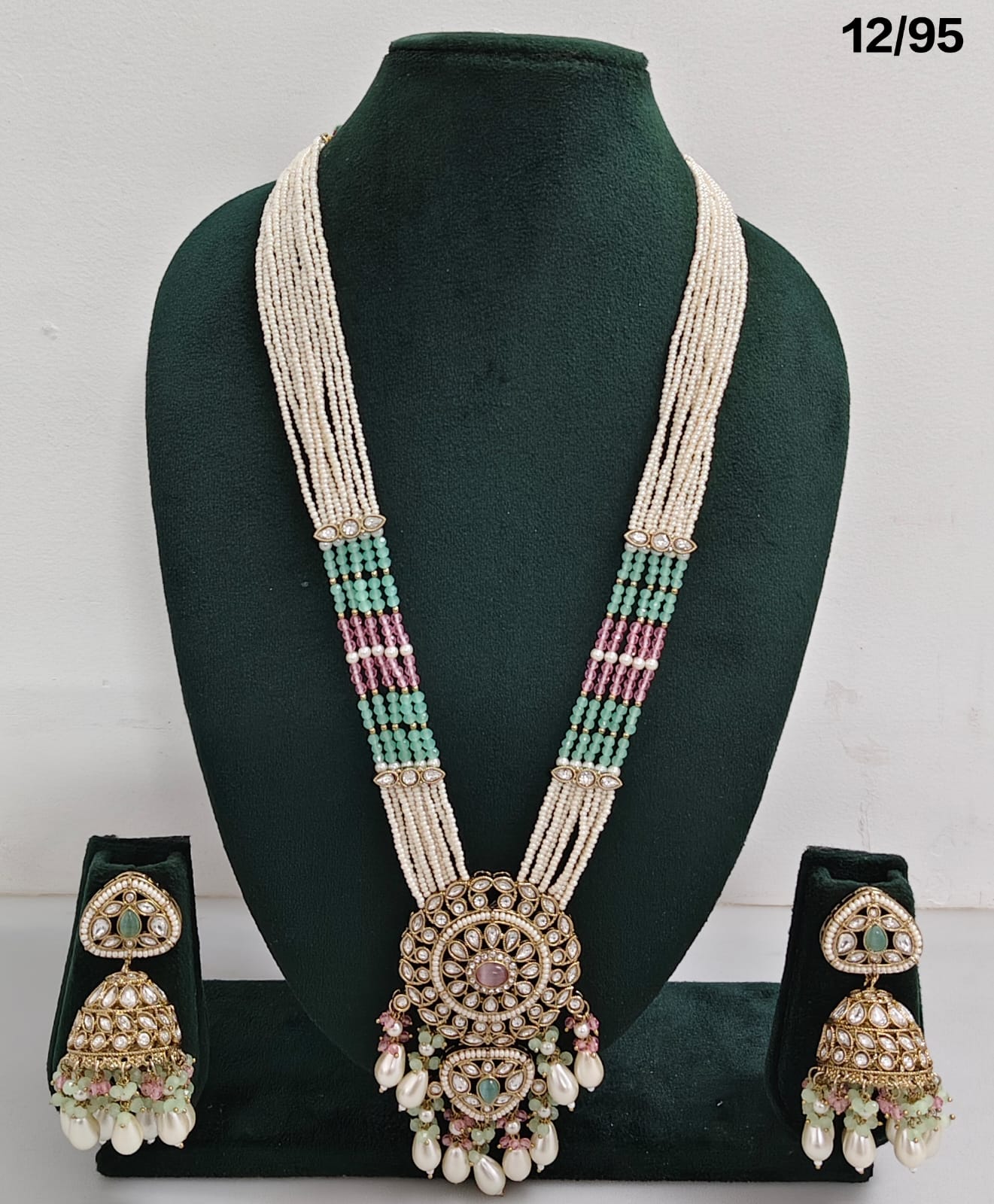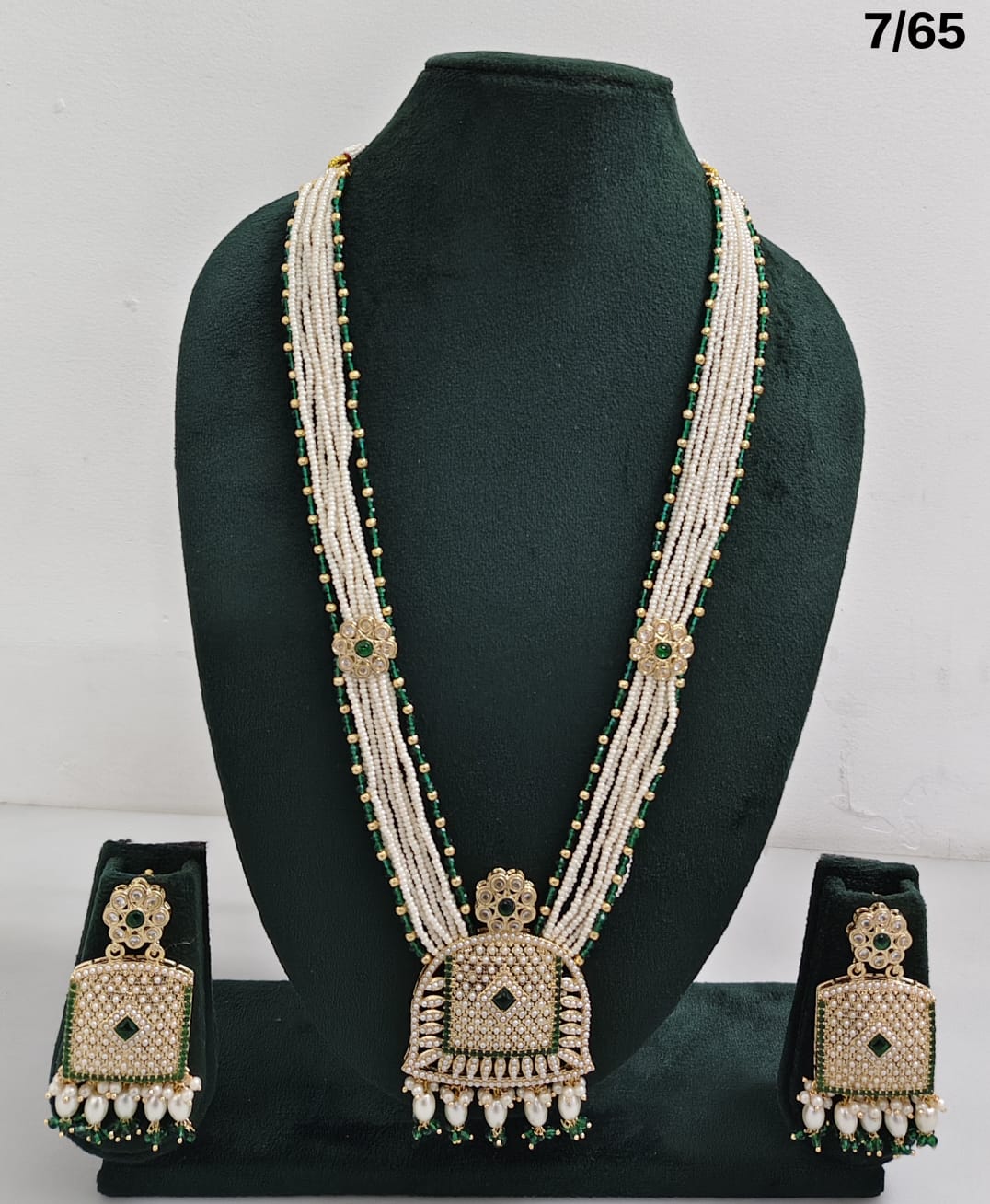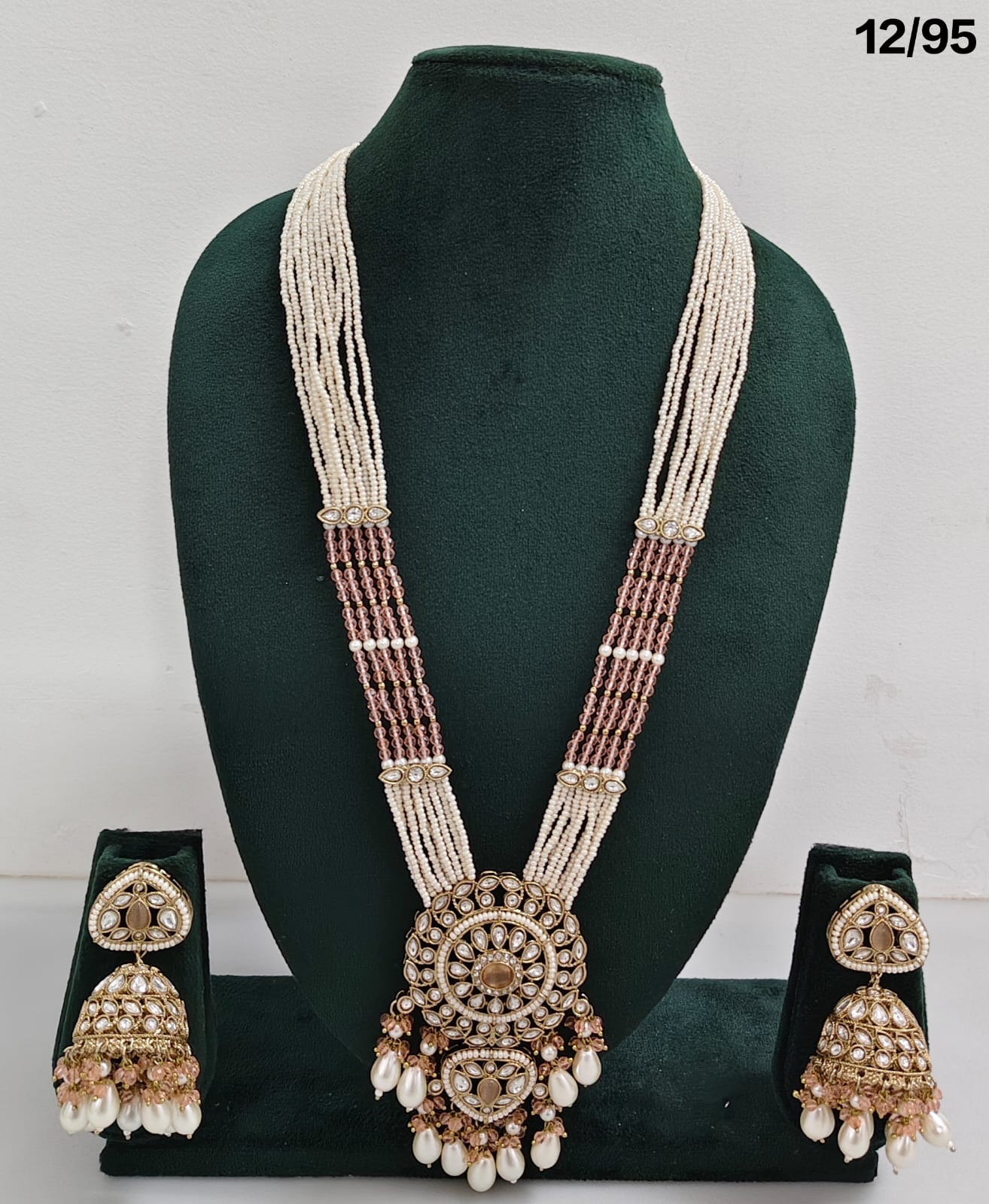 Enhance your bridal or festive look with this exquisite multi-strand beaded necklace set, featuring a stunning combination of beads, lustrous pearls, and sparkling CZ stones. The...