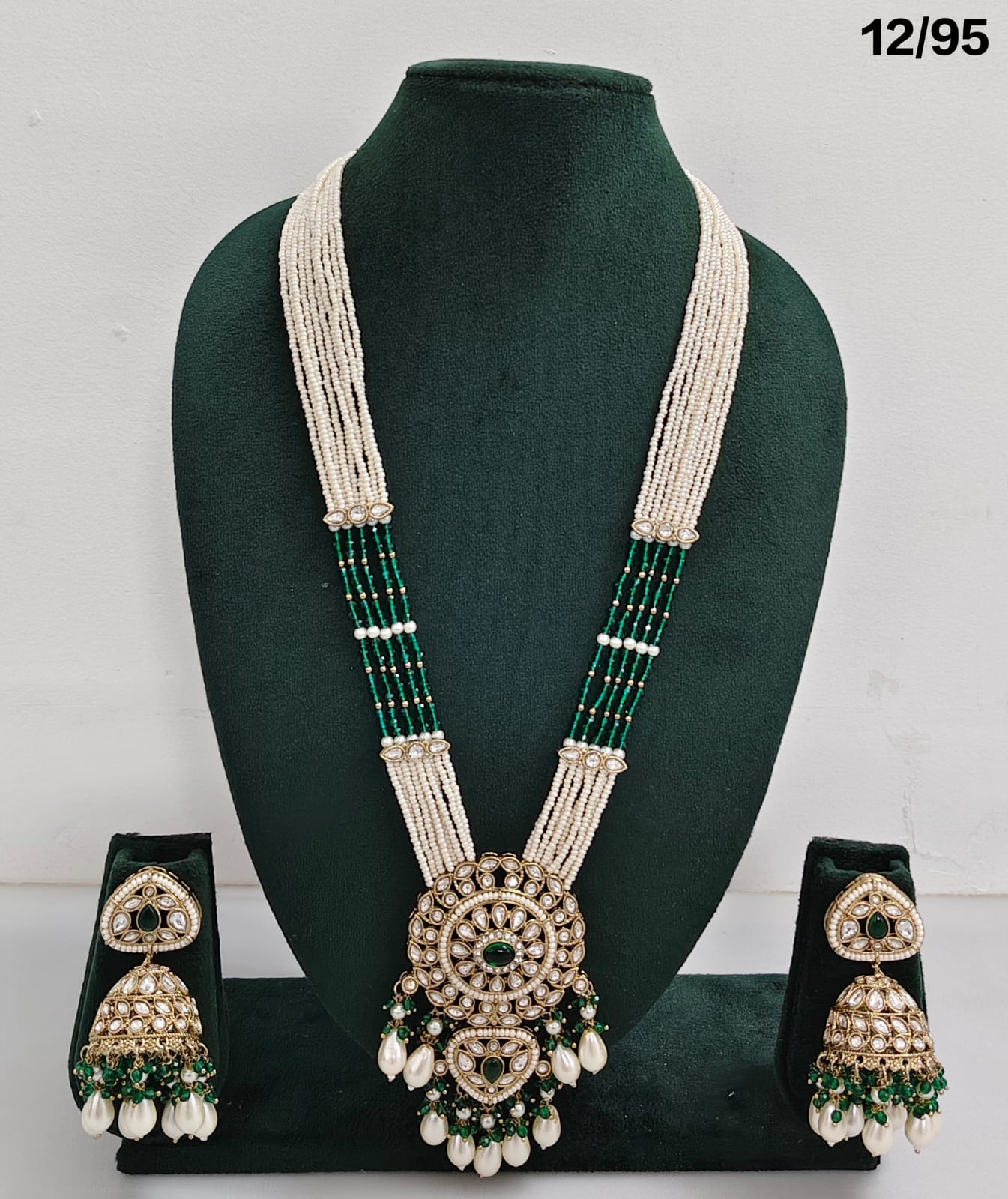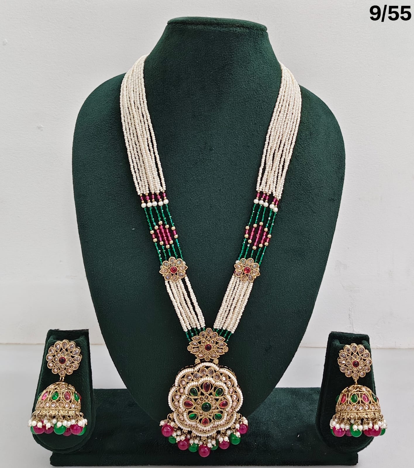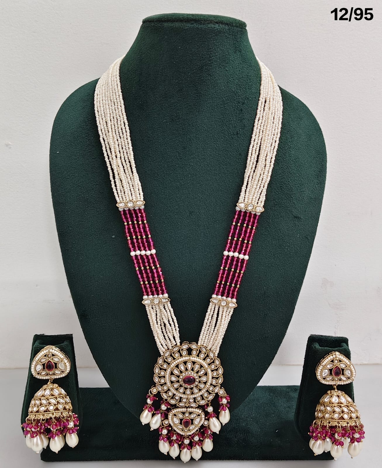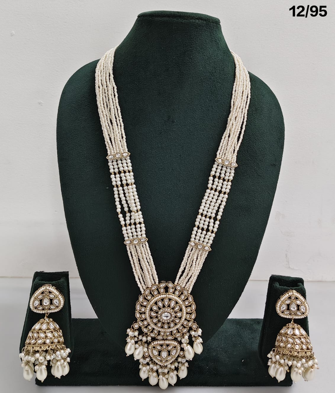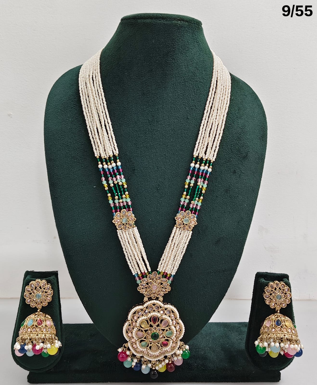 Enhance your bridal or festive look with this exquisite multi-strand beaded necklace set, featuring a stunning combination of beads, lustrous pearls, and sparkling CZ stones. The...