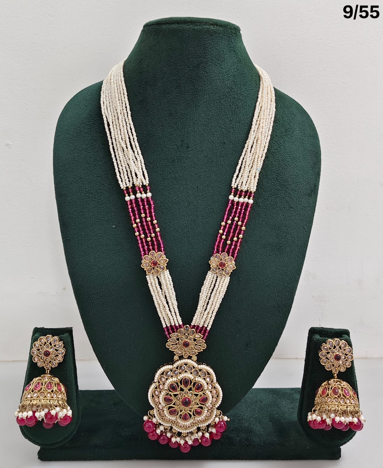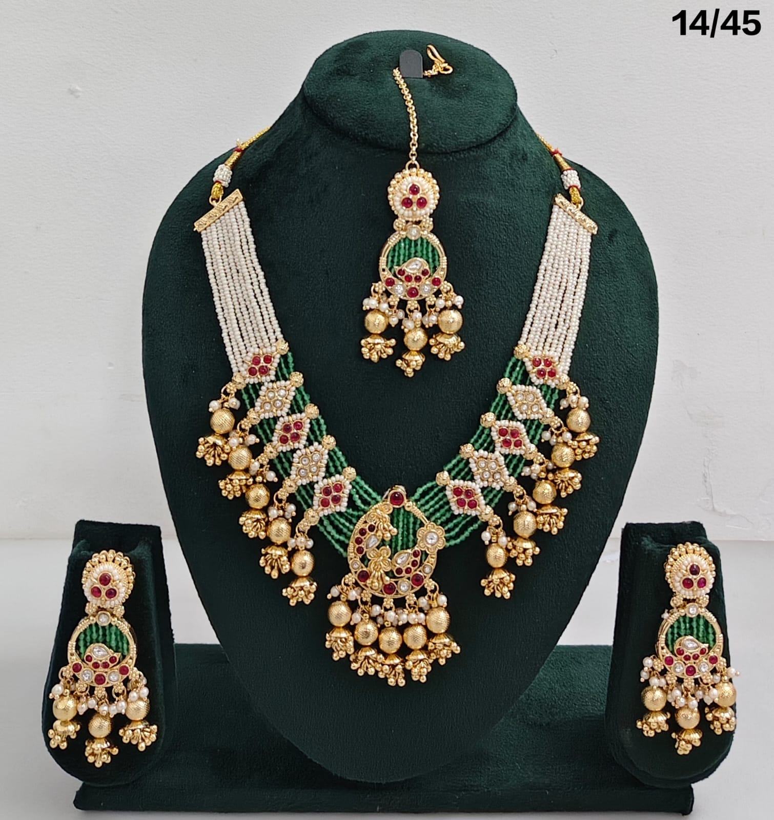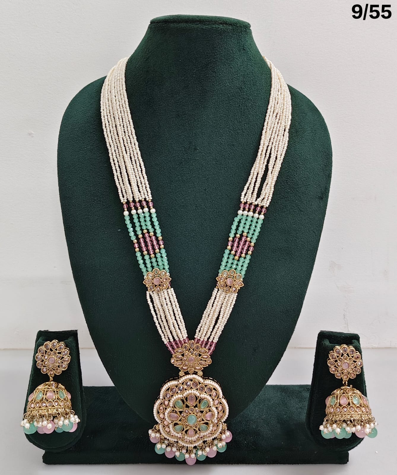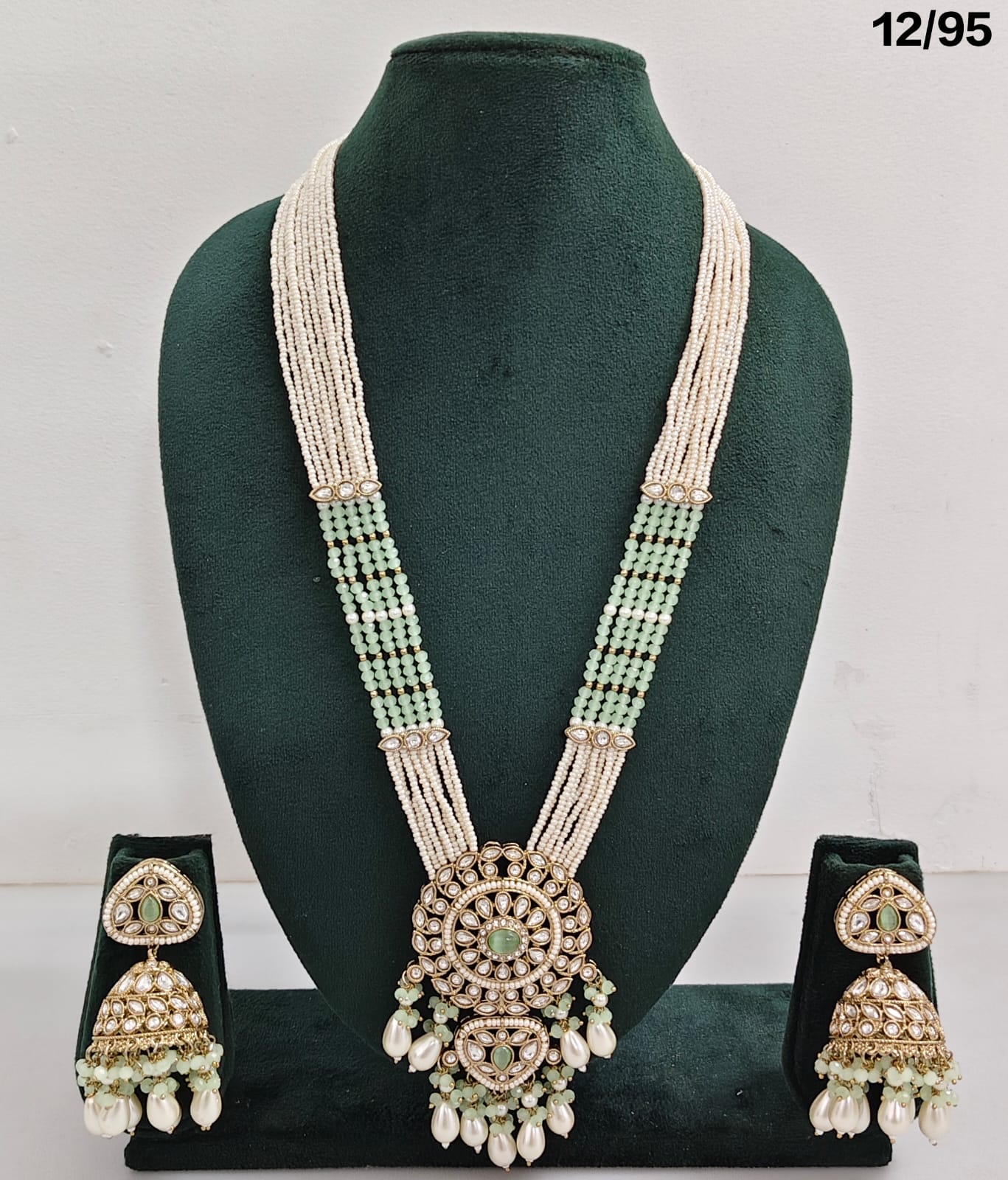 Enhance your bridal or festive look with this exquisite multi-strand beaded necklace set, featuring a stunning combination of beads, lustrous pearls, and sparkling CZ stones. The...