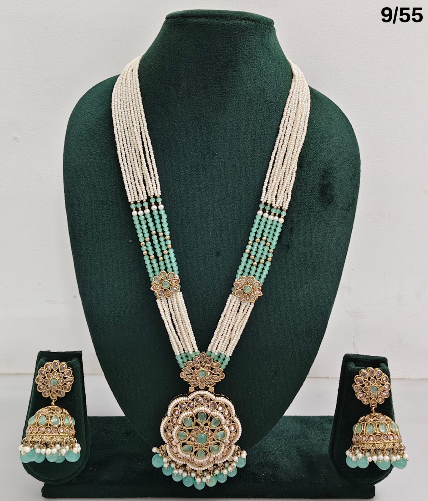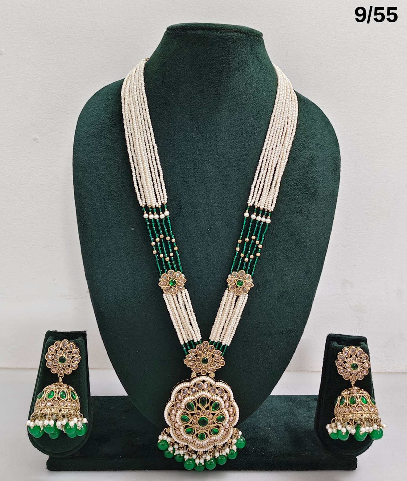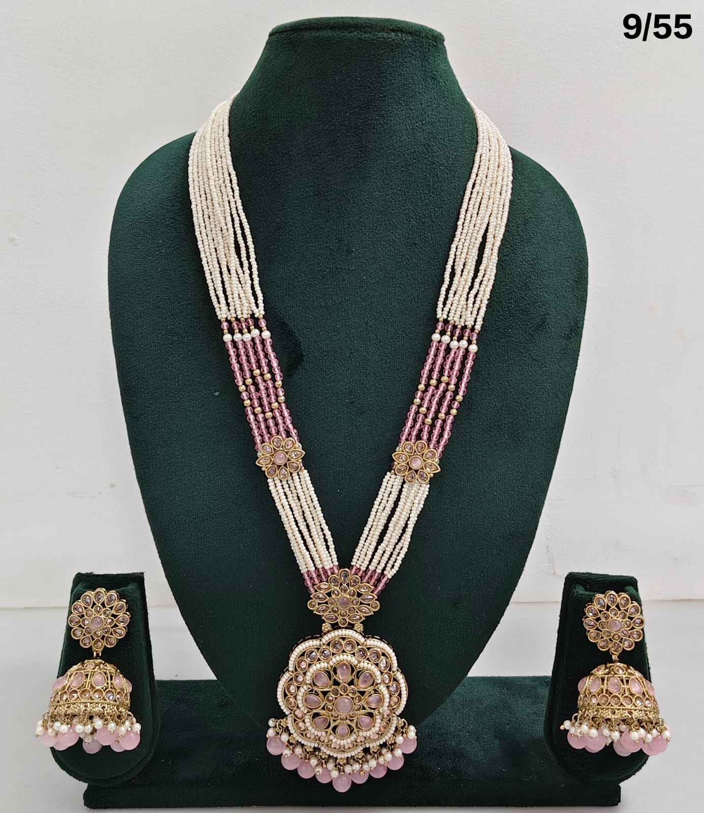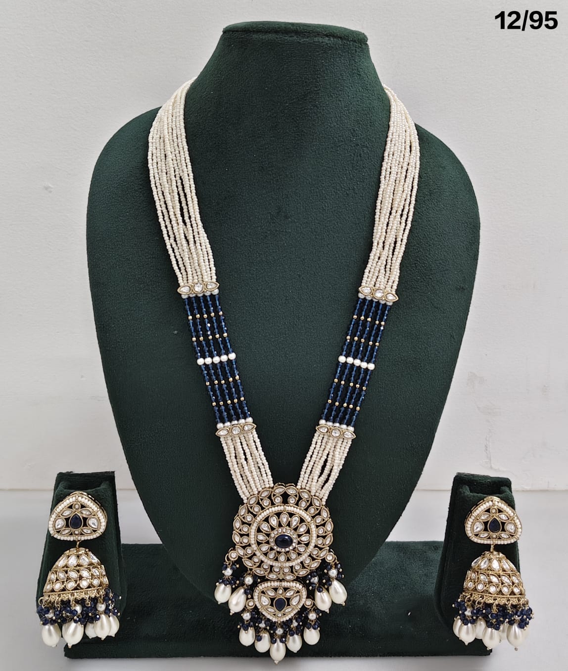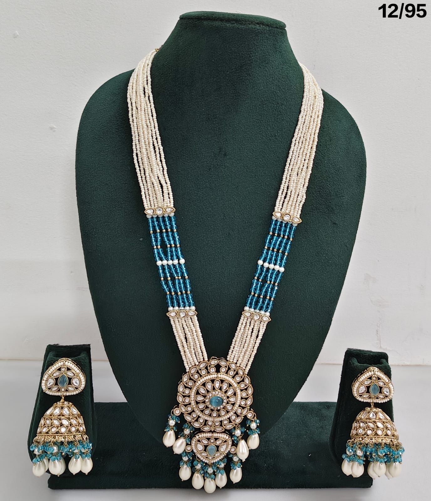 Enhance your bridal or festive look with this exquisite multi-strand beaded necklace set, featuring a stunning combination of beads, lustrous pearls, and sparkling CZ stones. The...