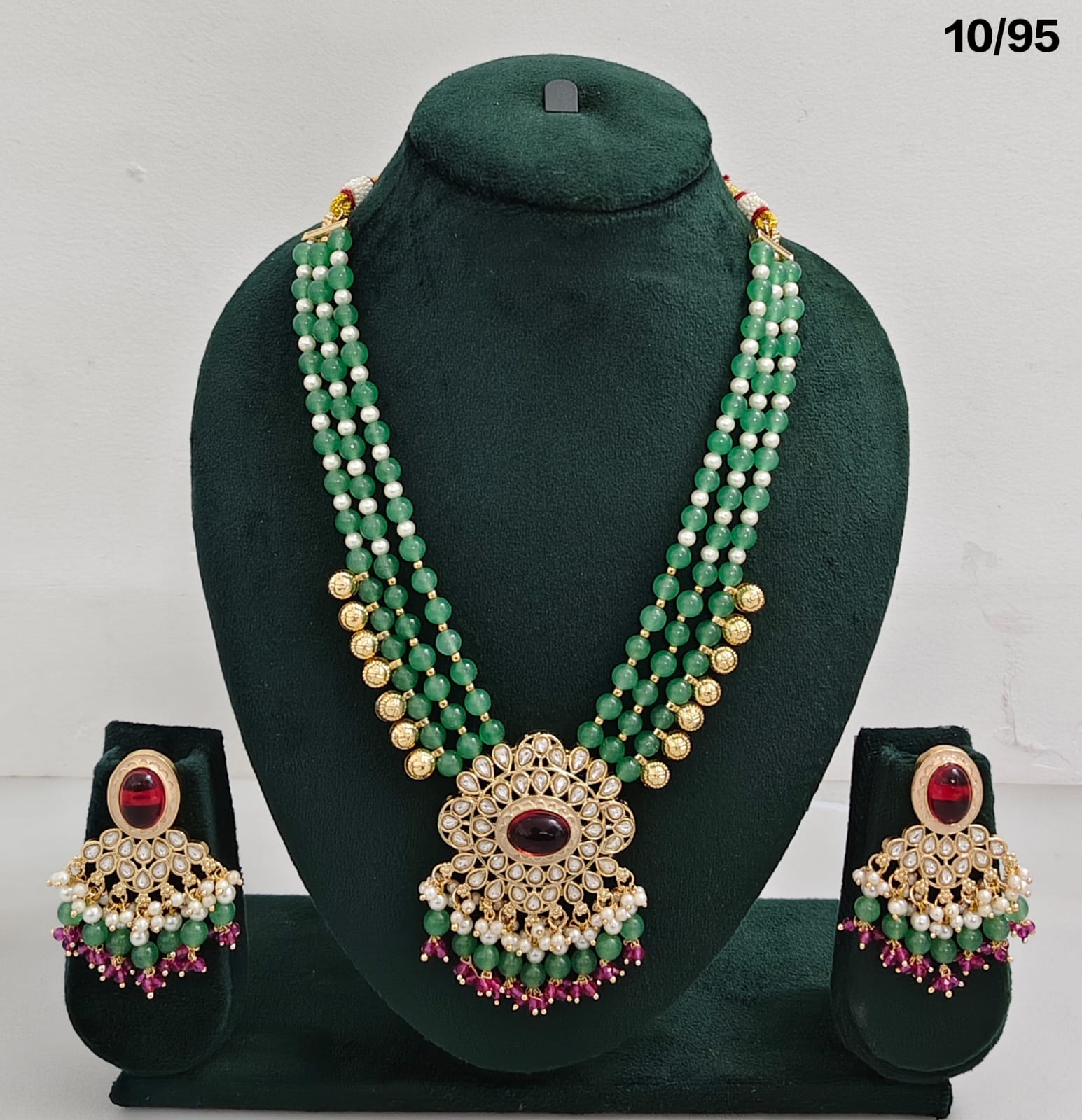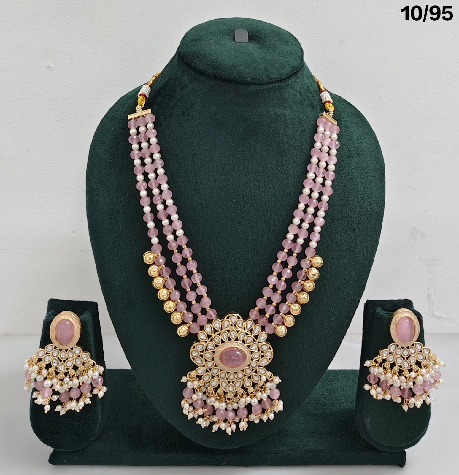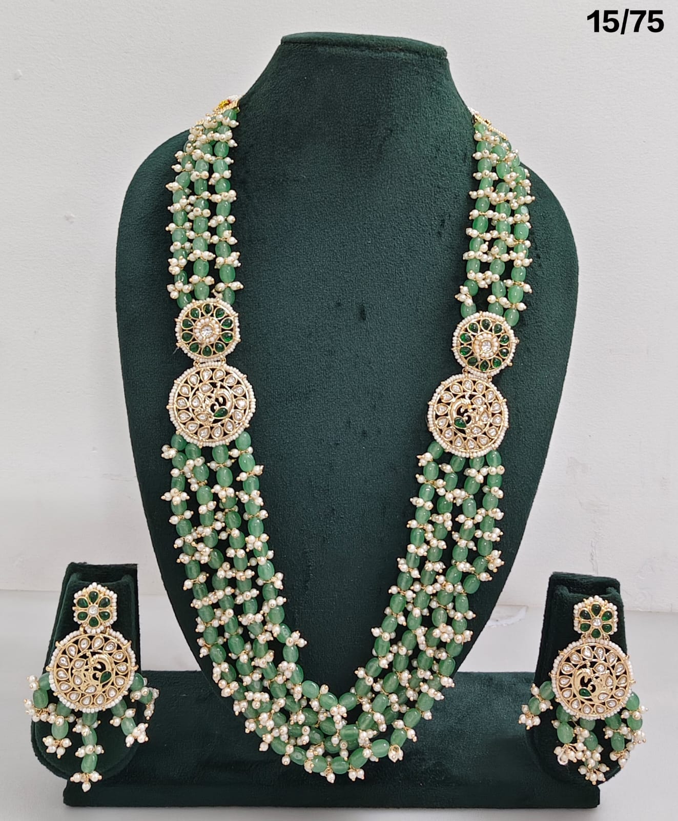 Multi-Layer Beaded Necklace Set with CZ Round Pendants and Matching Earrings – Bridal & Ethnic Jewellery