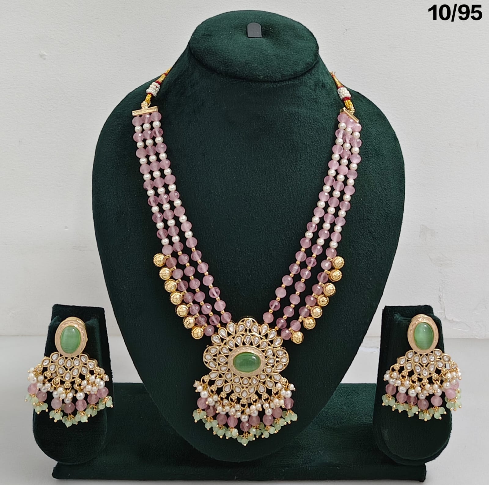 Kundan Polki Beaded Necklace Set with Drop Earrings – Bridal & Party Wear Jewellery