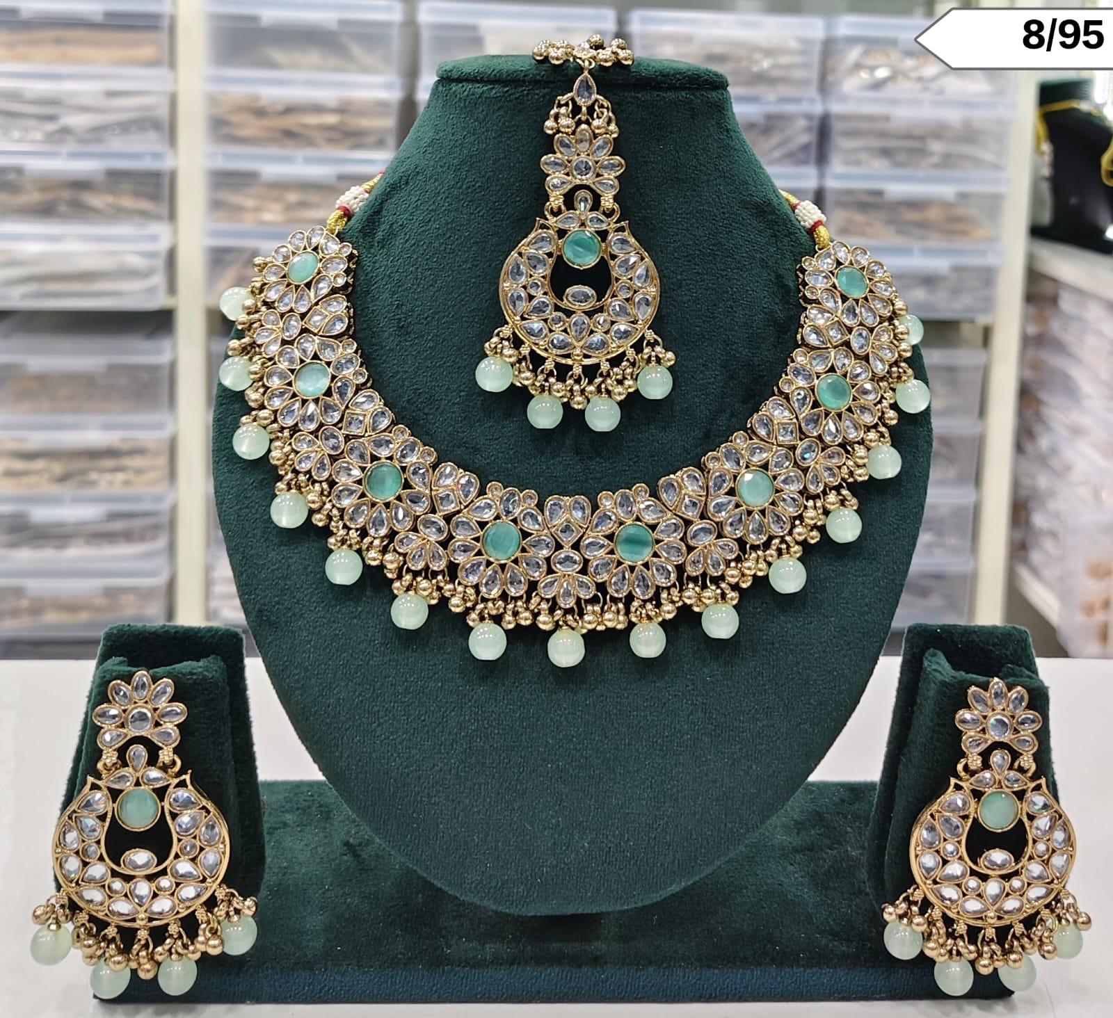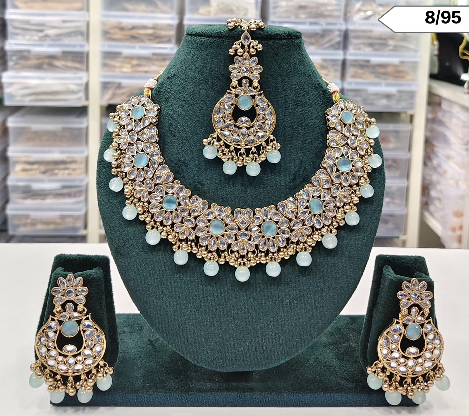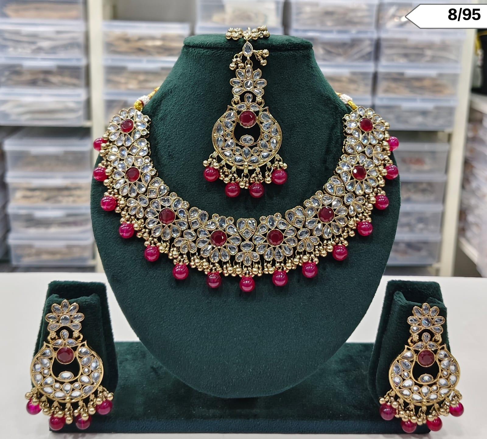 Kundan Stone Choker Necklace Set with Matching Earrings and Maang Tikka – Bridal & Ethnic Jewellery