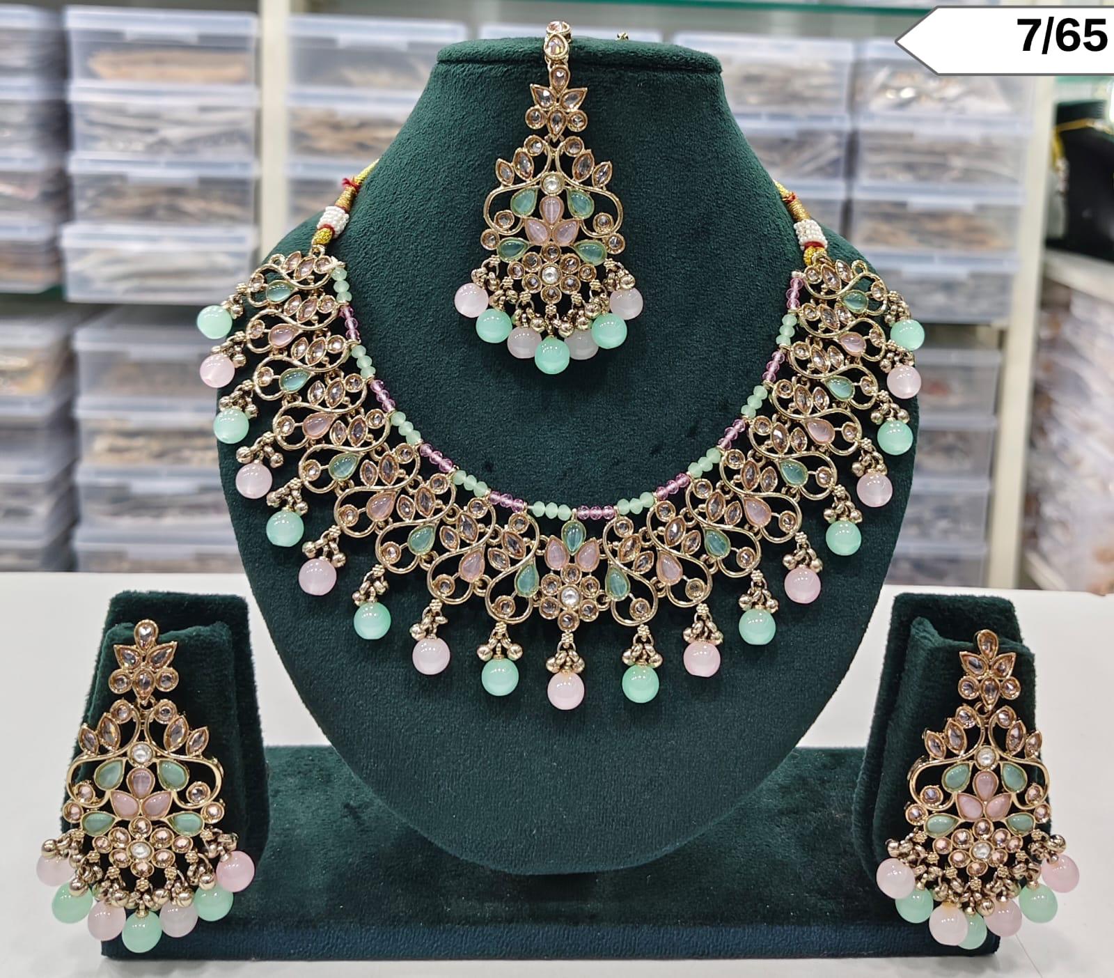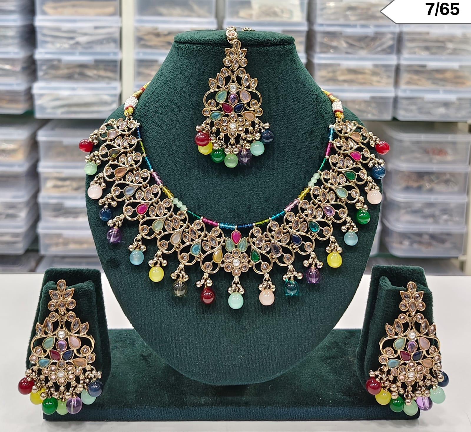 CZ Stone Floral Choker Necklace Set with Matching Earrings and Maang Tikka – Lucentemarket