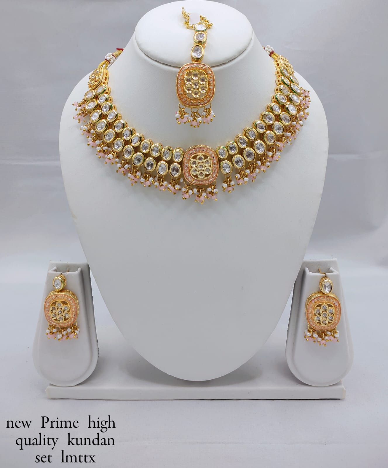 This Prime quality copper Polki necklace set showcases a stunning blend of traditional craftsmanship and elegant detailing. Adorned with intricately designed floral motifs, sparkling CZ stones,...