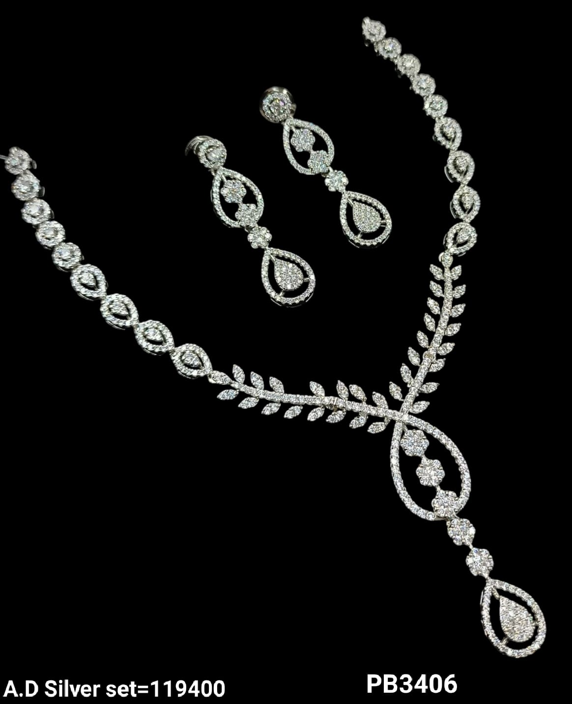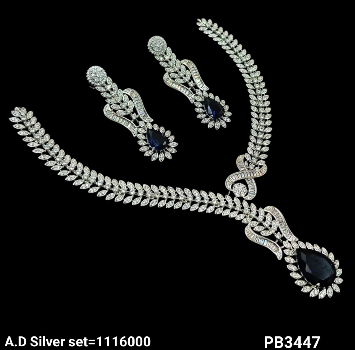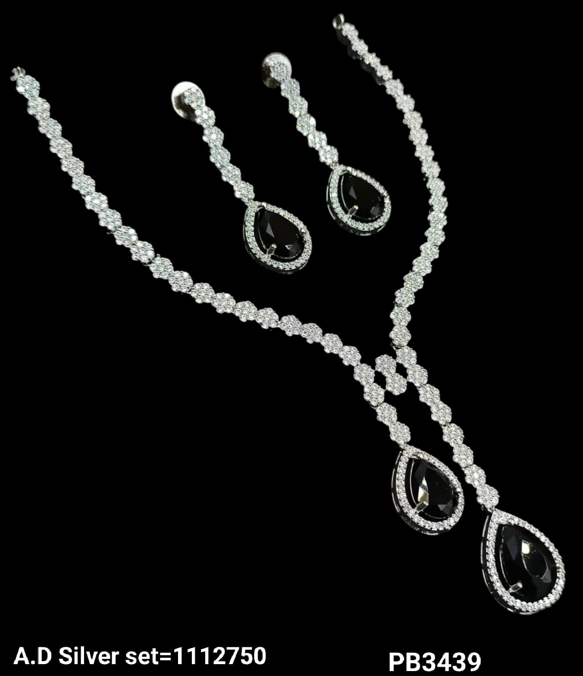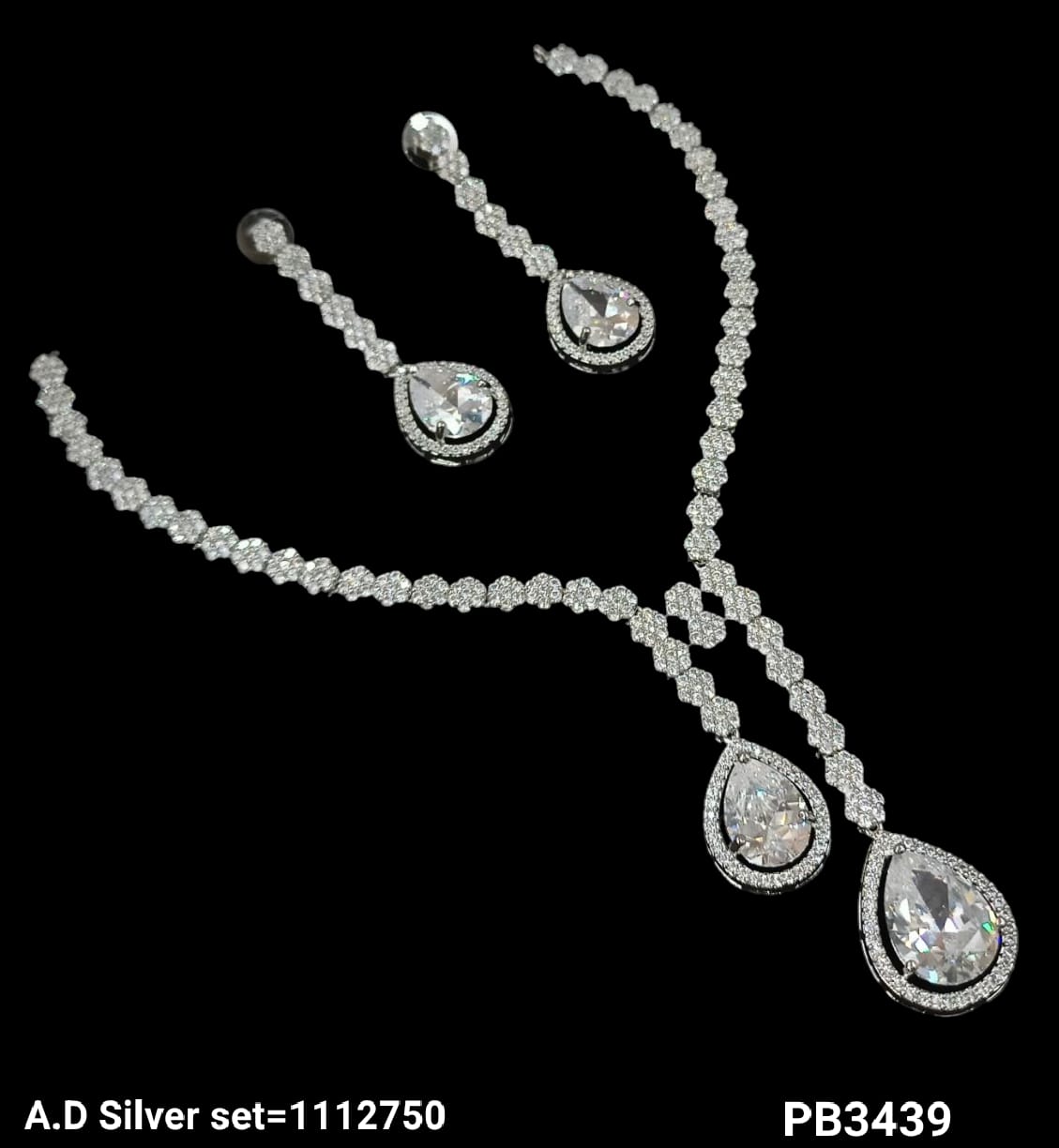 This necklace set features American diamonds elegantly set on a silver-plated base, combining timeless sparkle with refined craftsmanship. It Has A Pack Of :-Original Ad Necklace...