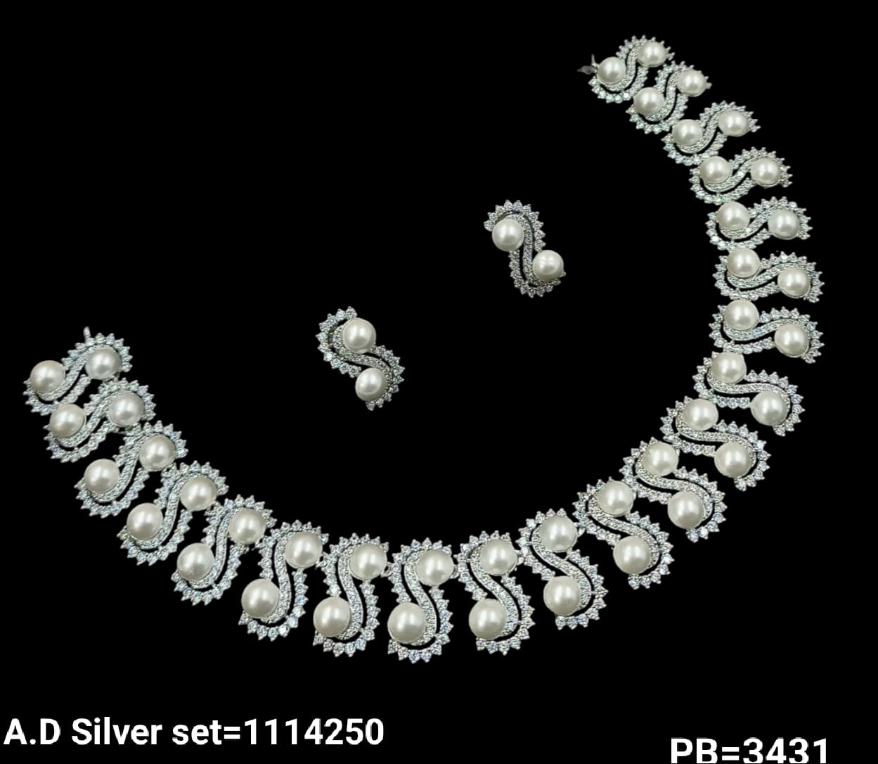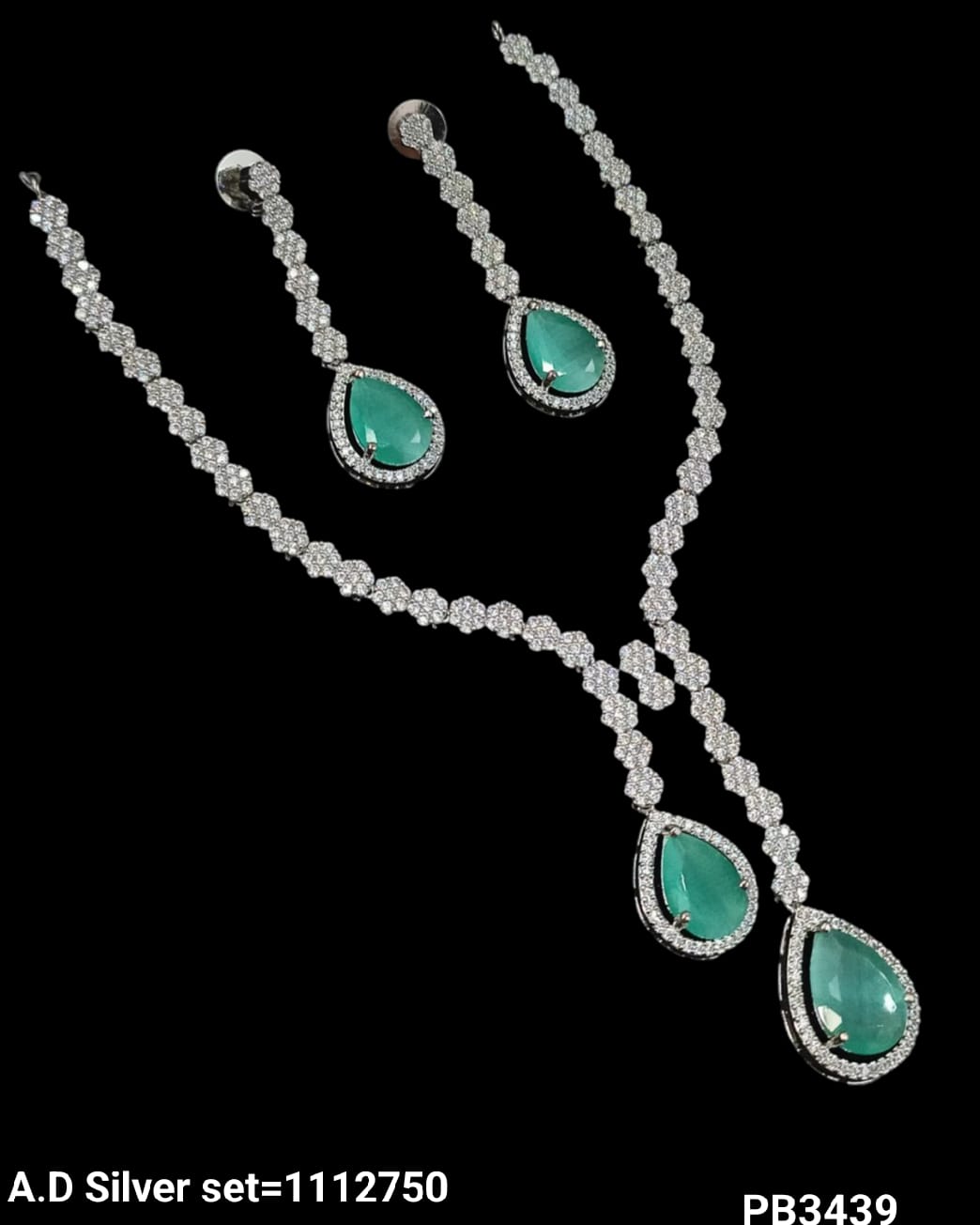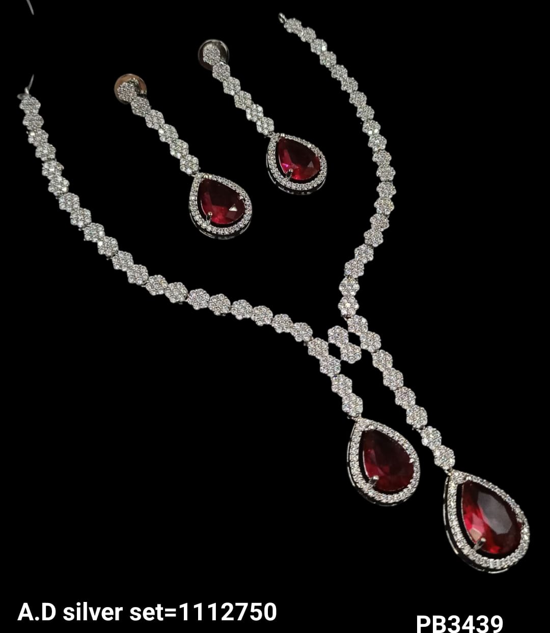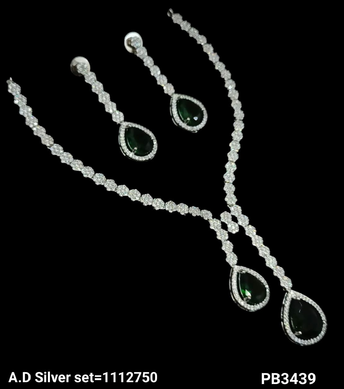 This necklace set features American diamonds elegantly set on a silver-plated base, combining timeless sparkle with refined craftsmanship. It Has A Pack Of :-Original Ad Necklace...