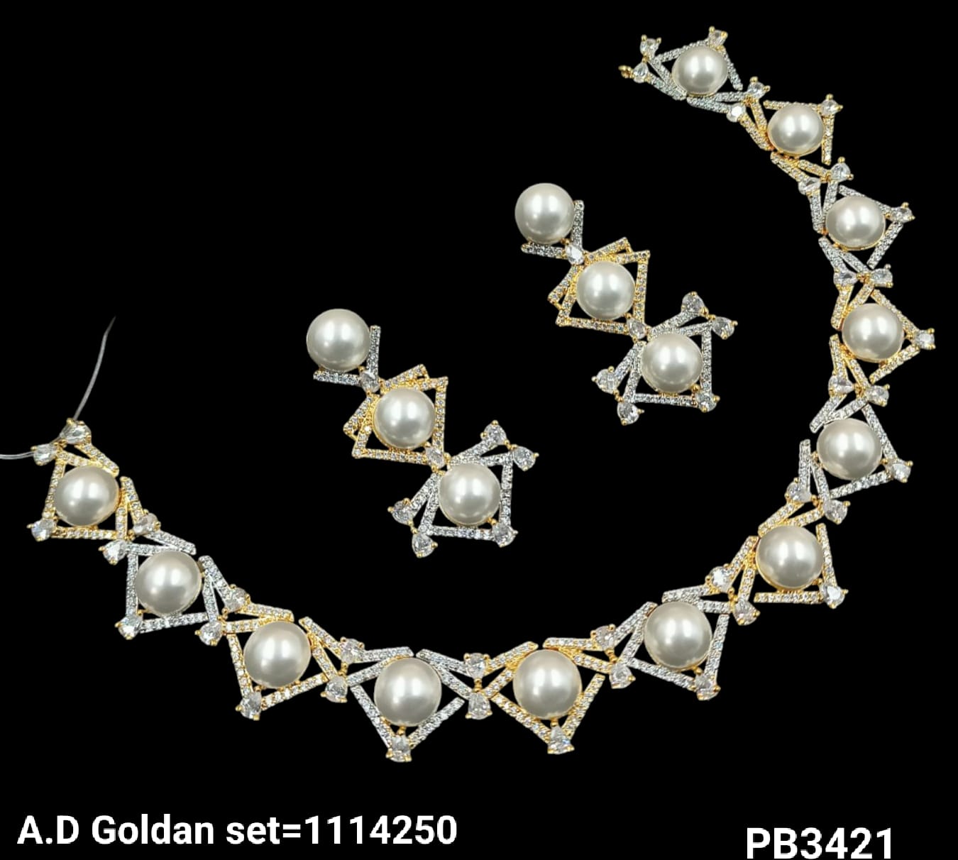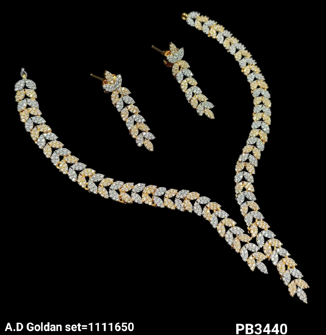 This necklace set features American diamonds with a silver base and gold plating, combining elegance and durability for a refined accessory choice. It Has A Pack...
