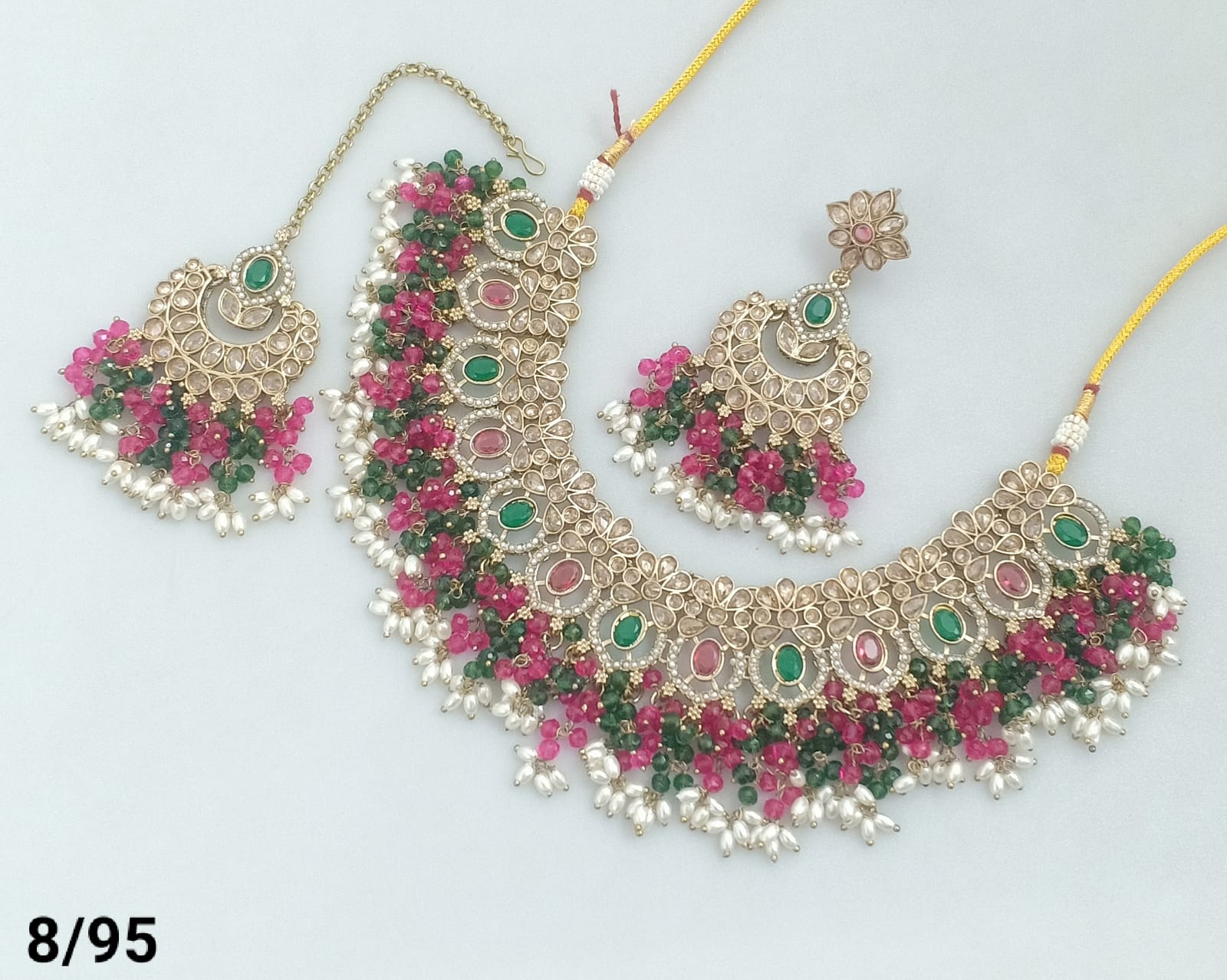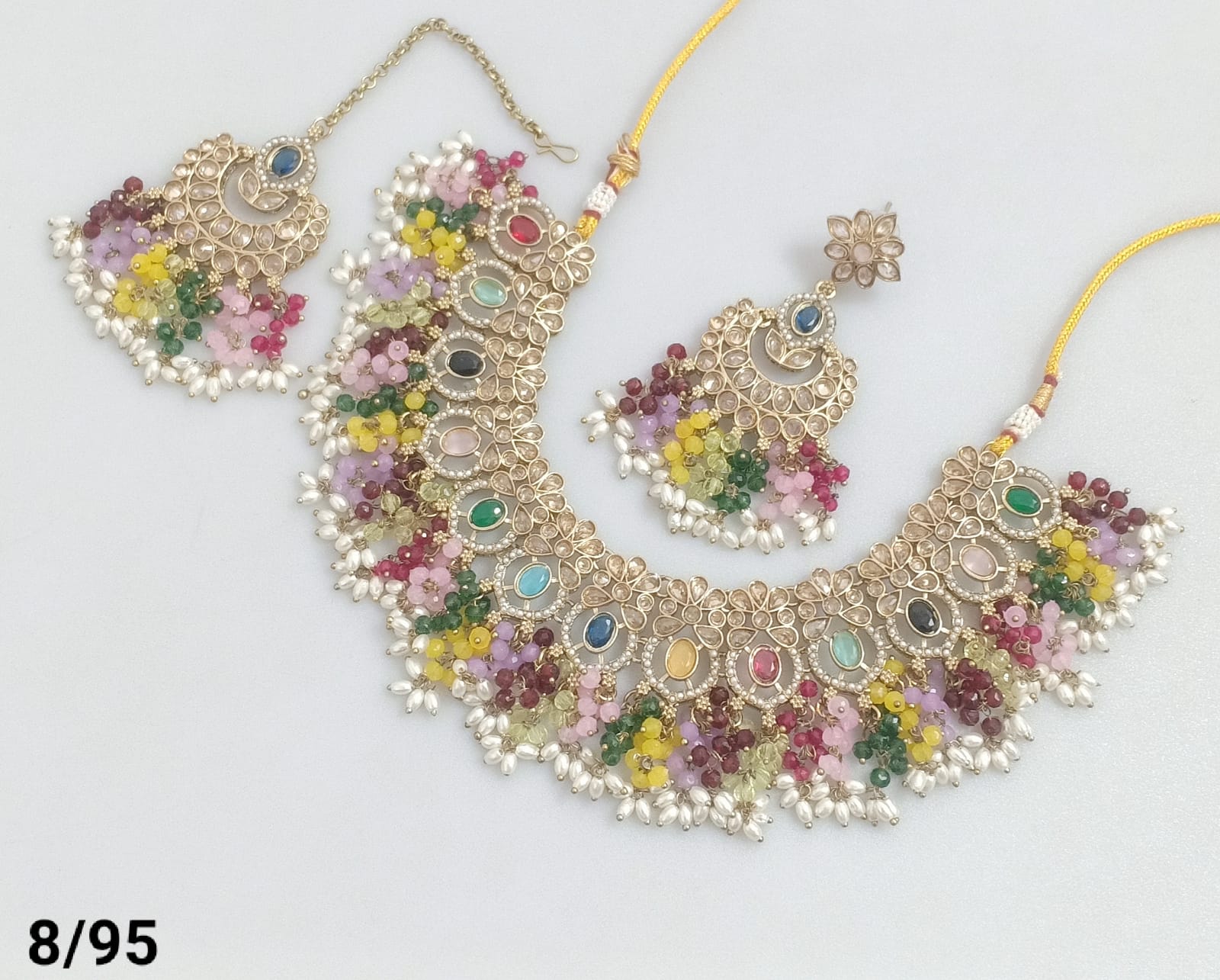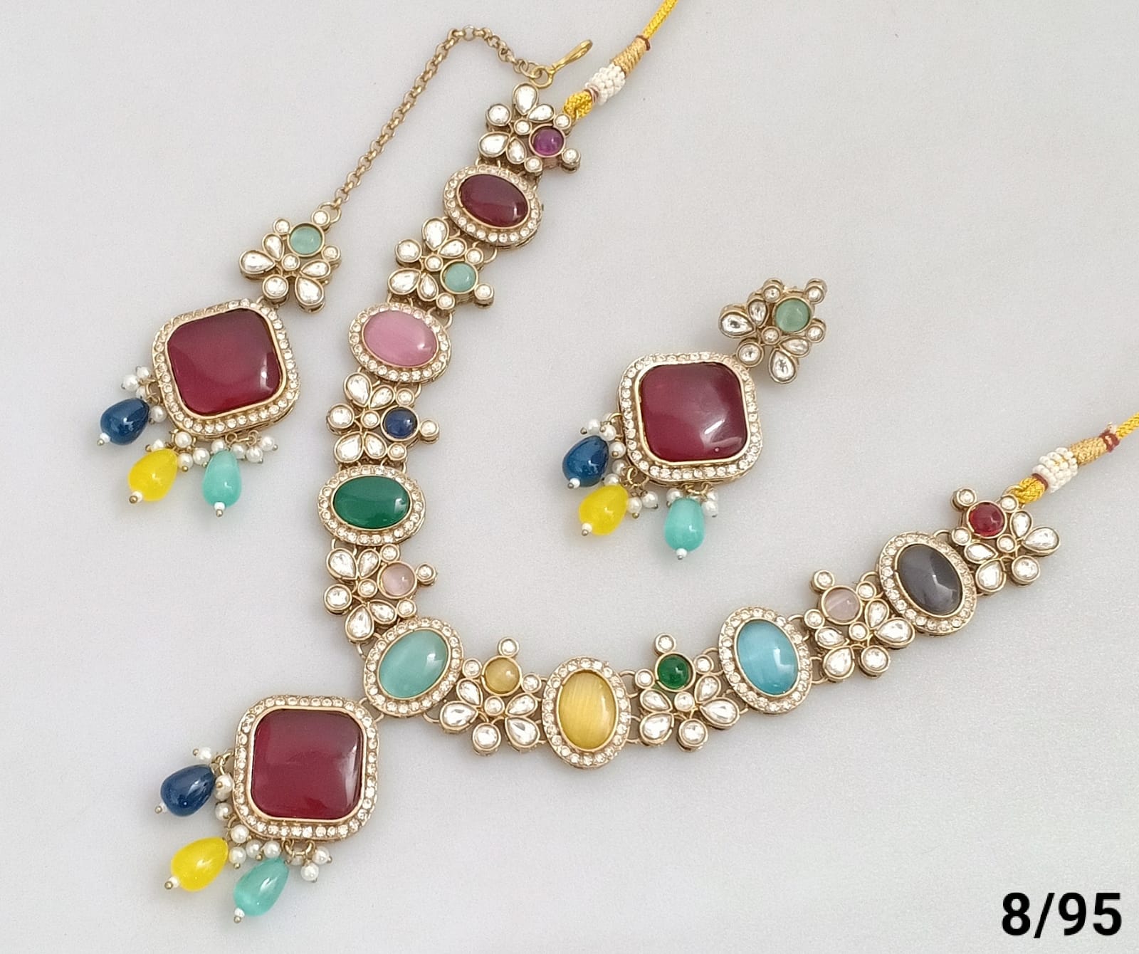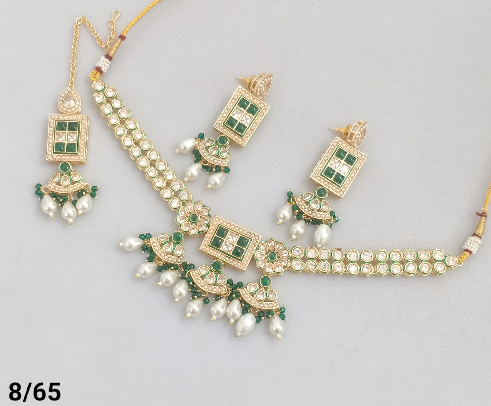 This exquisite choker set features a gold plating combined with traditional Kundan craftsmanship, offering a timeless and elegant accessory for special occasions. It Has A Pack...