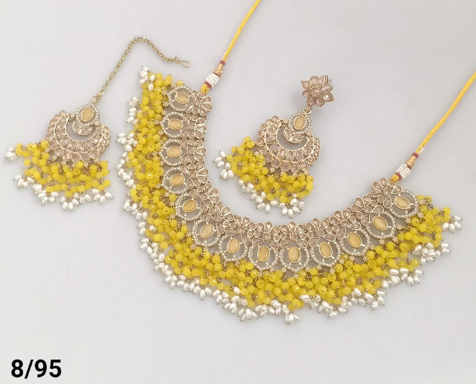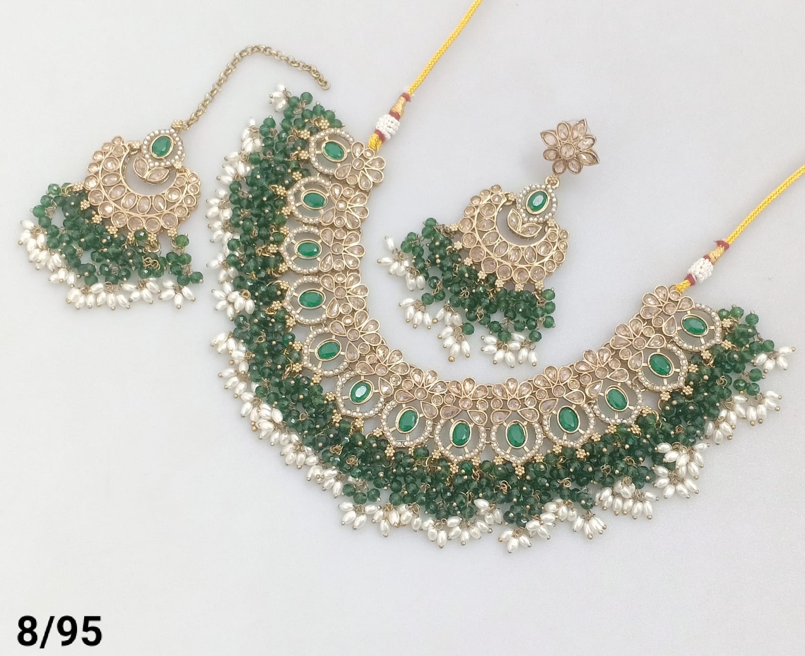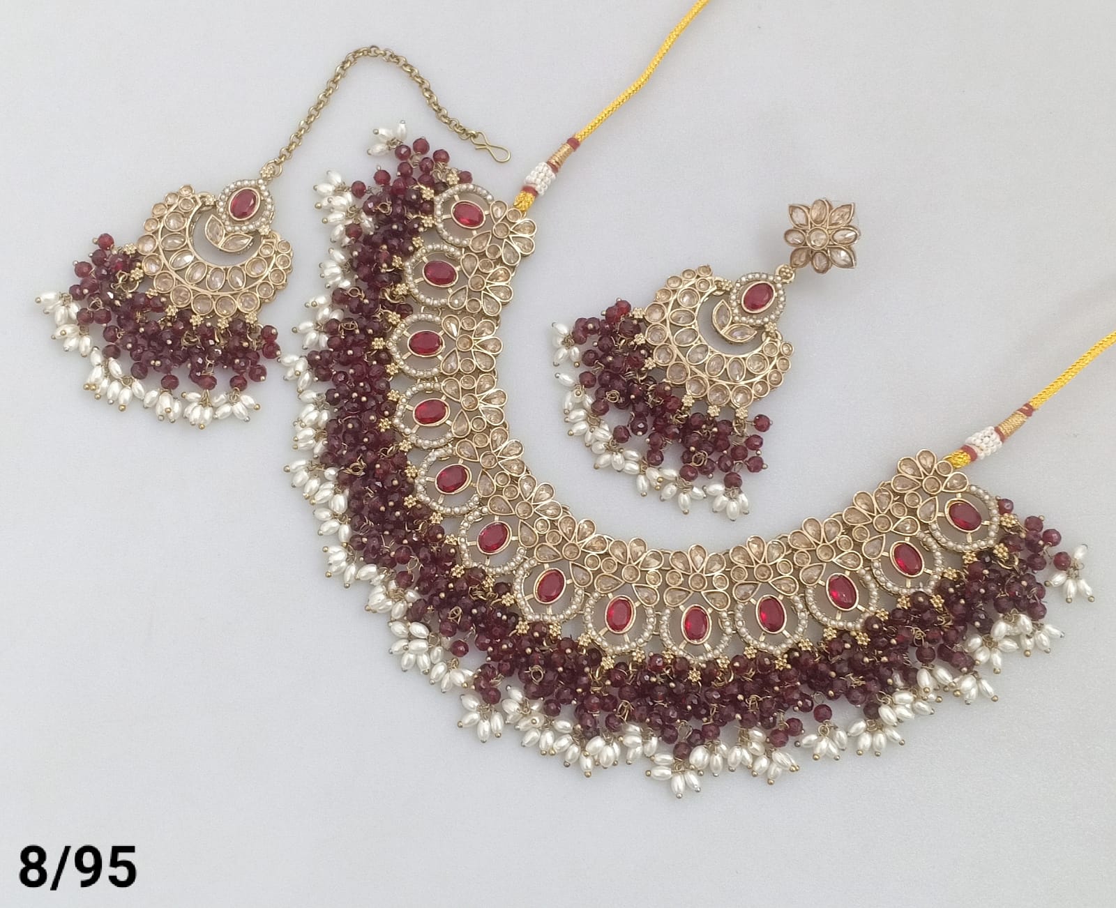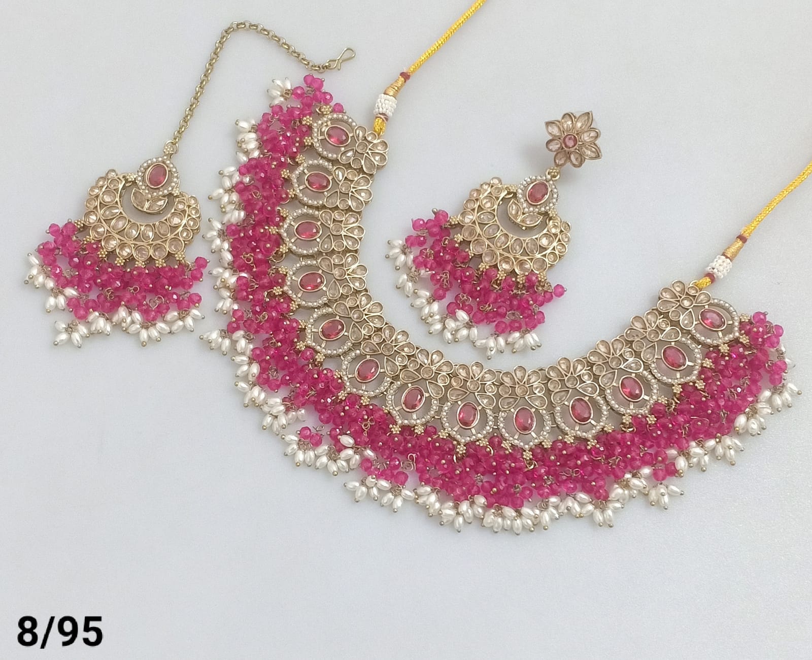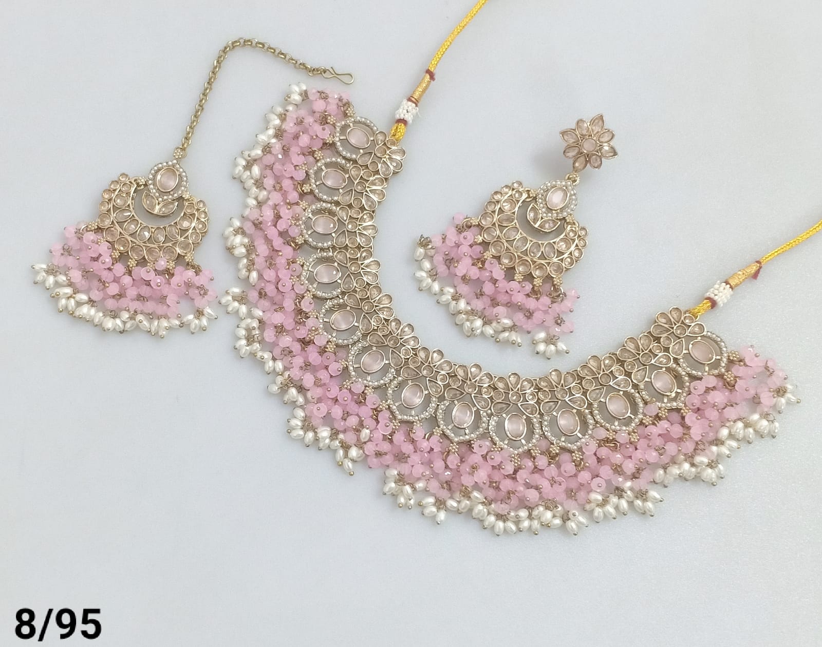 This exquisite choker set features a gold plating combined with traditional Kundan craftsmanship, offering a timeless and elegant accessory for special occasions. It Has A Pack...