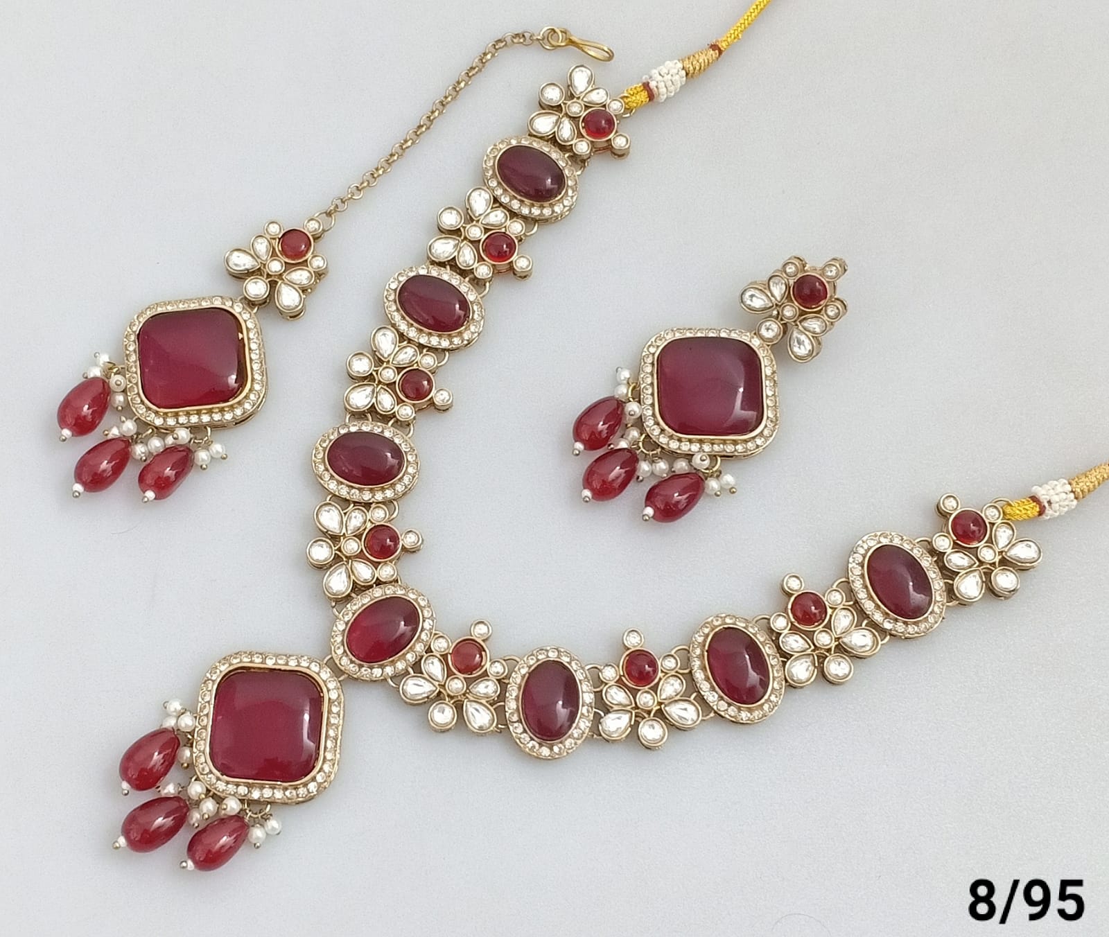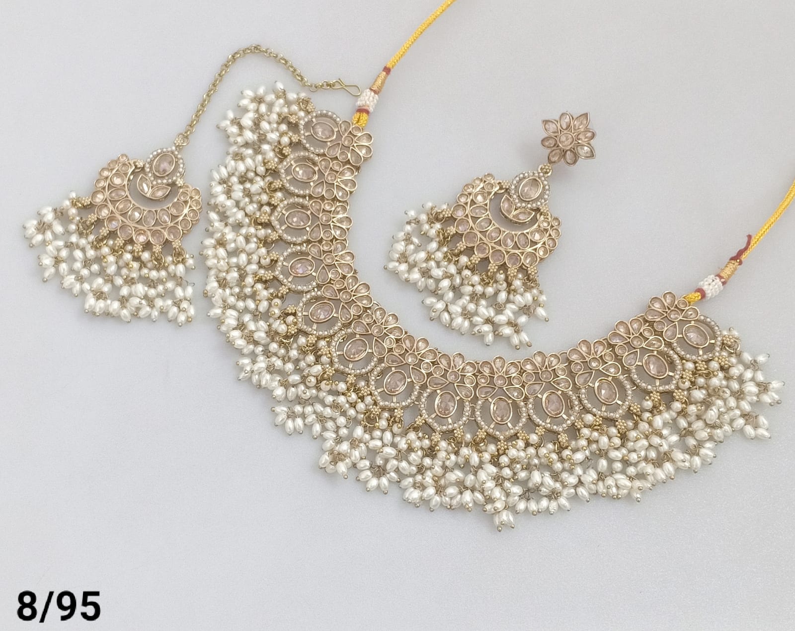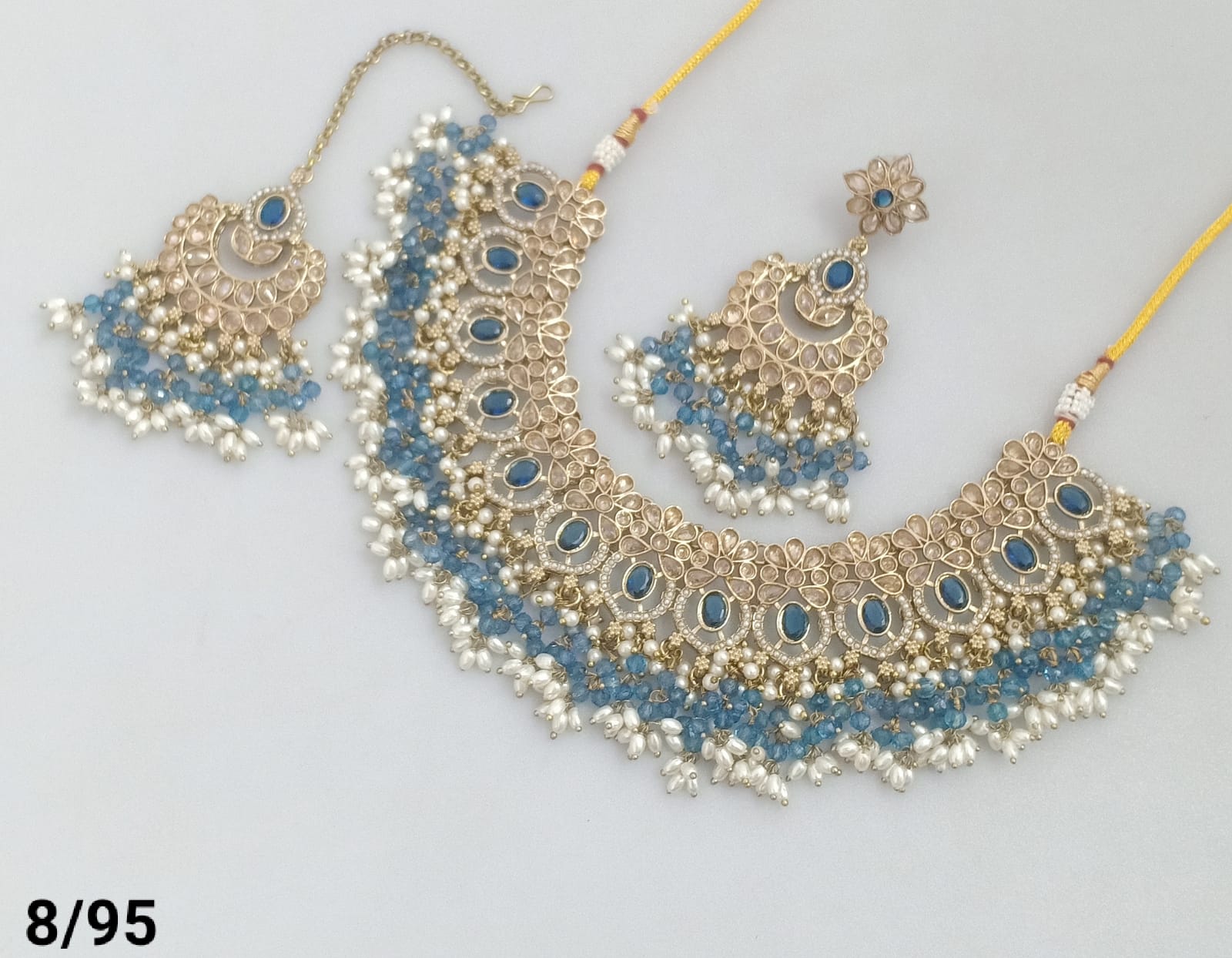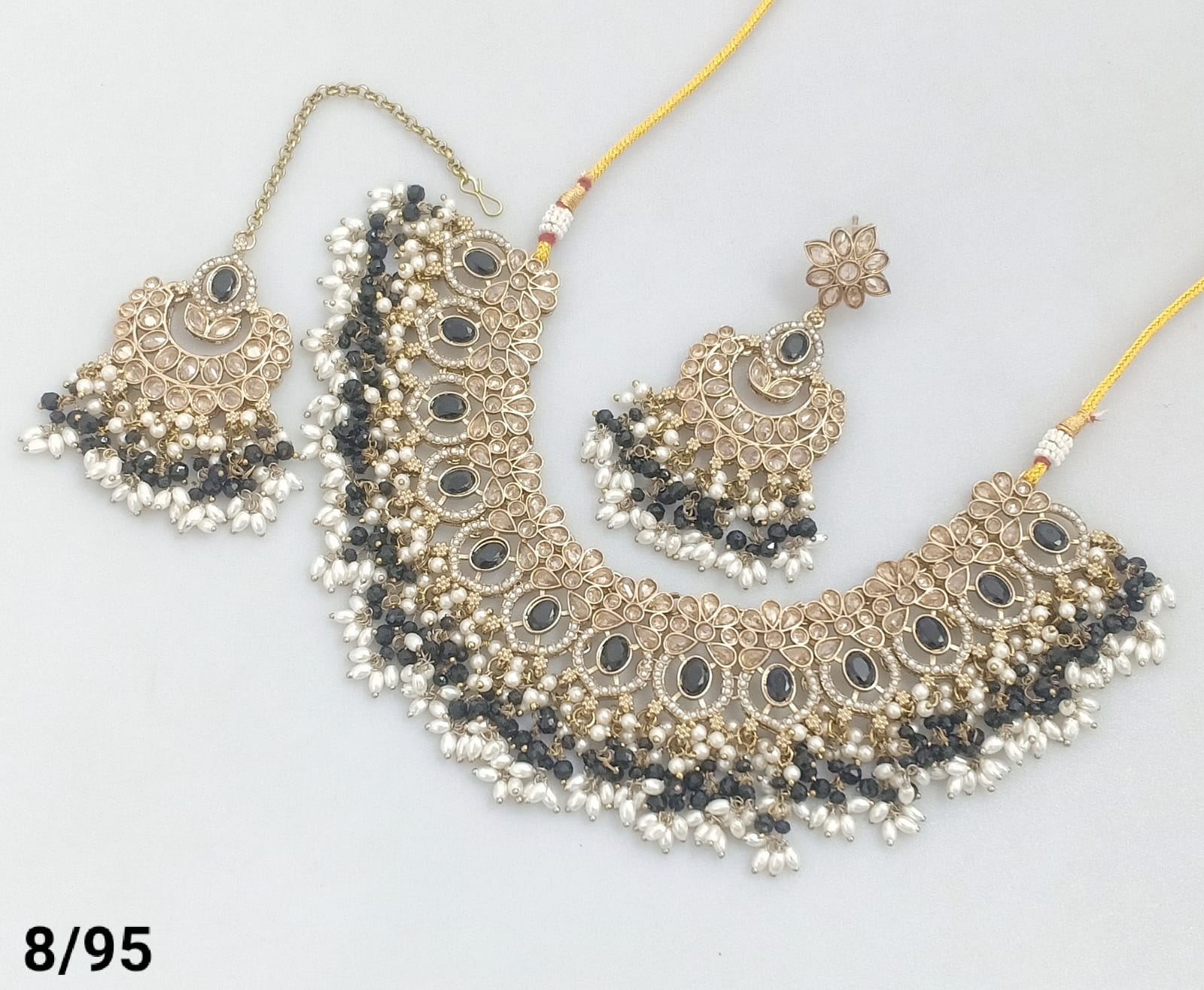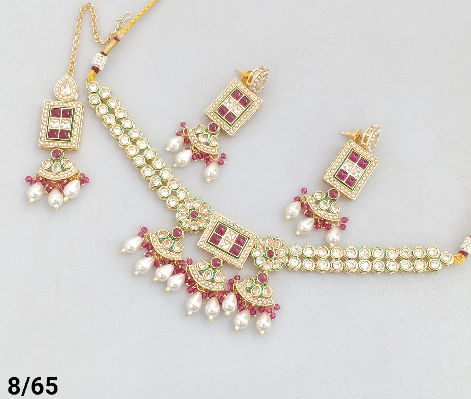 This elegant choker set showcases intricate Kundan work enhanced by a gold plating, perfect for adding a classic touch to your jewelry collection. It Has A...