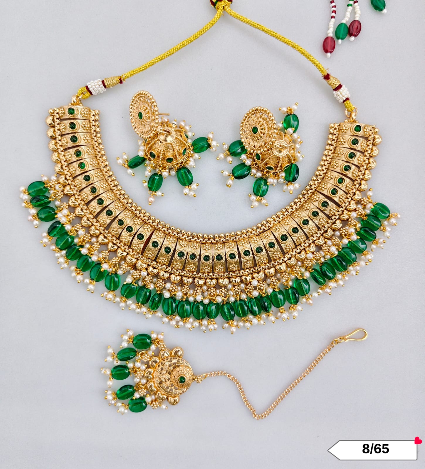 This classic necklace set features a copper base with a rich gold-tone finish, embodying timeless elegance and traditional craftsmanship. It Has A Pack Of :-1 Necklace...