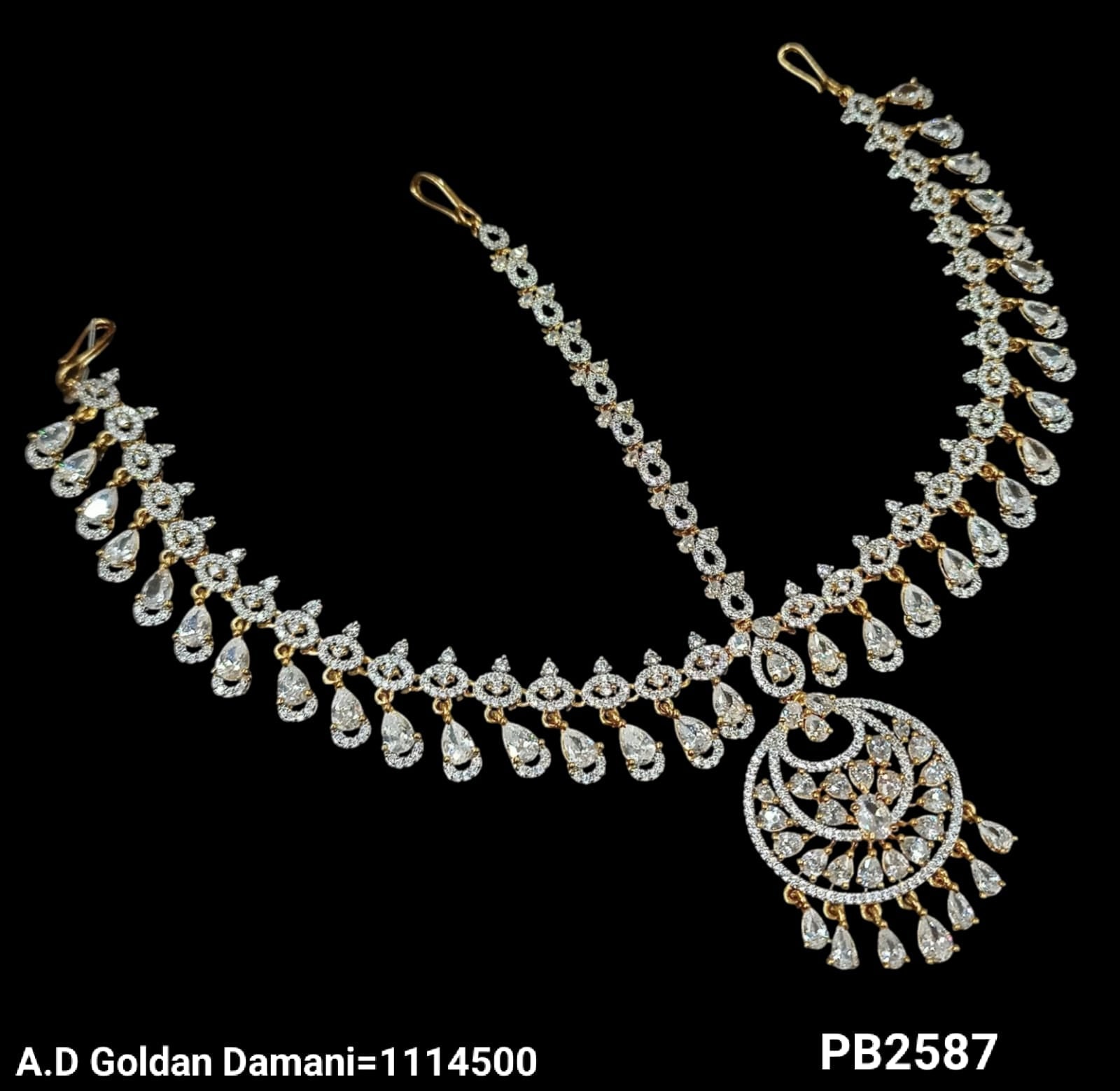 Silver-plated Damini set featuring exquisite American diamond detailing for a sophisticated and polished appearance. It Has A Pack Of :-1 Damini Material :- AlloyStone :-AdPlating :- Silver...
