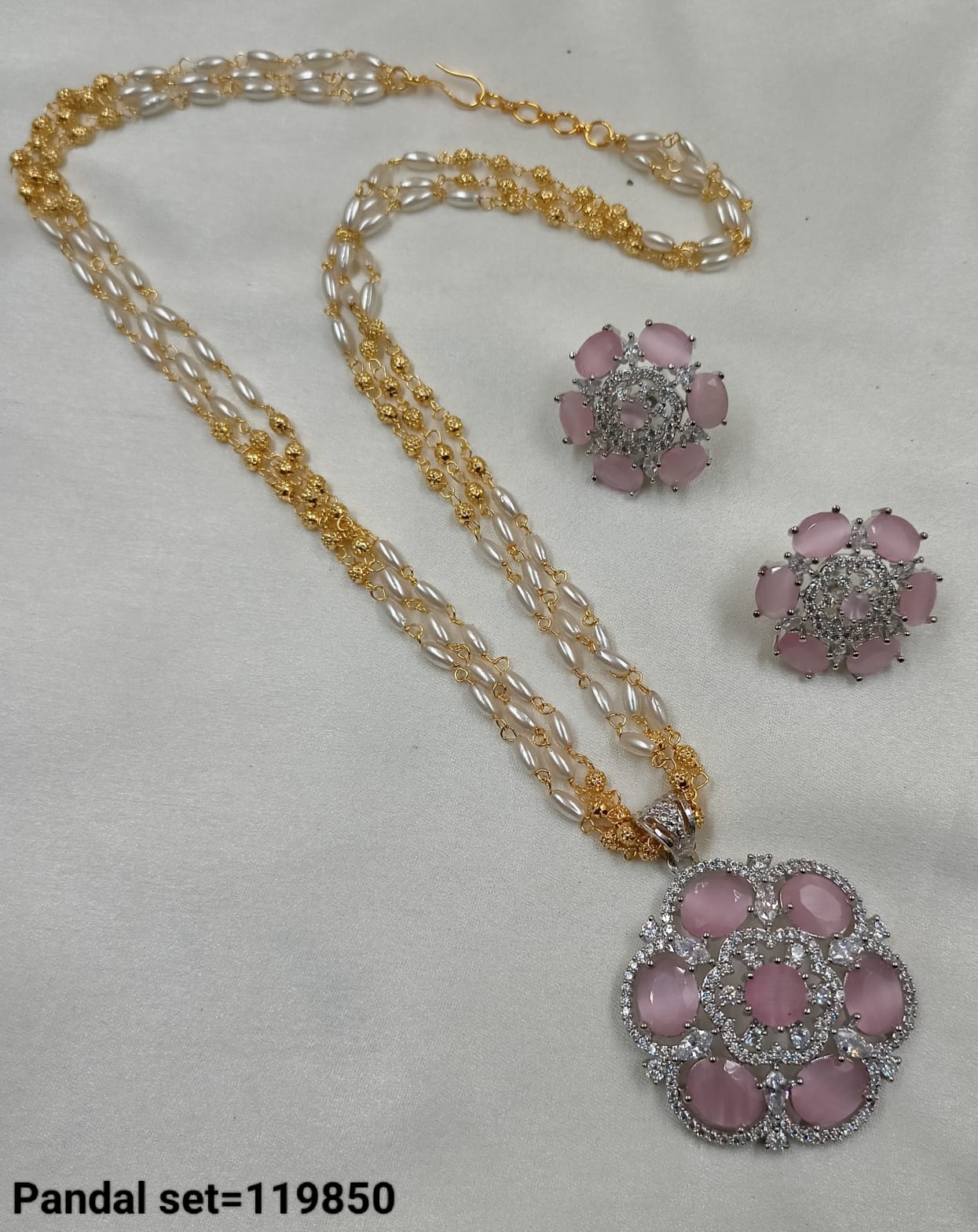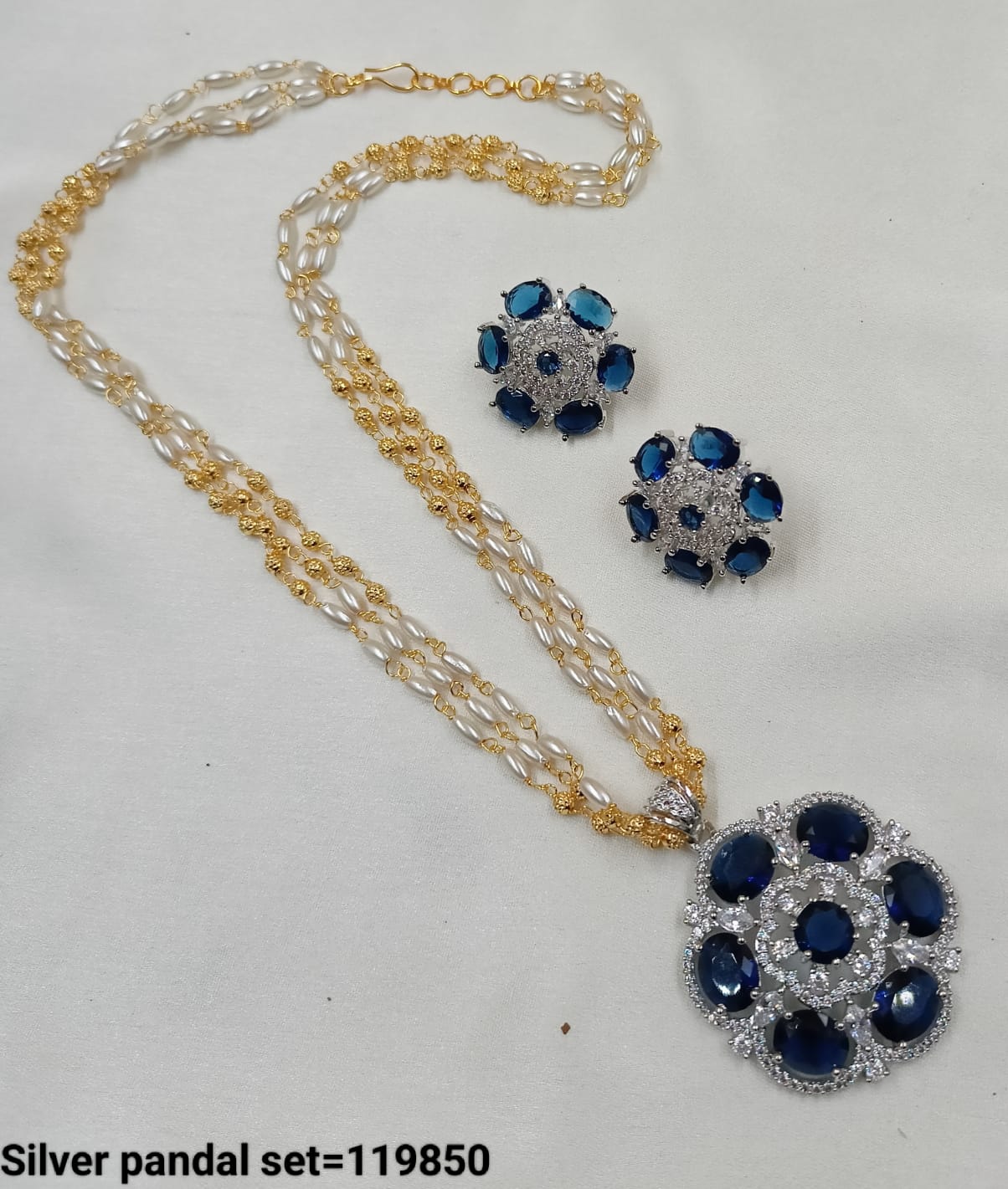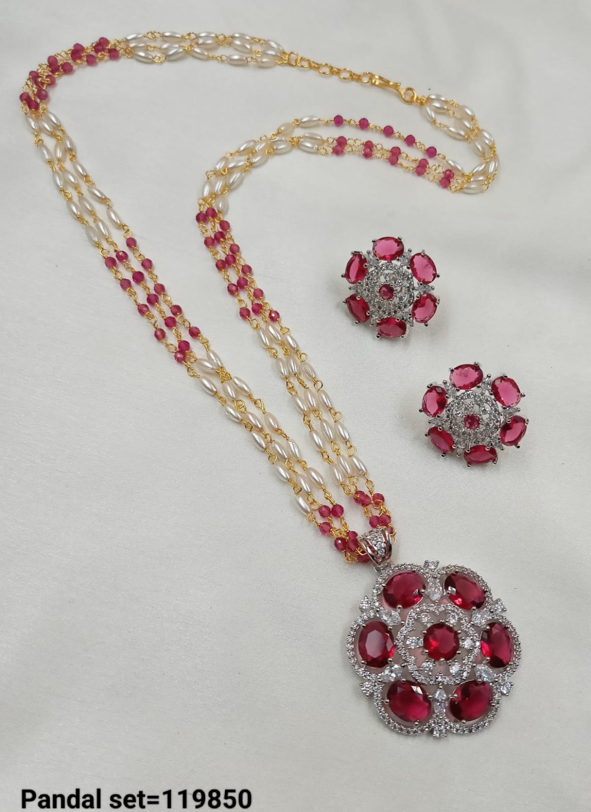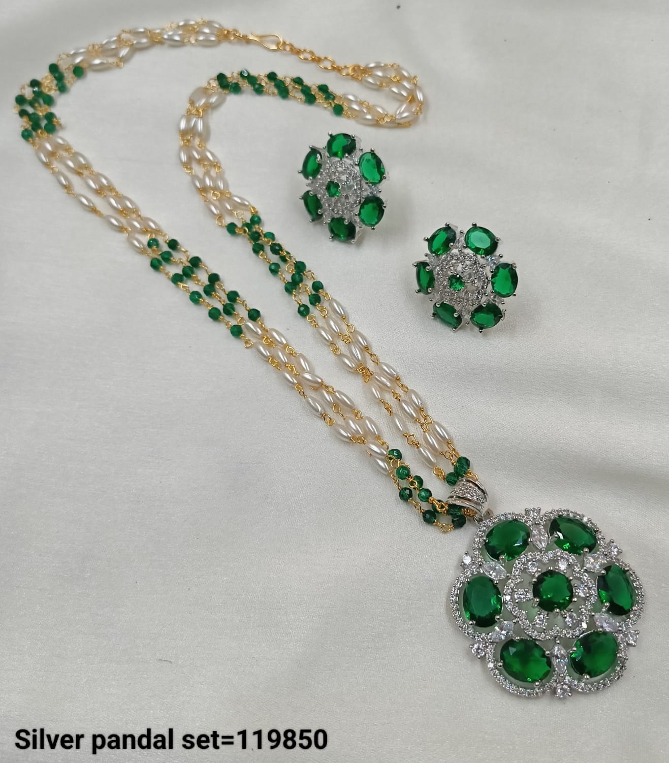 This pendant set features exquisite American diamonds elegantly set on a silver-plated base, combining timeless beauty with expert craftsmanship. It Has A Pack Of :-1 Pendant...