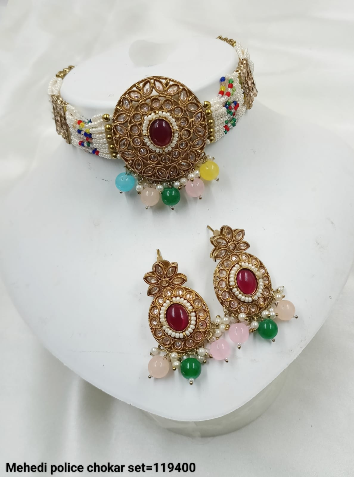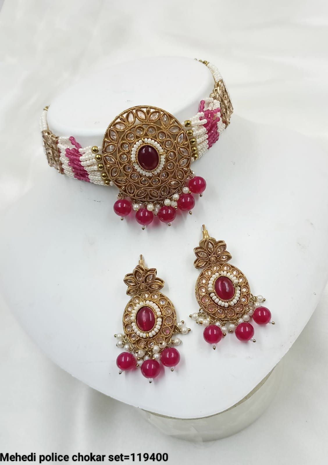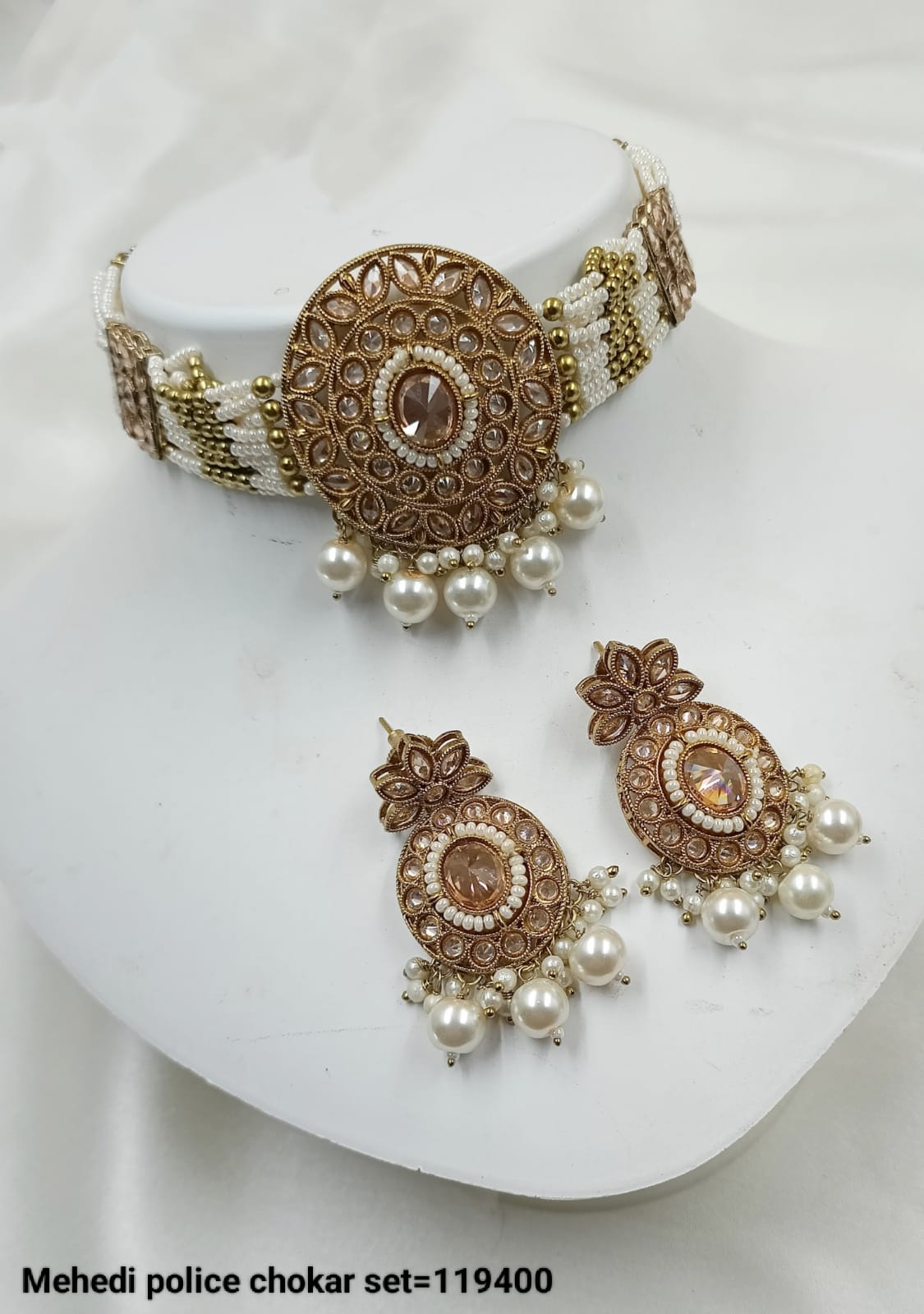 This exquisite choker necklace set features a traditional design with an antique gold plating, showcasing timeless elegance and craftsmanship. It Has A Pack Of :-1 Necklace...