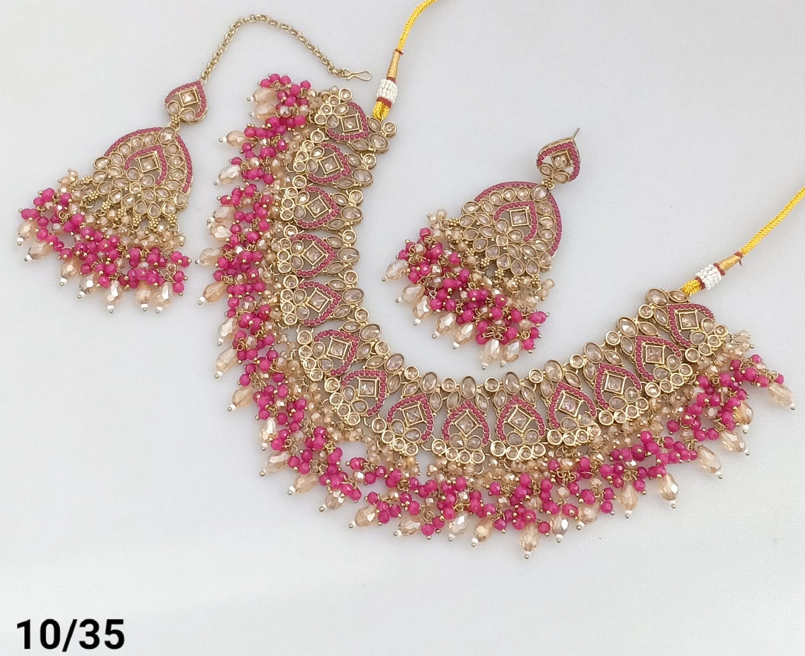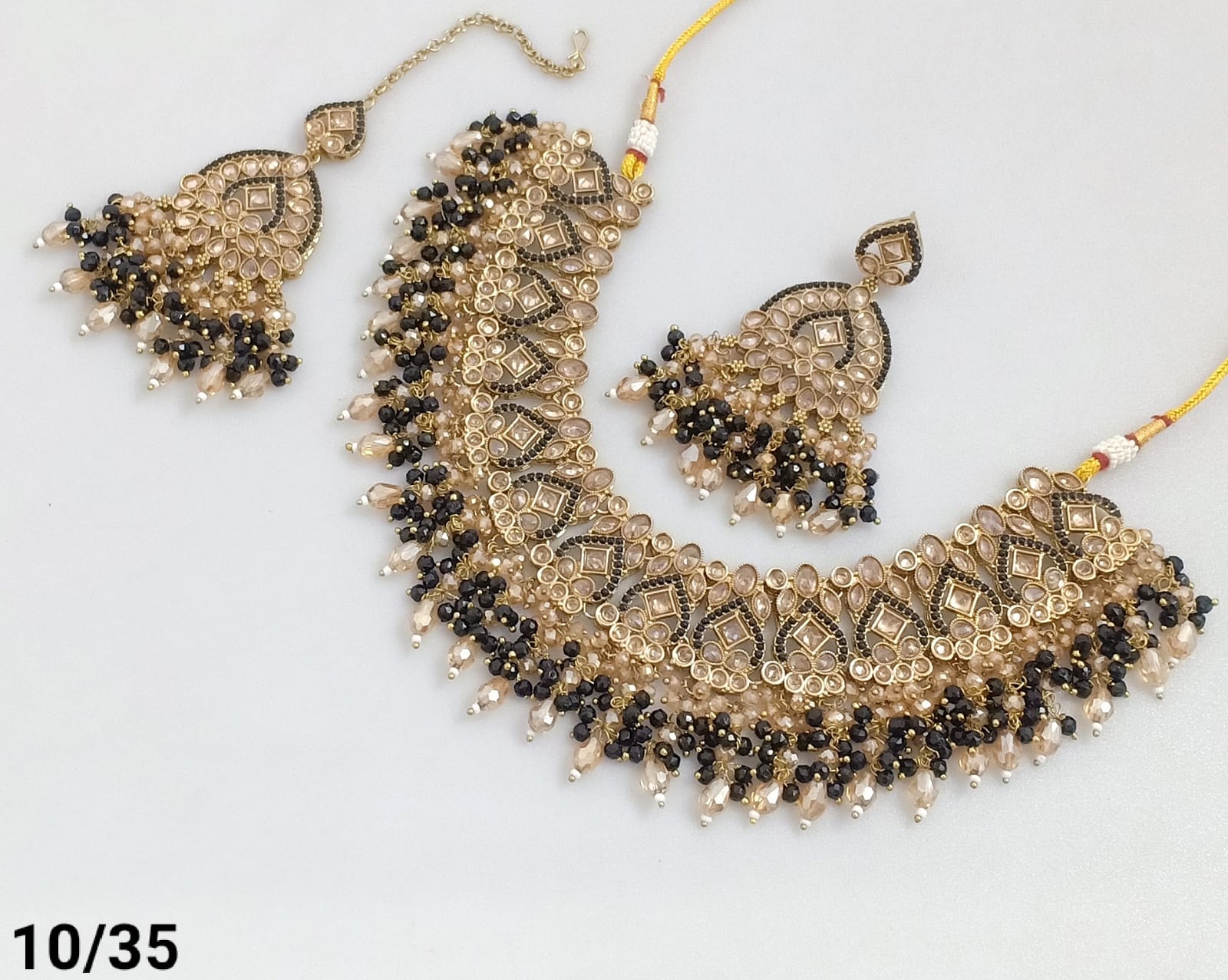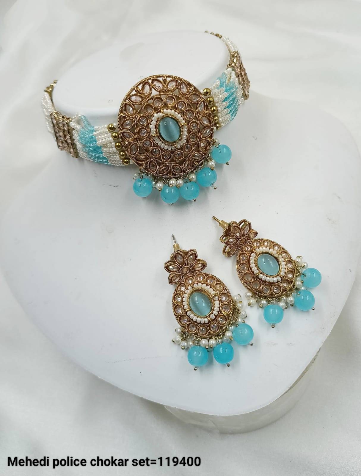 This exquisite choker necklace set features a traditional design with an antique gold plating, showcasing timeless elegance and craftsmanship. It Has A Pack Of :-1 Necklace...