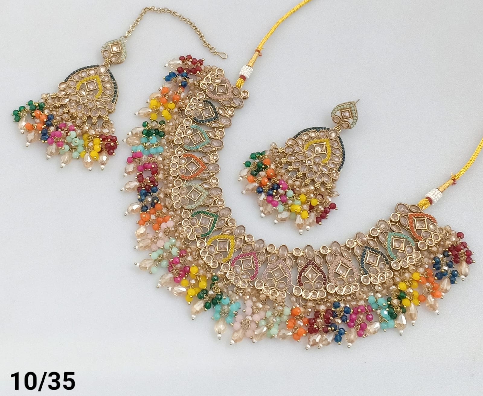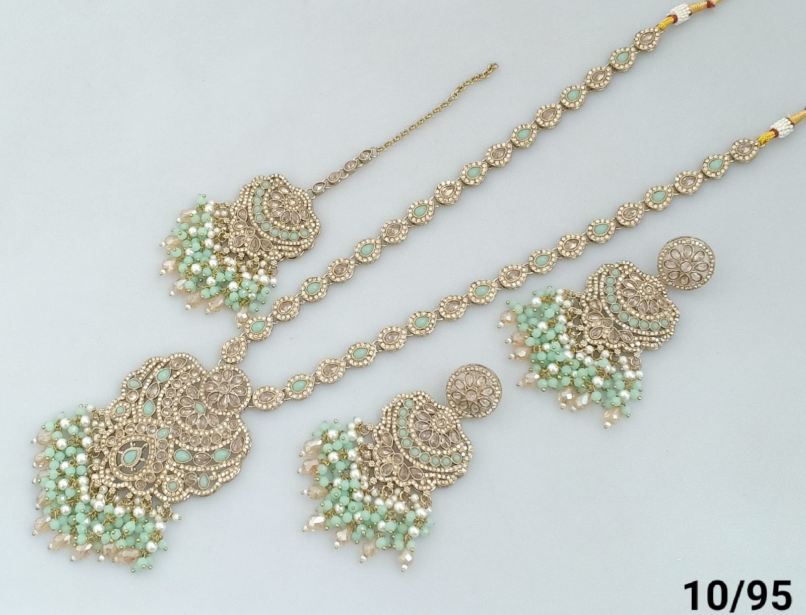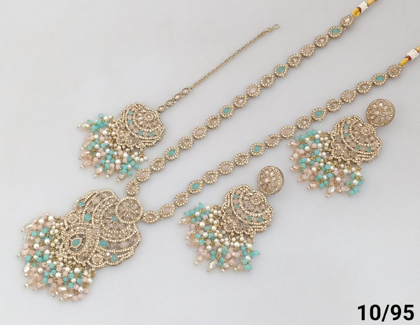 This bridal set features a high-quality gold plating that delivers the elegance of gold with enhanced durability. Designed to elevate bridal wear, it combines intricate craftsmanship...