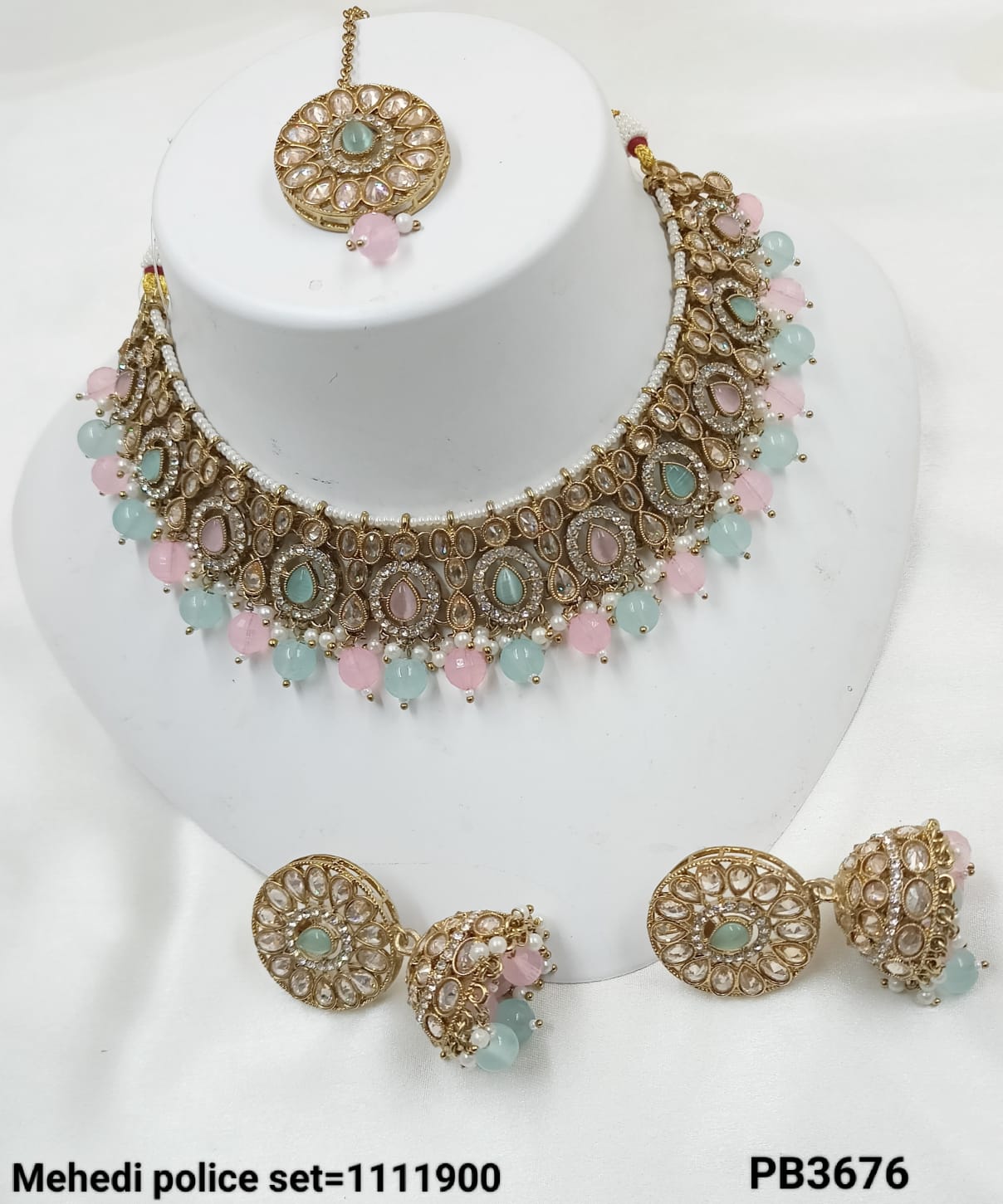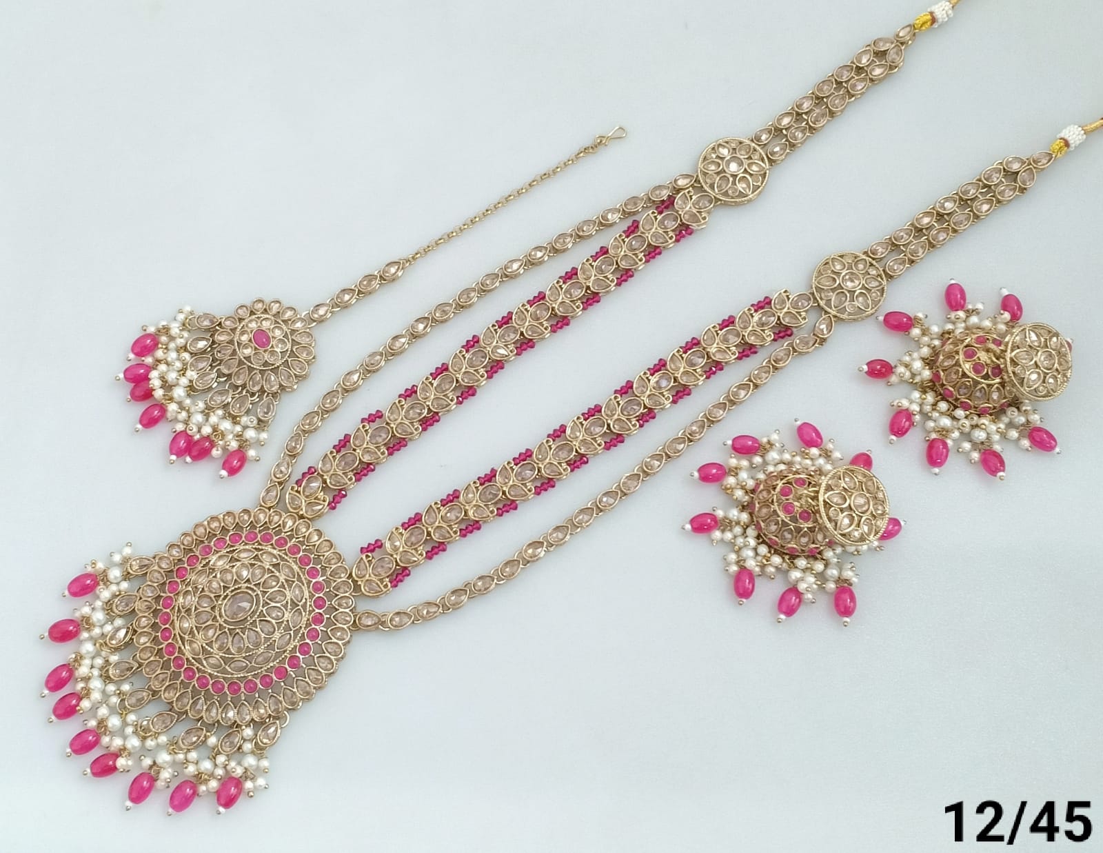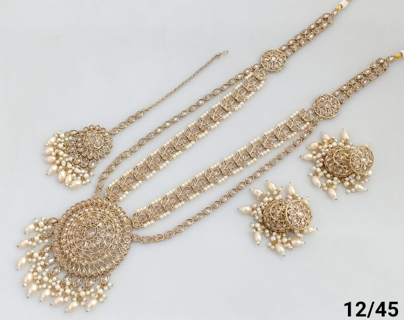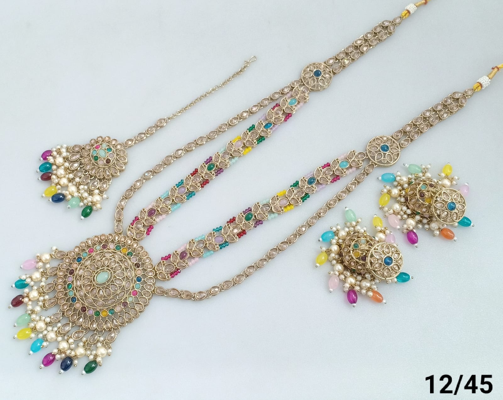 A finely crafted bridal set with a luxurious gold-plated finish, perfect for adding a touch of elegance and tradition to your special day. It Has A...