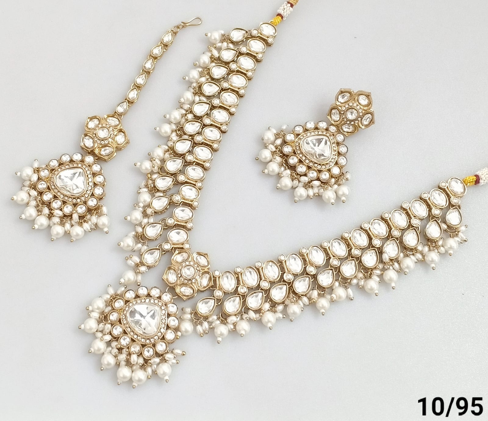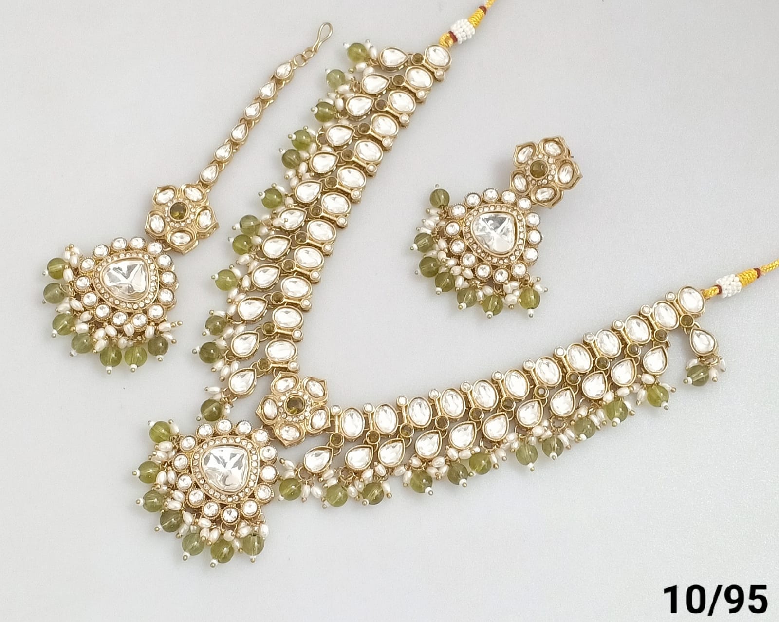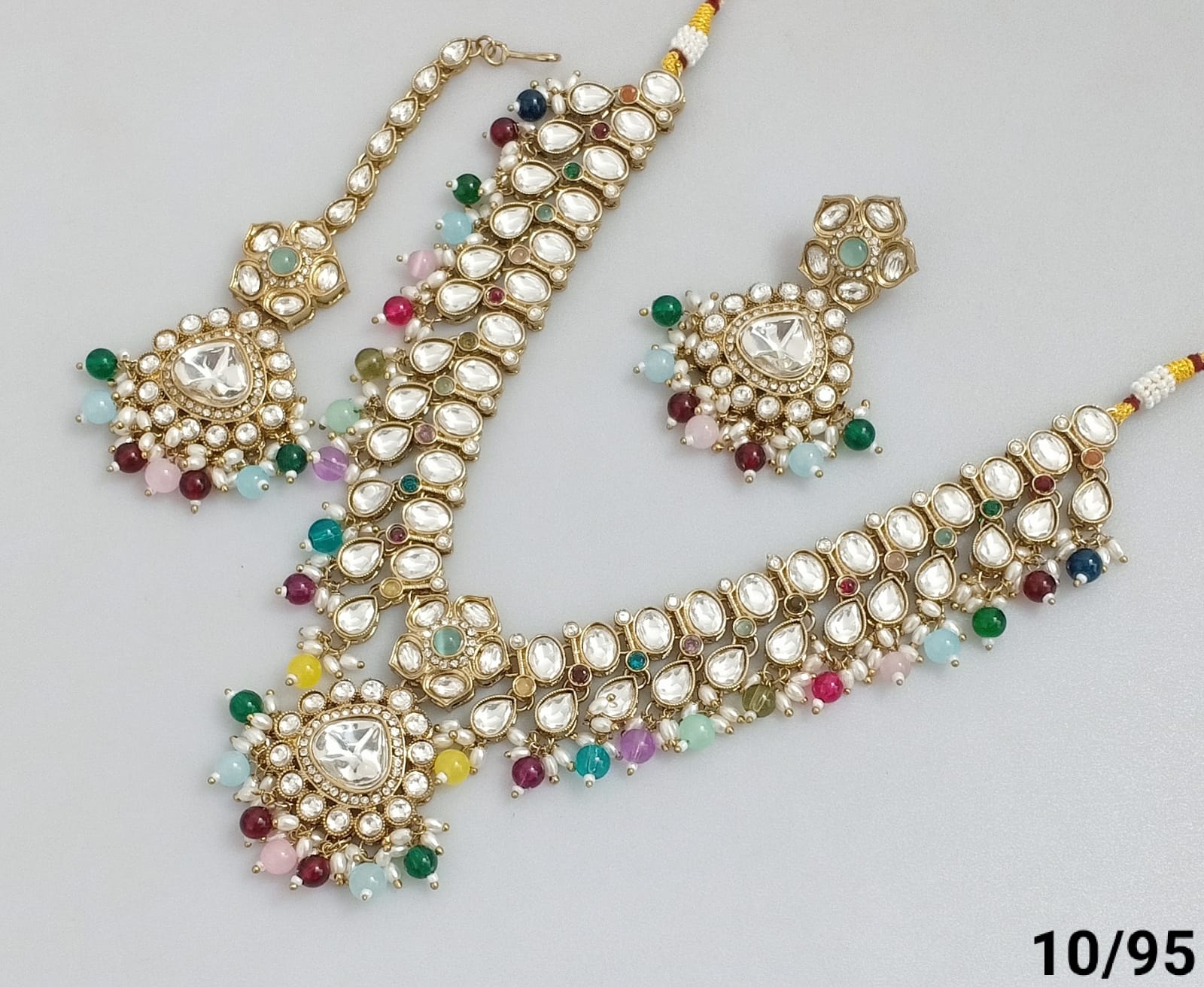 This exquisite necklace set features an antique gold plating combined with traditional Kundan craftsmanship, offering a timeless and elegant accessory for special occasions. It Has A...