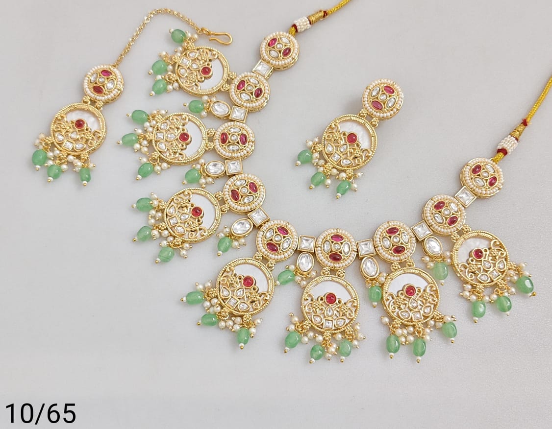 This exquisite necklace set features traditional Kundan craftsmanship with a luxurious gold-plated finish, embodying timeless elegance and intricate artistry. It Has A Pack Of :-1 Necklace...