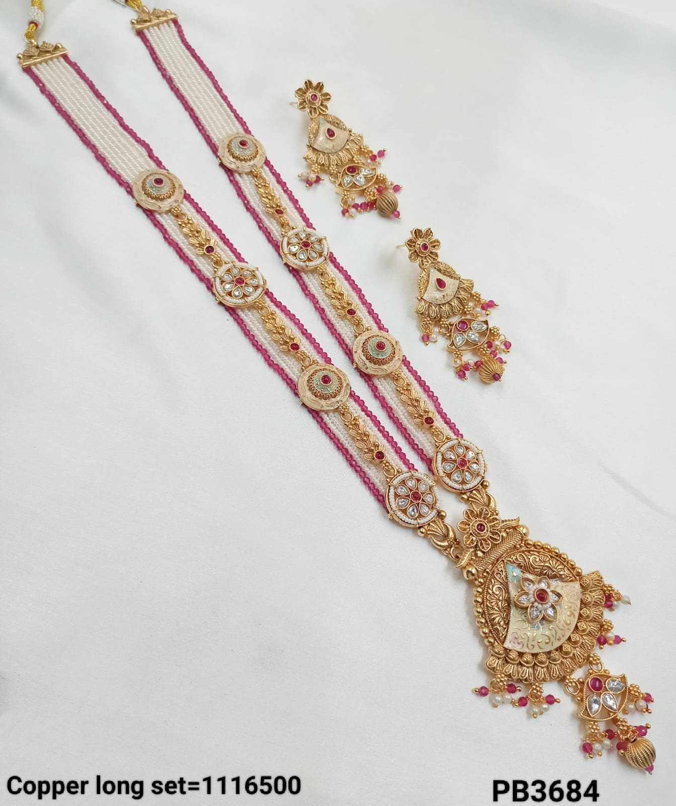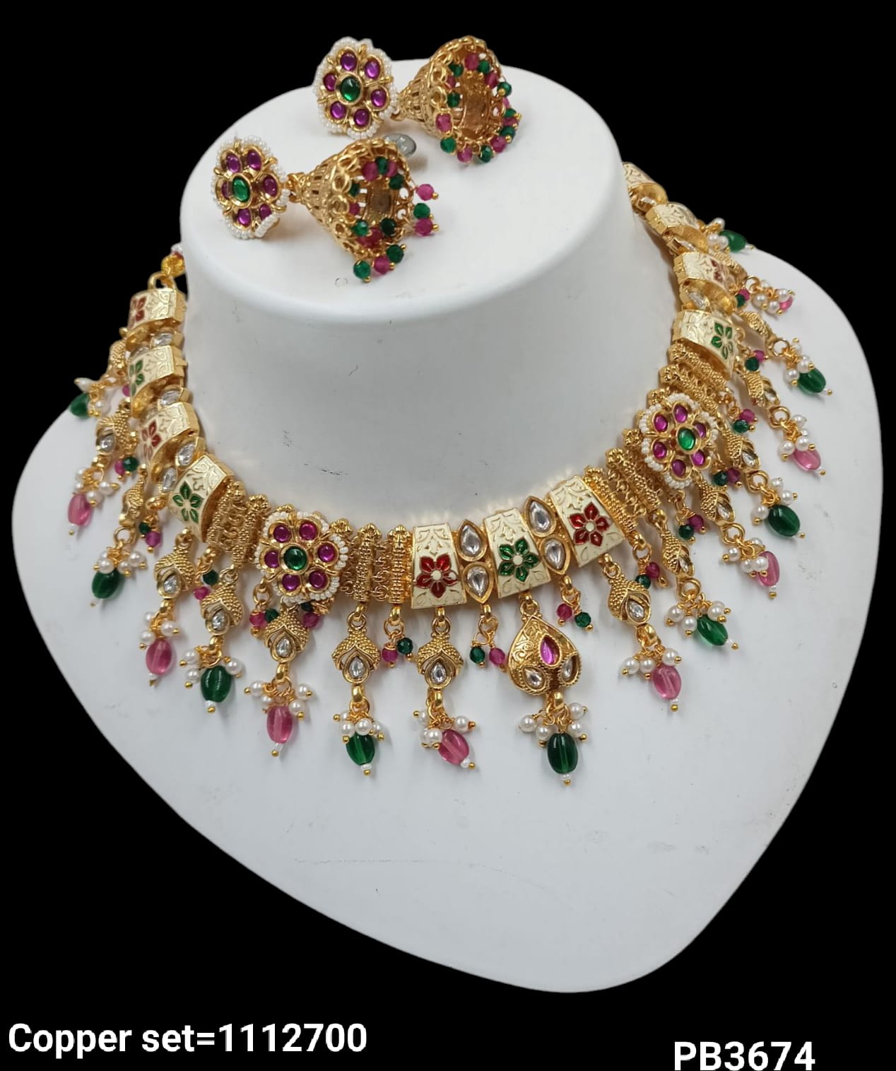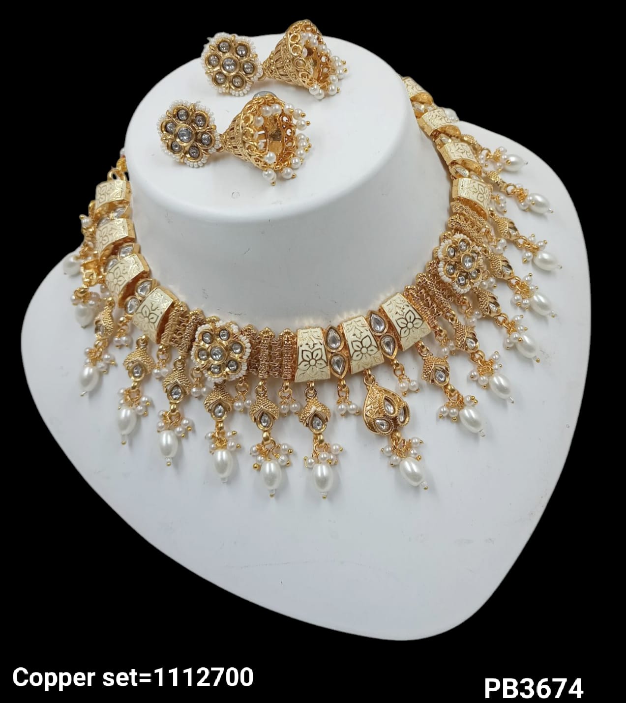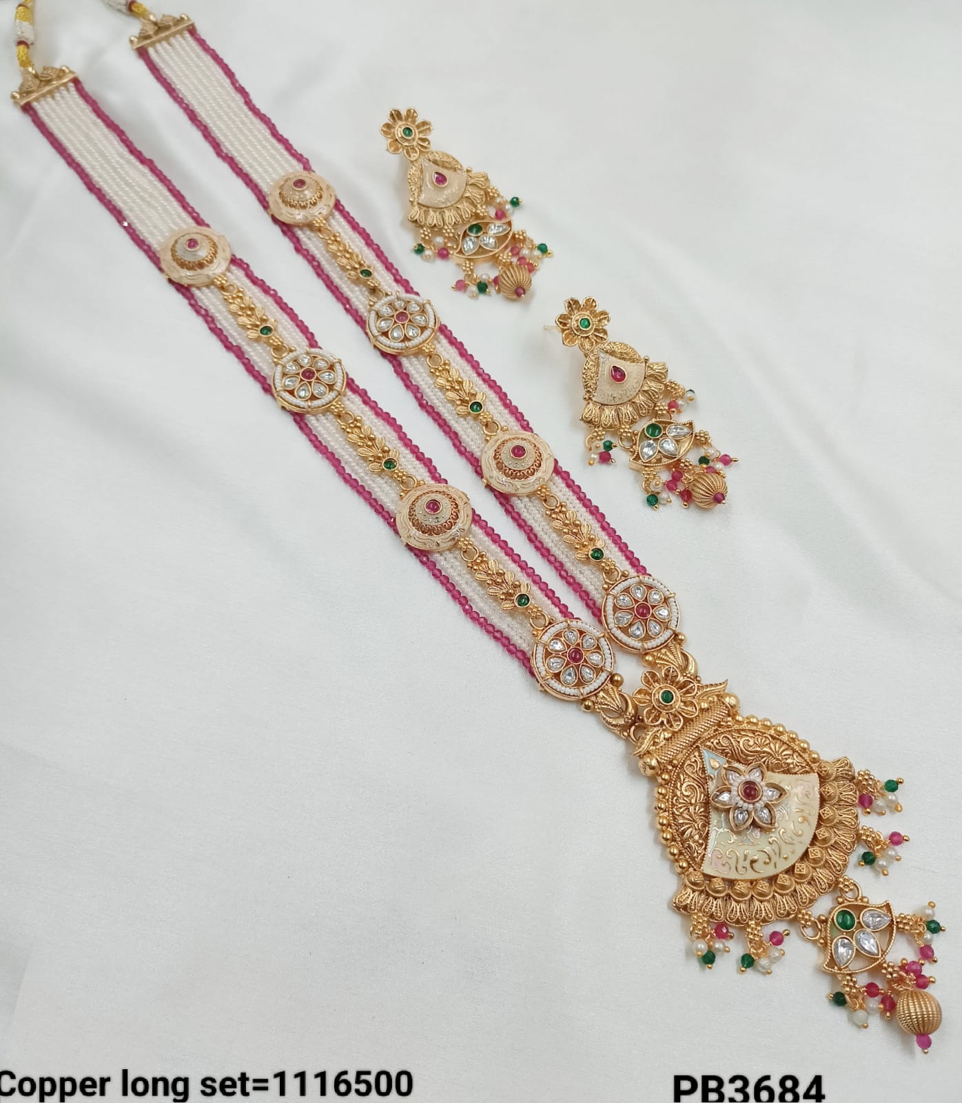 This exquisite necklace set features a traditional design crafted from copper with a rich gold polish, embodying timeless elegance and cultural heritage. It Has A Pack...