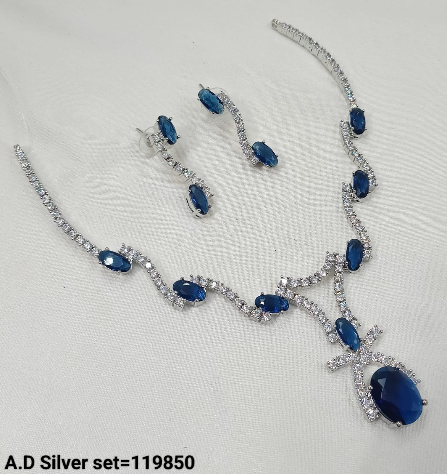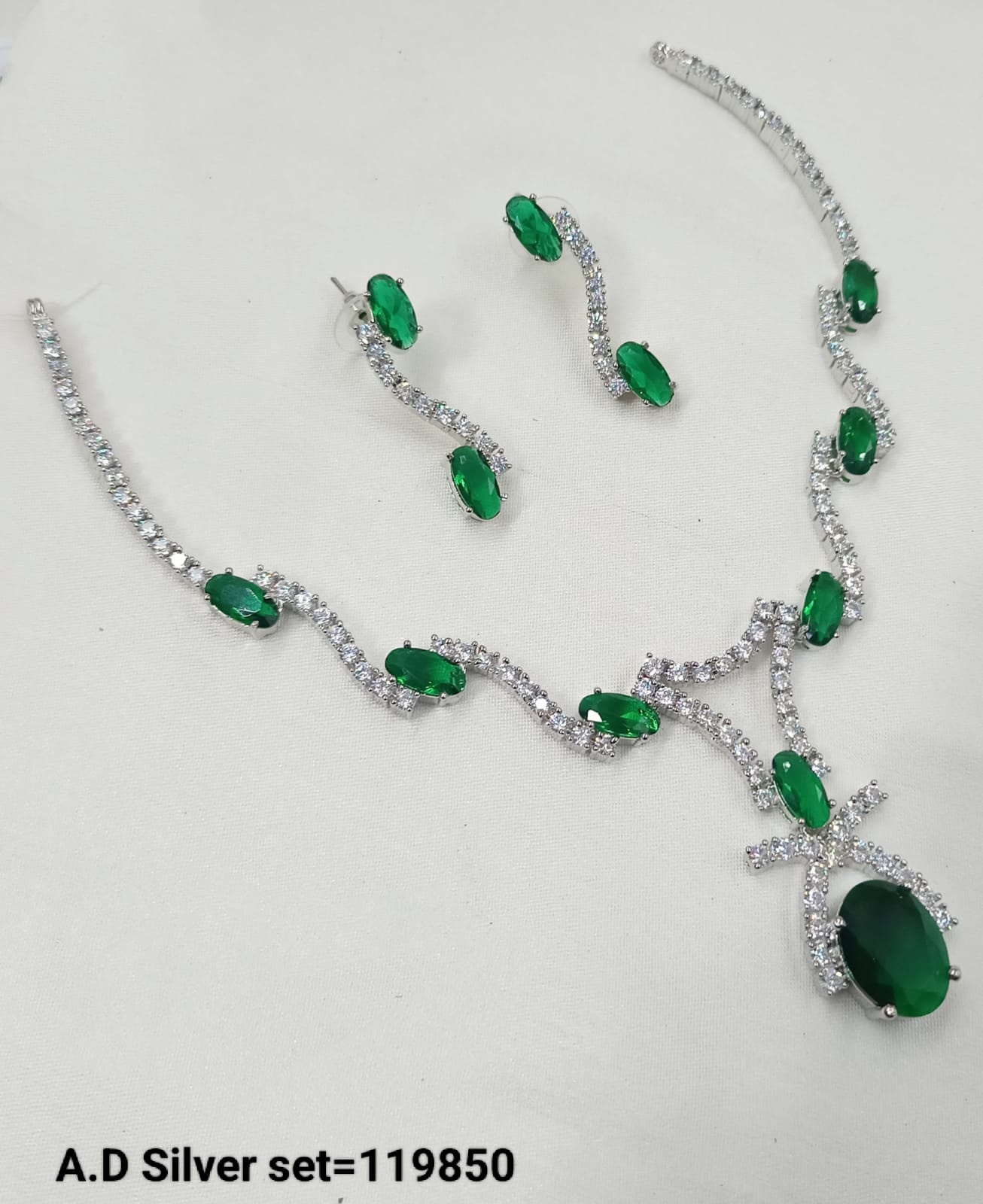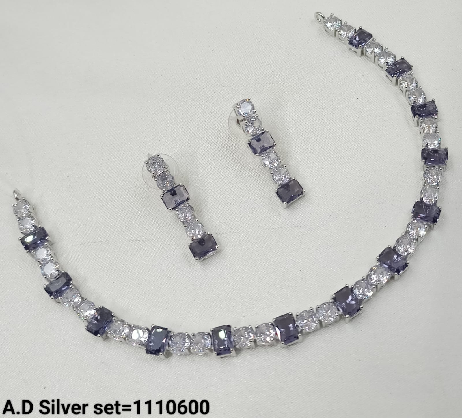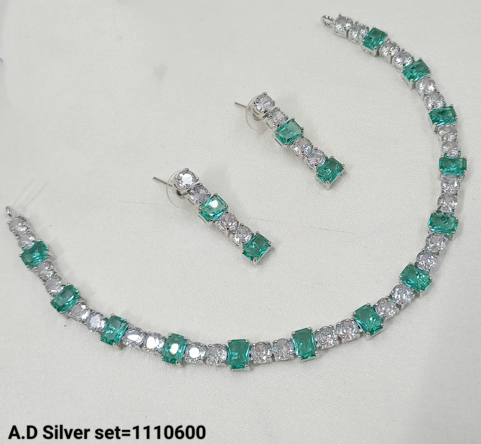 This jewellery set features a silver-plated finish adorned with sparkling American diamonds, combining elegance with expert craftsmanship for a refined look. It Has A Pack Of...